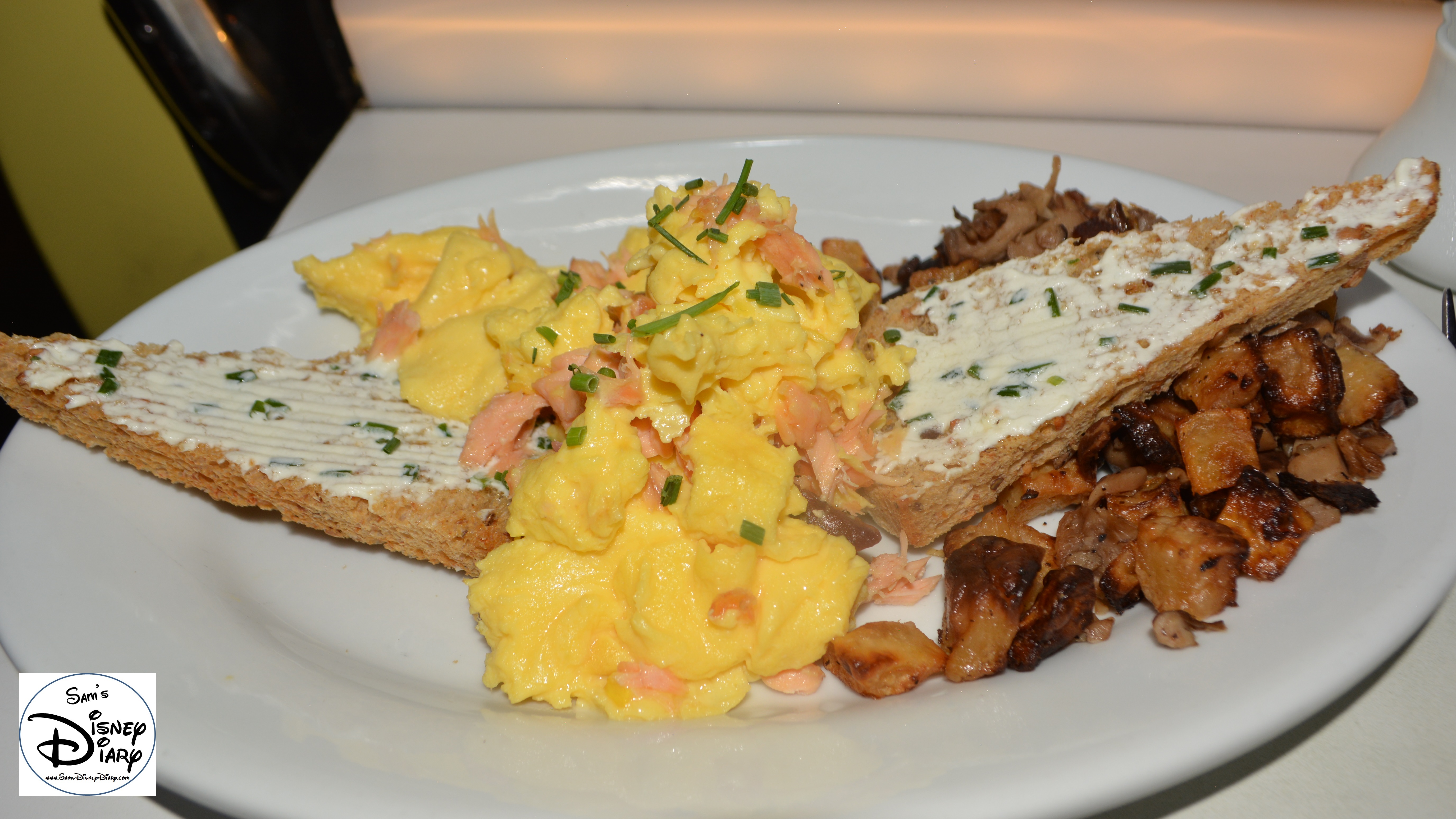 Star Wars Weekend Galactic Breakfast. The Dune Sea (House Smoked Salmon Scrambled Eggs, Wild Mushroom Potato Hash with Multi Grain Toast Slathered with Goat Cheese Butter