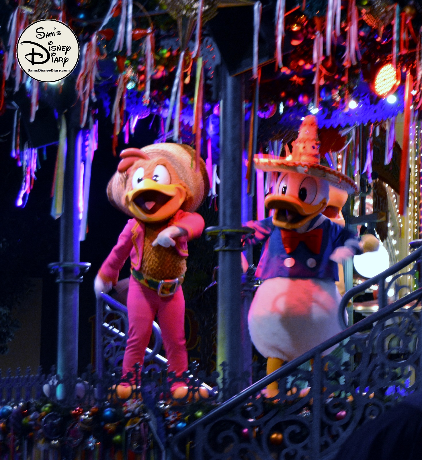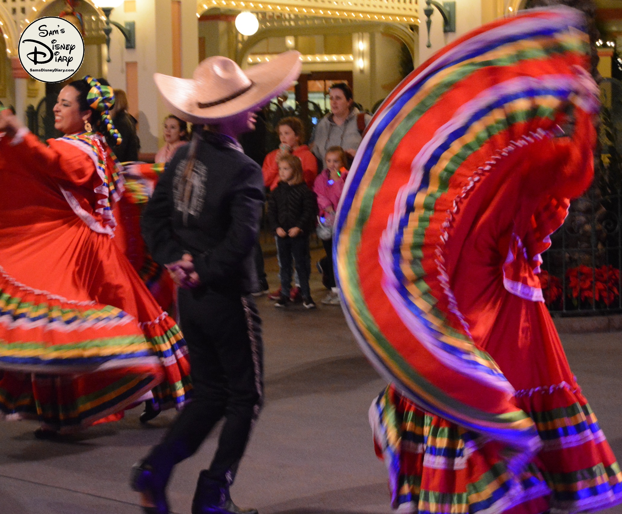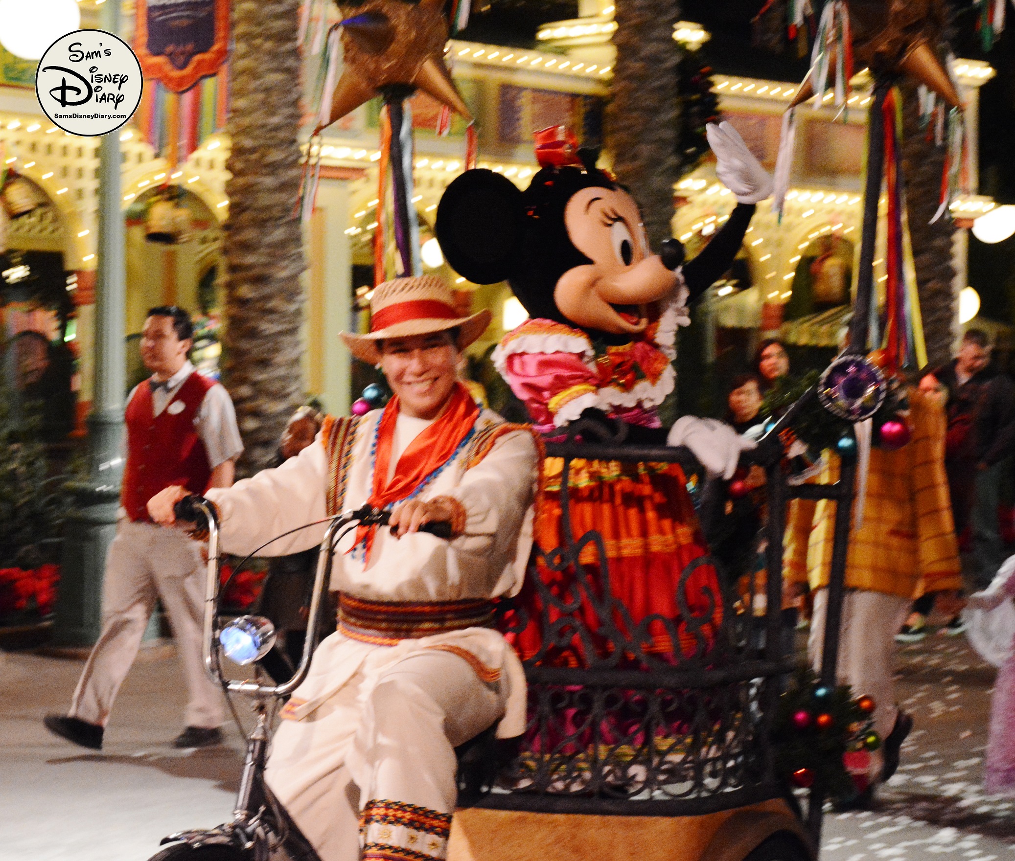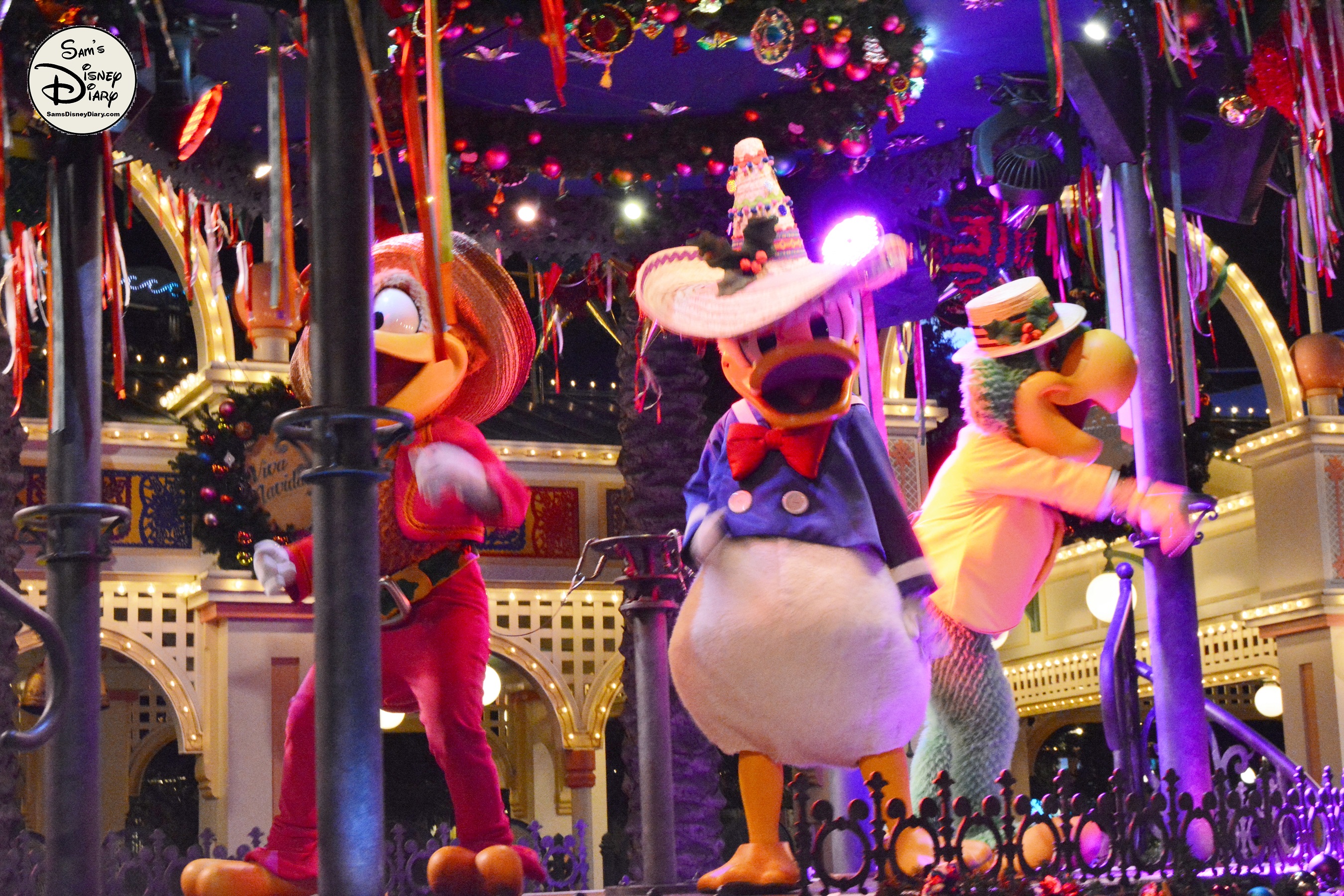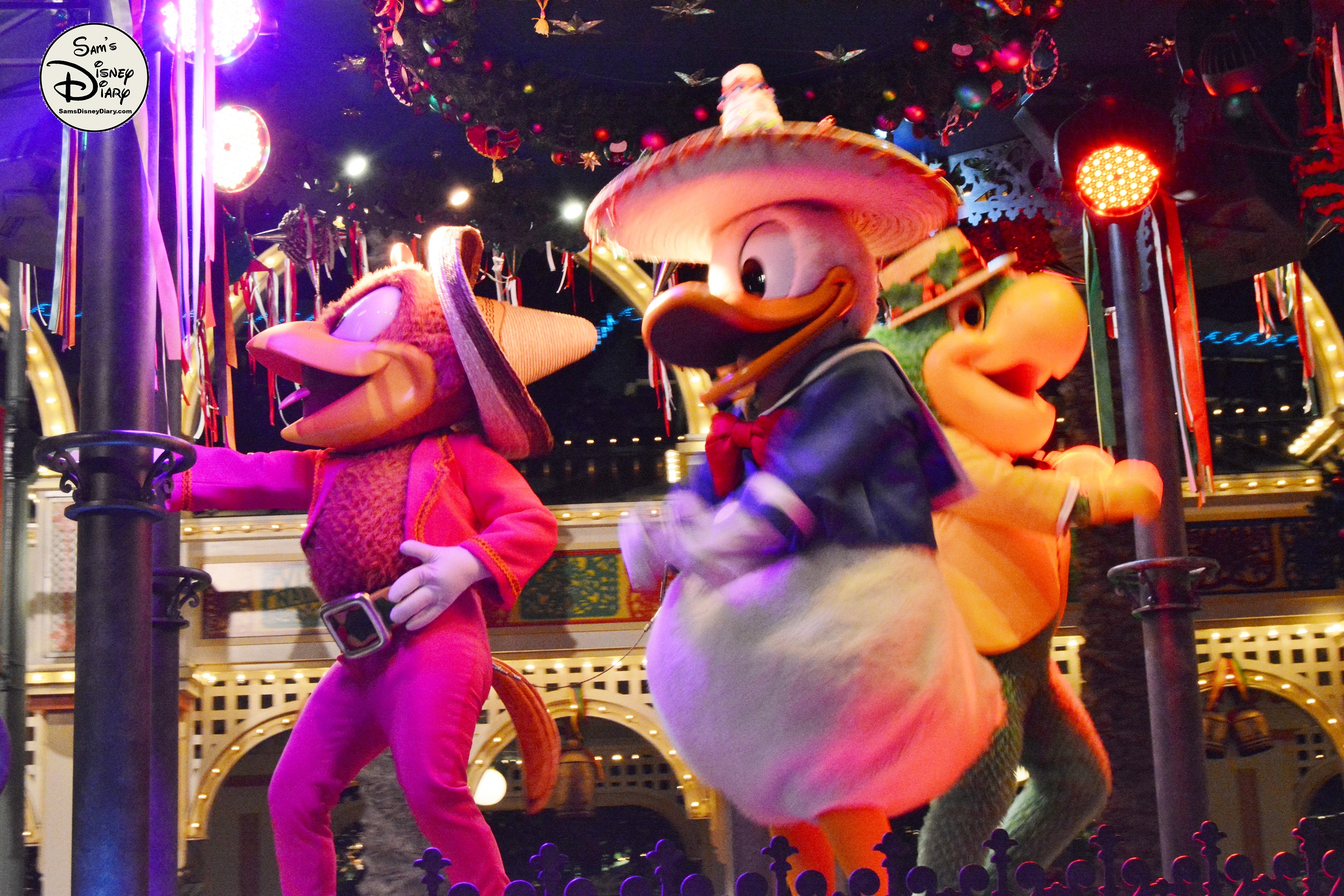 The show is led by The Three Caballeros—Donald Duck, Panchito, and José Carioca—joined by Mickey and Minnie Mouse in their holiday best. As the celebration unfolds, samba dancers, mariachi musicians, and giant 12-foot masquerade puppets fill the streets with joy. Guests of all ages are swept up in the rhythms of Mexican and Brazilian holiday traditions.