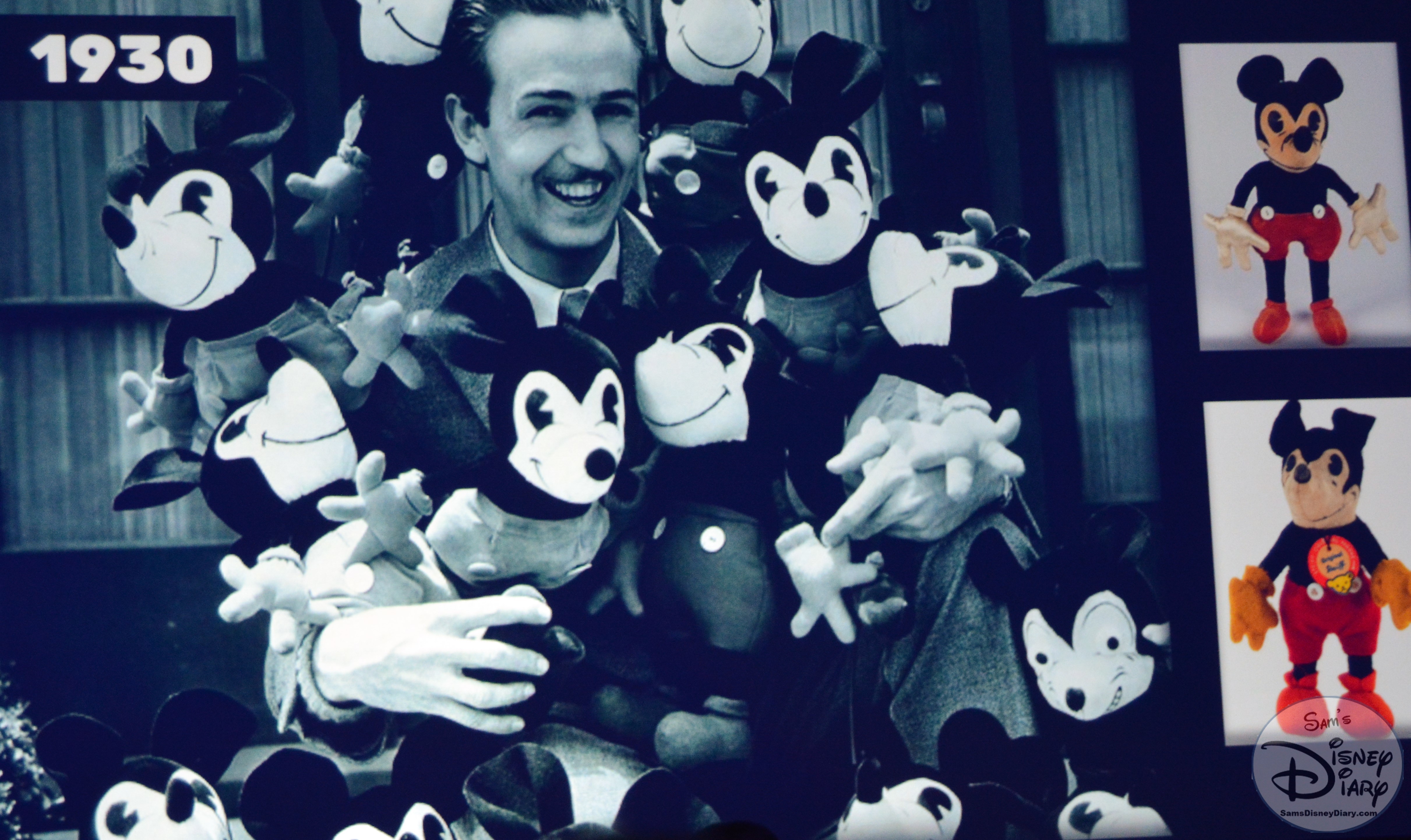 The Product Legacy Breakout at the D23 Expo 2017 highlights the history of Disney Merchandise. Walt with the the original mickey plush cira 1930