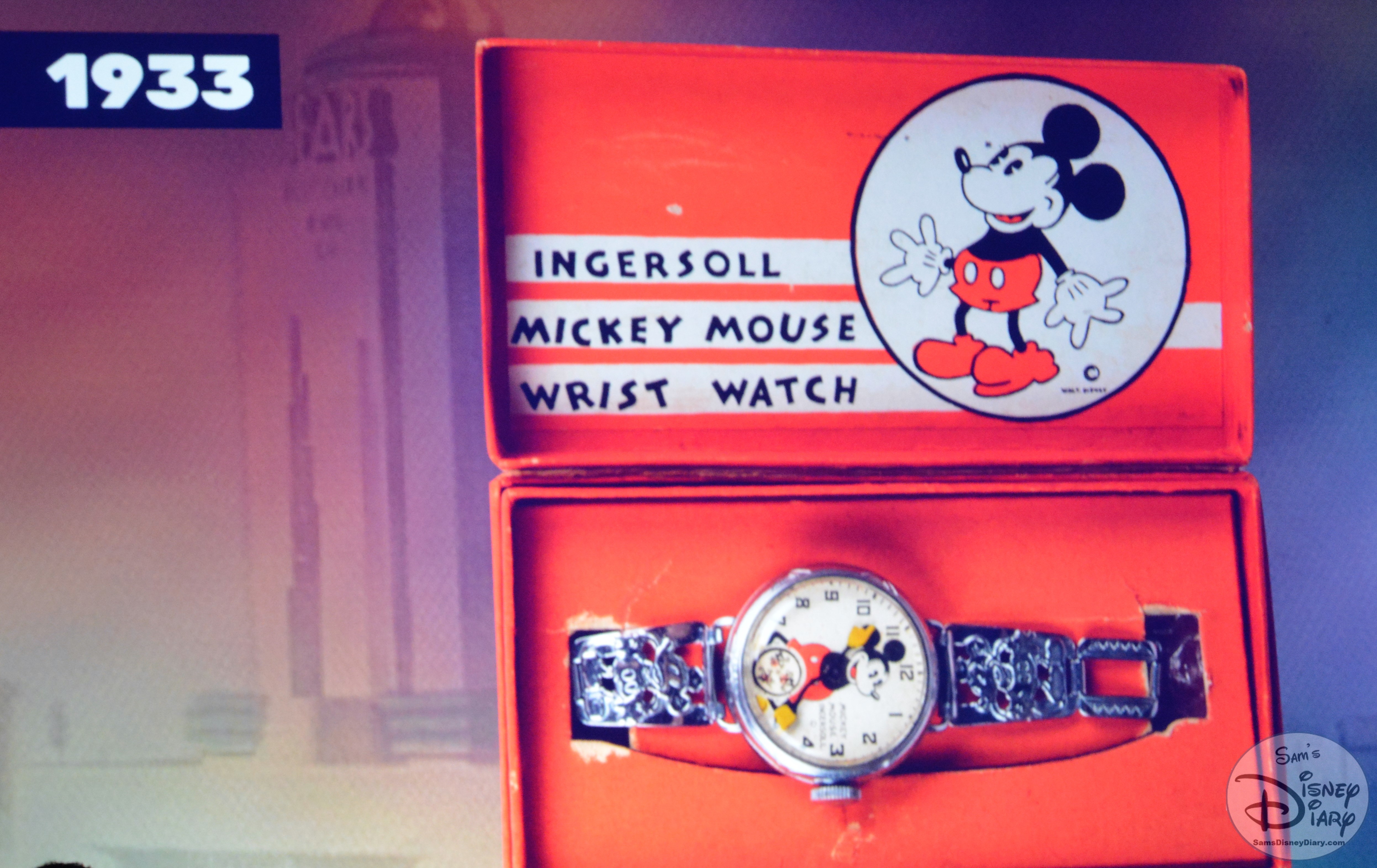The Product Legacy Breakout at the D23 Expo 2017 highlights the history of Disney Merchandise. Here is one of the first Mickey Watches from 1933