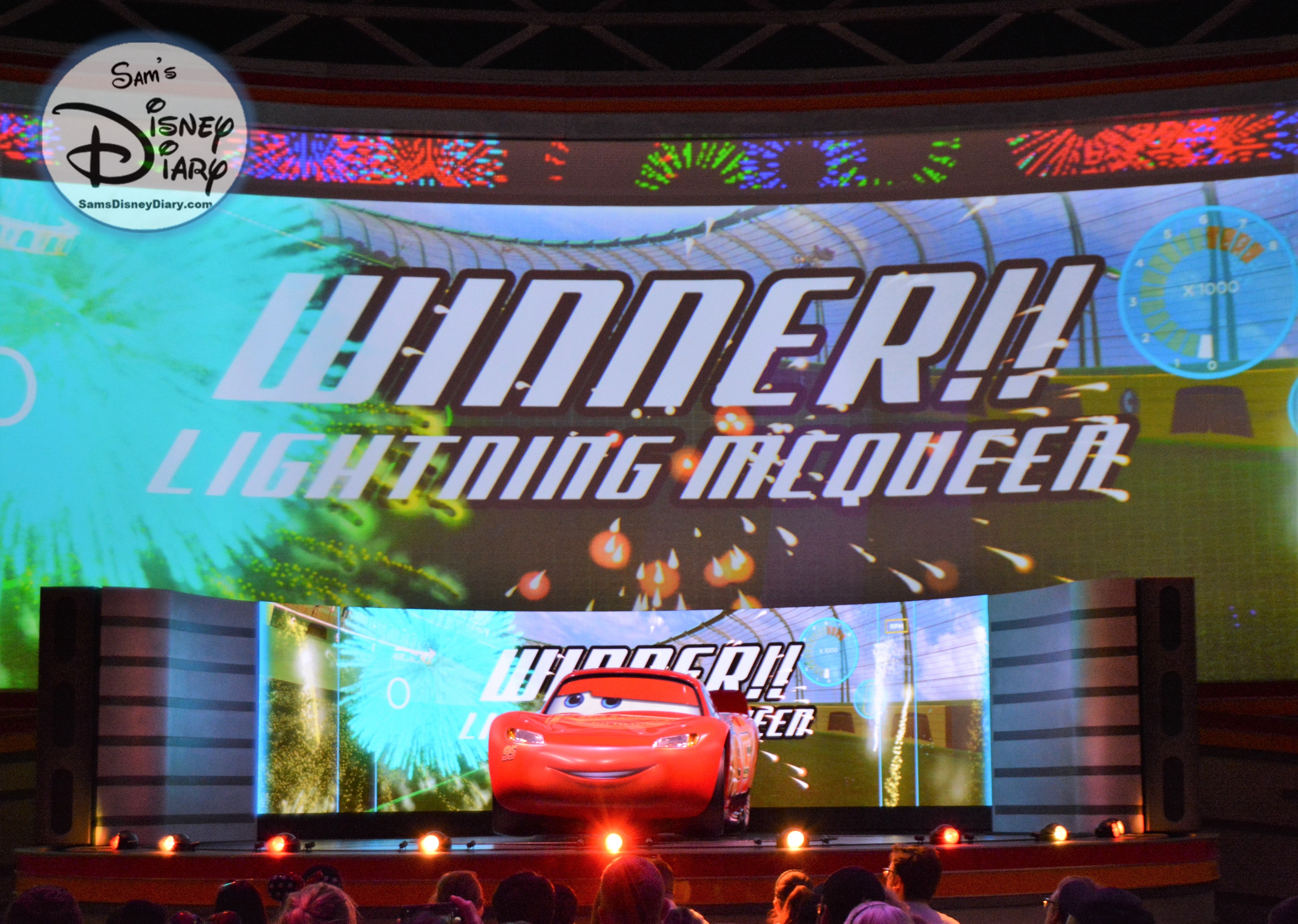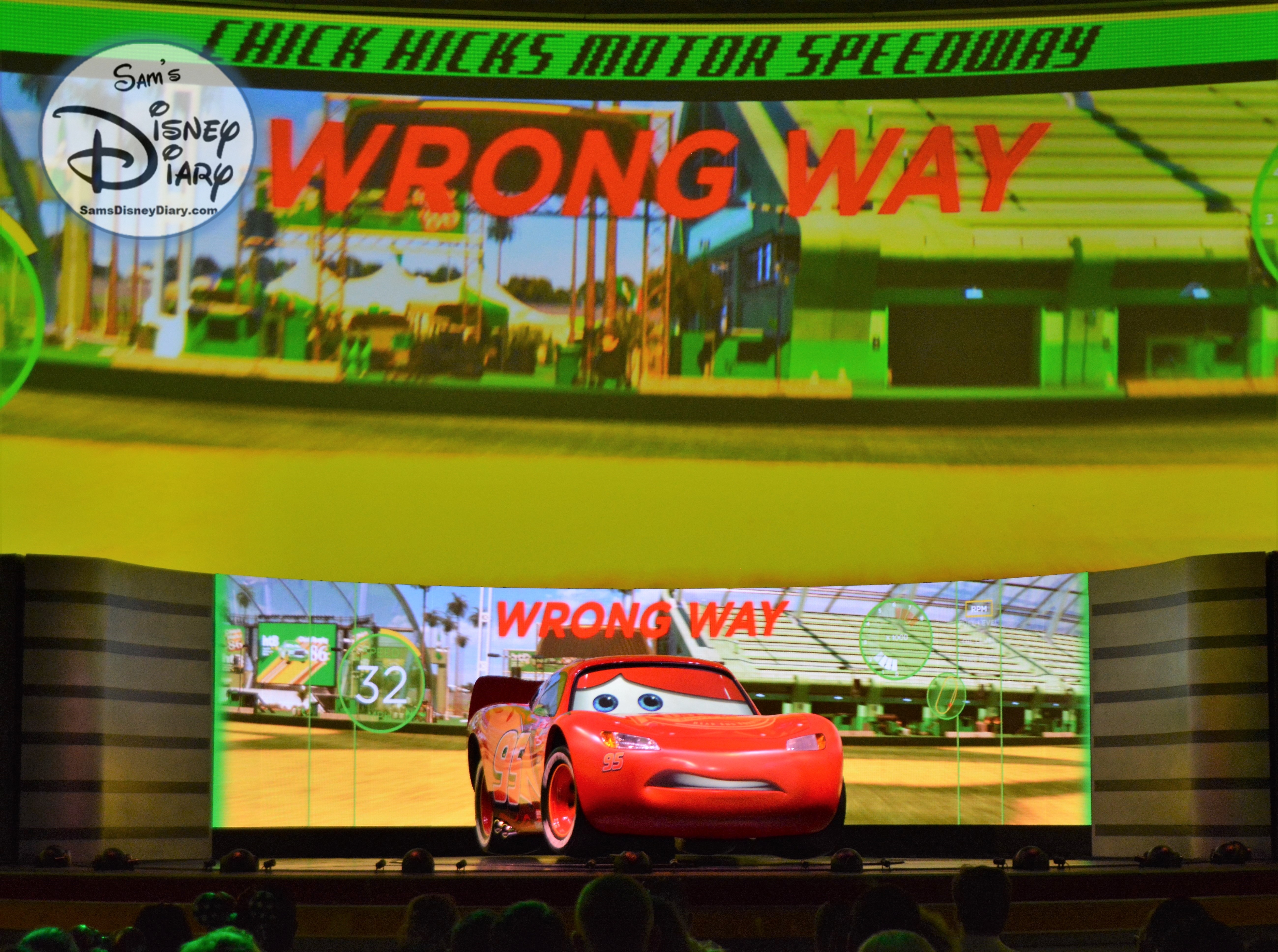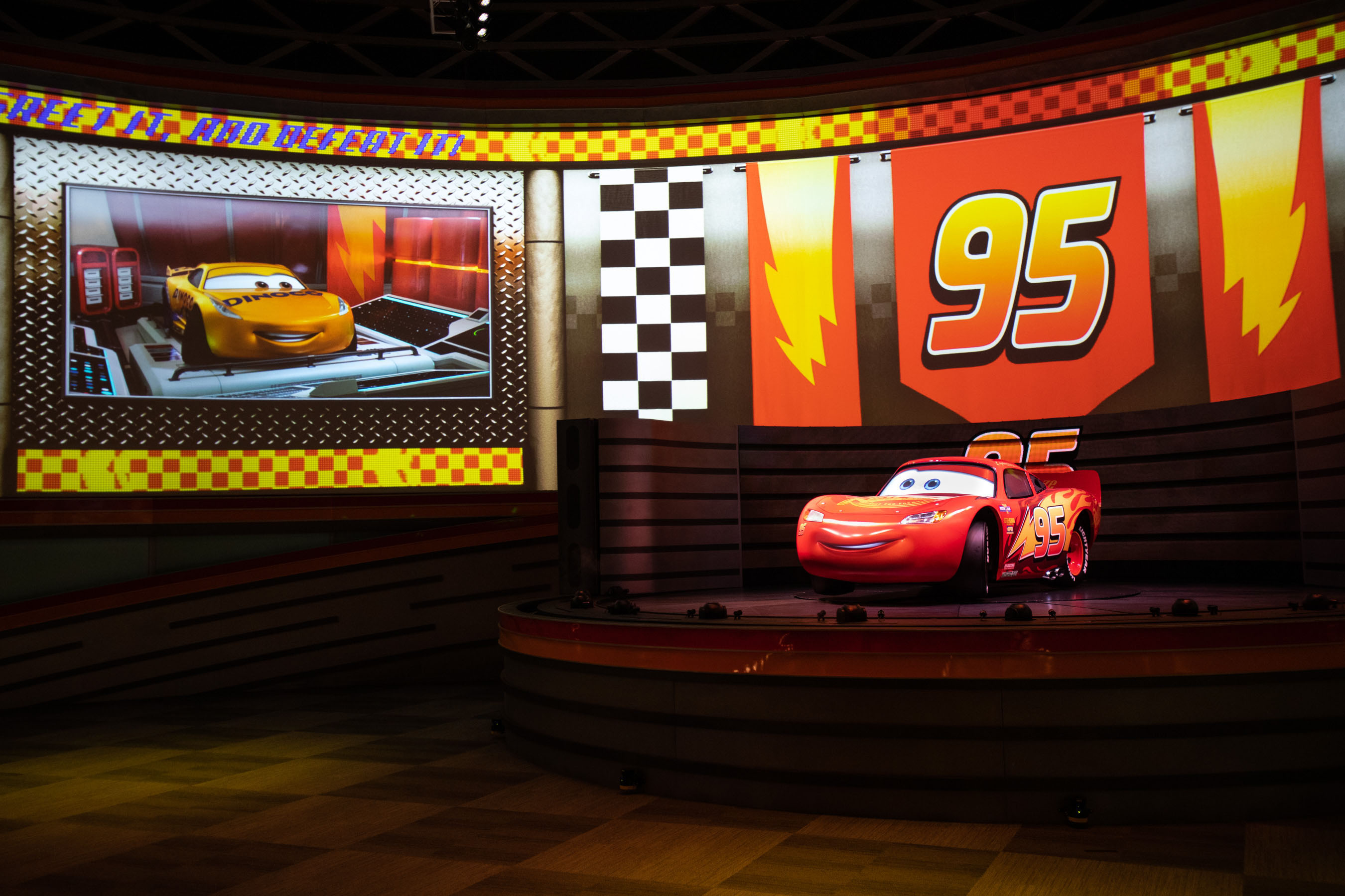 Lightning appears live on stage, thanks to cutting-edge animatronics, backed by a massive 17-foot-tall, 200-foot-wide wraparound screen. This immersive screen places you right in the middle of the action as Lightning shares racing wisdom gathered over his storied career.