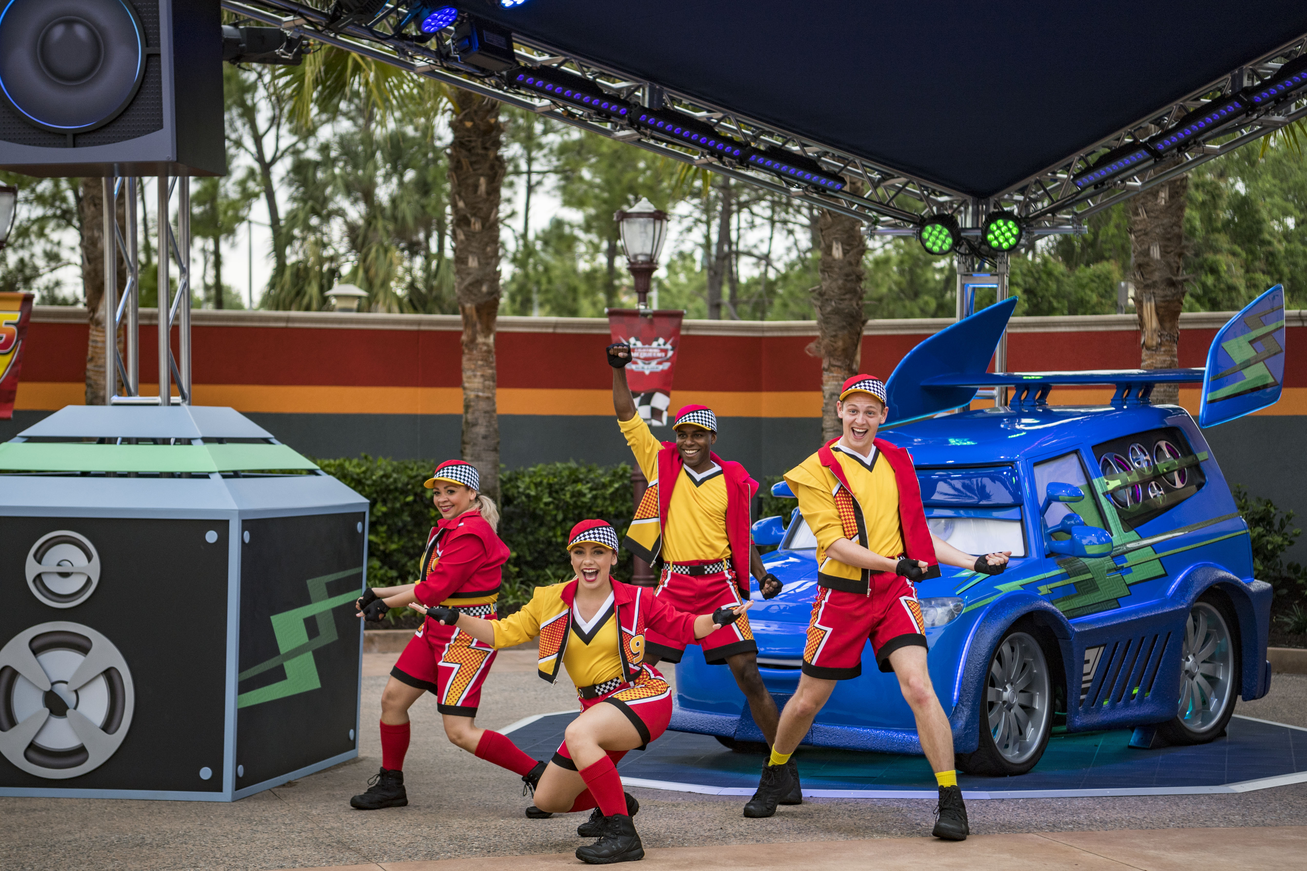 Outside the theater, the courtyard sets the tone with photo ops featuring Cruz Ramirez and the legendary Piston Cup. Don’t miss DJ’s Ready! Set! Party Time!, a high-energy dance party where DJ spins Cars-inspired tunes, and kids can join games and dances inspired by Radiator Springs.