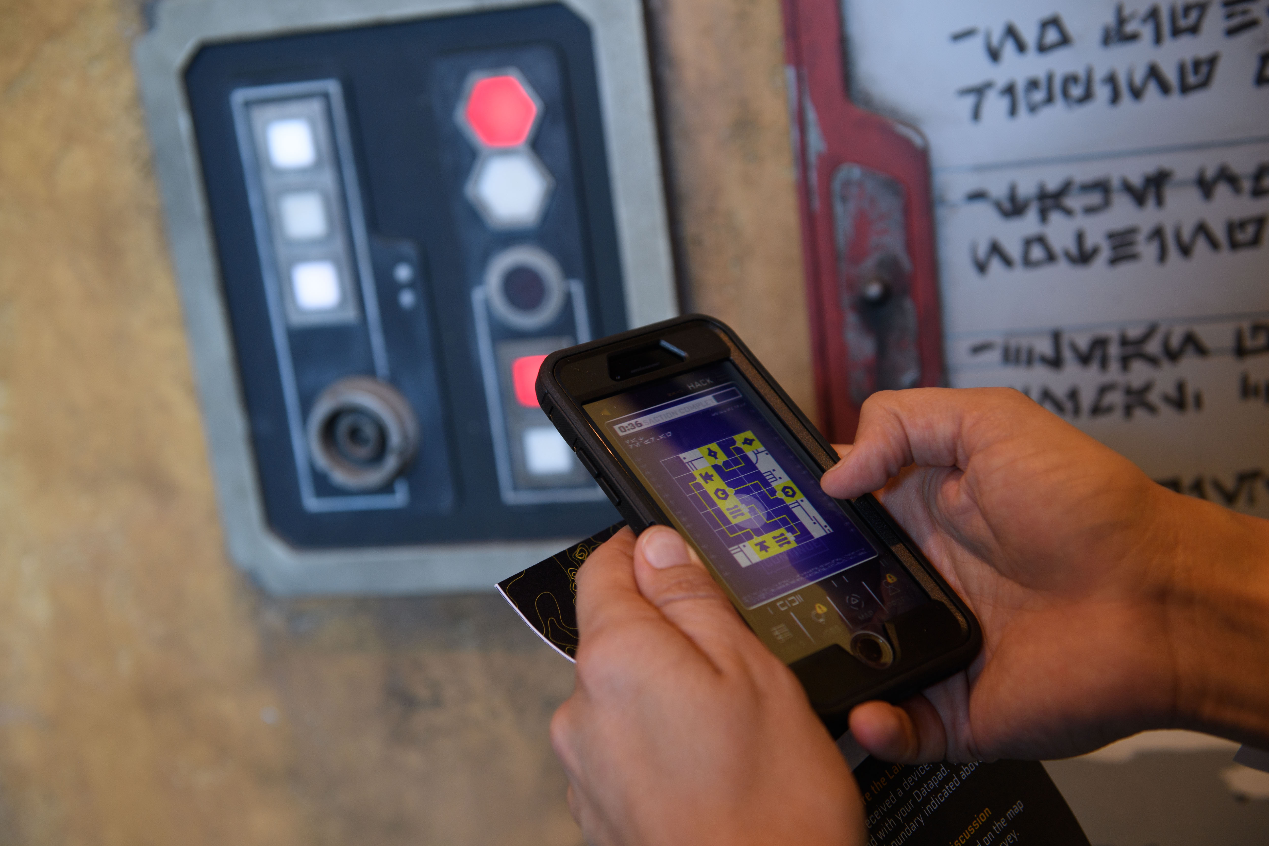 Star Wars: GalaxyÕs Edge is the first land within a Disney park designed to integrate with the Play Disney Parks mobile app, which debuted last year. Guests who choose to use the Play Disney Parks app in Star Wars: GalaxyÕs Edge at Disneyland Park in Anaheim, California, and at Disney’s Hollywood Studios in Lake Buena Vista, Florida, will be able to transform it into their very own Star Wars: Datapad. The app provides new opportunities for guests to engage with the land. (Richard Harbaugh/Disney Parks)