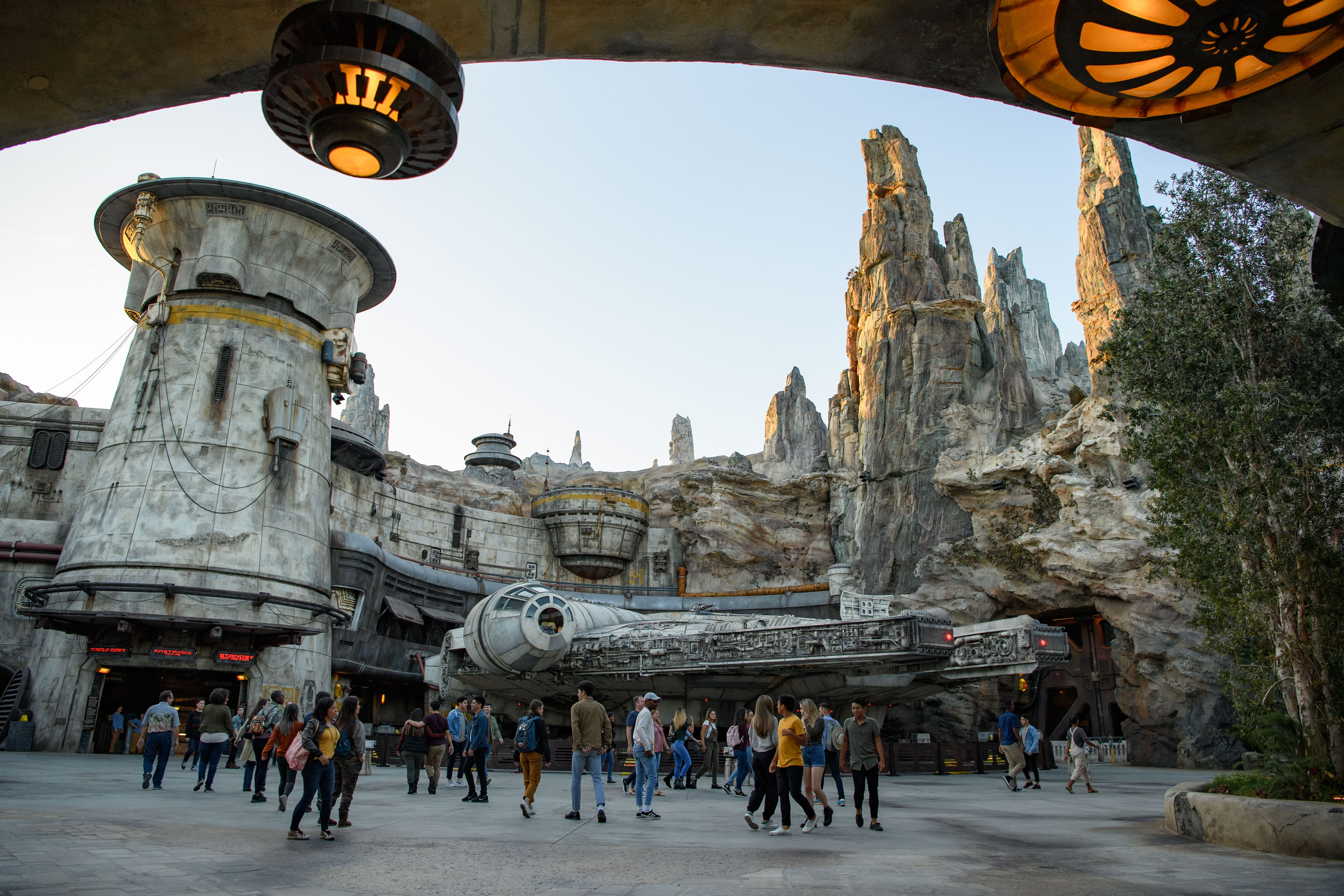 Star Wars: GalaxyÕs Edge at Disneyland Park in Anaheim, California, and at Disney’s Hollywood Studios in Lake Buena Vista, Florida, is Disney’s largest single-themed land expansion ever at 14-acres each, transporting guests to Black Spire Outpost, a village on the planet of Batuu. Guests will discover two signature attractions. Millennium Falcon: Smugglers Run, available opening day, and Star Wars: Rise of the Resistance, opening later this year. (Joshua Sudock/Disney Parks)