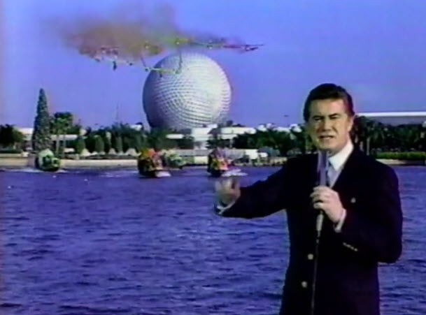 Regis introduced another EPCOT Center spectacle: Skylaidescope. This daytime lagoon show featured boats, kites, and colorful aerial battles—a fantasy-filled fight of Good vs. Evil—right on World Showcase Lagoon. The segment captured the spirit and ambition of EPCOT’s live entertainment of the era.