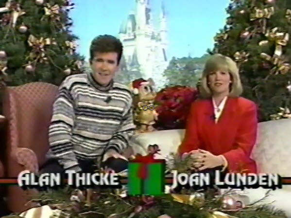 1990 Walt Disney World Christmas Day Parade. Hosted by Joan Lunden and Alan Thicke with Regis Philbin and Jameel White and Sarah Purcell at Disneyland
