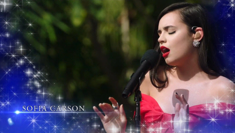 Sofia Carson sang “Silent Night” beneath the glowing Tree of Life.