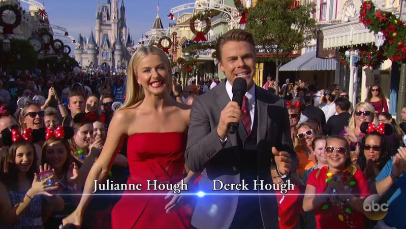 The Disney Parks Magical Christmas Celebration brought festive cheer to nationwide viewers in 2016. Hosted by Julianne Hough and Derek Hough at WaltDisney World, with Jesse Palmer reporting from Disneyland, this year’s special featured musical performances from all four Walt Disney World parks, paired with parade segments straight from Disneyland.