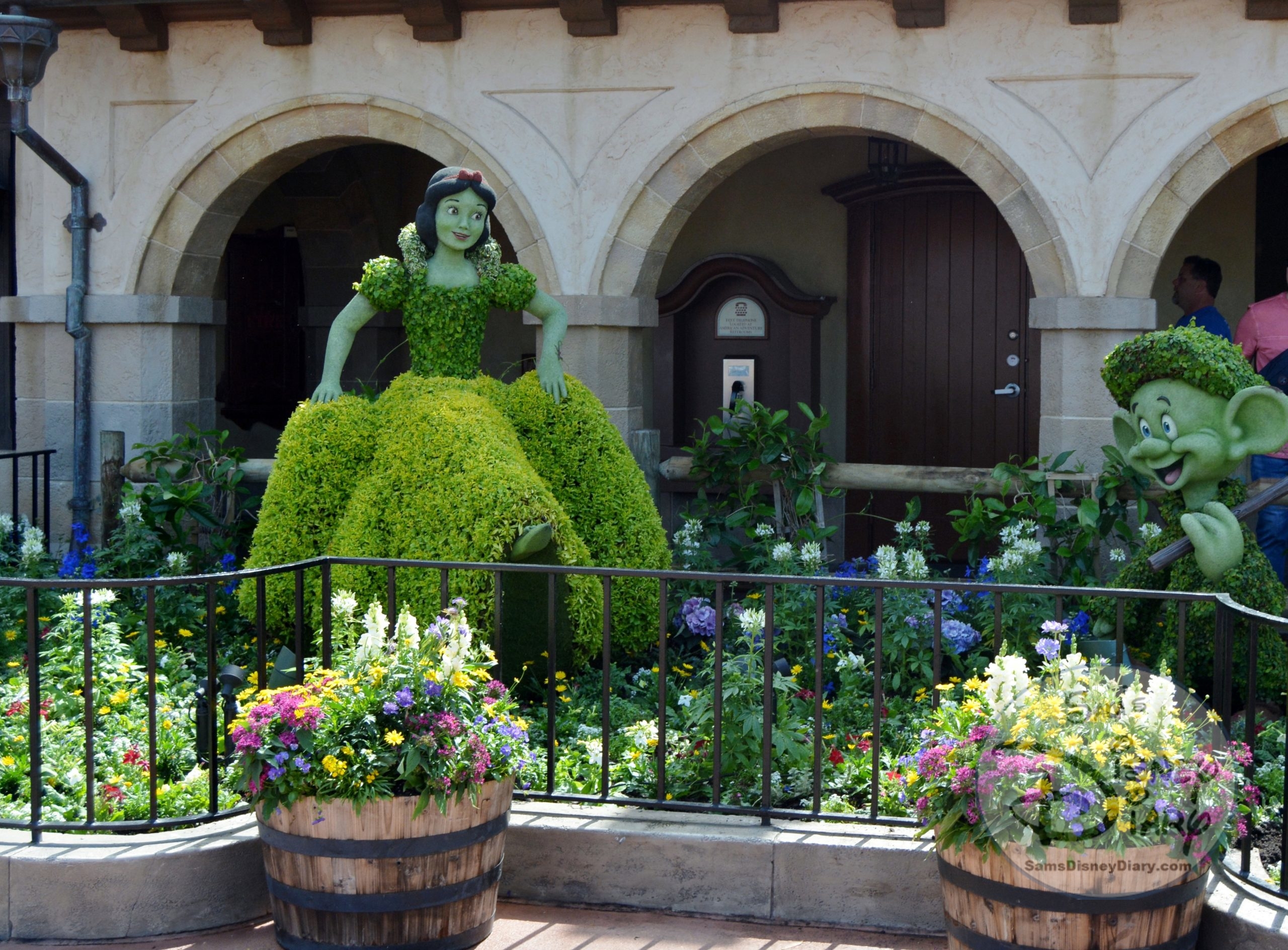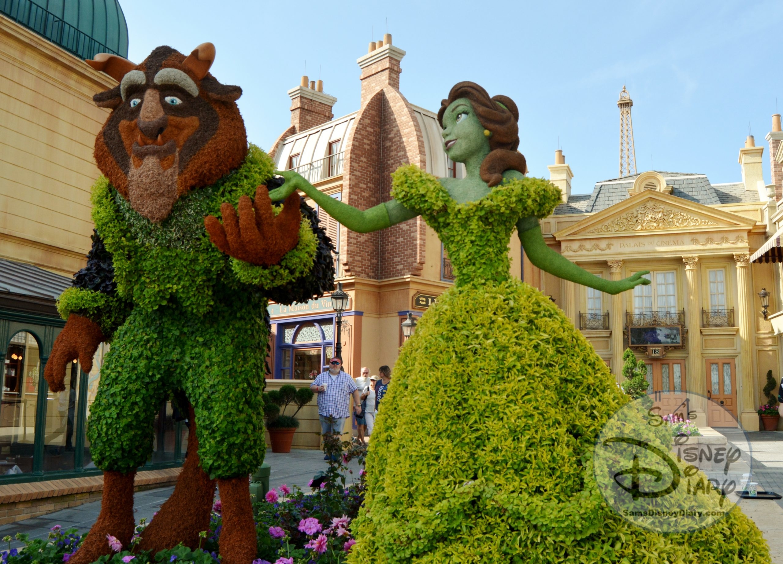 • Classic topiaries like Belle and Beast, Kermit and Miss Piggy, and Lady and the Tramp throughout the festival grounds.