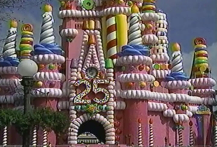 The 25th Anniversary Parade at Magic Kingdom, featuring classic characters and a catchy anthem.