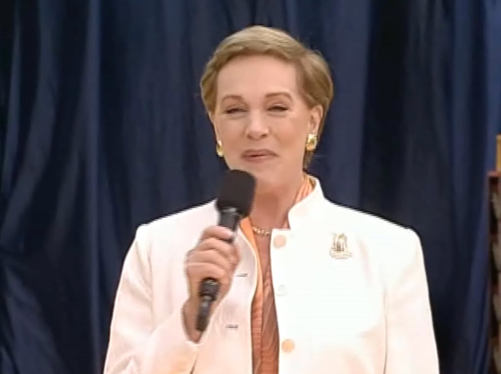 Michael Eisner, outgoing CEO of The Walt Disney Company, joined the event to introduce the global celebration. He reflected on the growth of the Disney Parks and welcomed a special guest: Julie Andrews. As Disneyland’s honorary ambassador, Andrews shared her memories of Disneyland’s early days and helped welcome Disney characters “home” for the celebration.