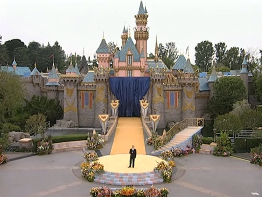 Sleeping Beauty Castle received a regal overnight transformation to kick off the festivities. Draped in gold and adorned with commemorative décor, the castle stood as the centerpiece of Disneyland’s golden anniversary. It welcomed fans old and new into a year-long celebration of Disney magic.