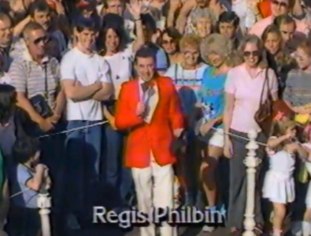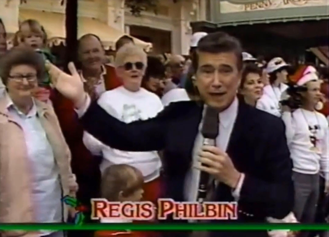 Regis Philbin became a fixture on Main Street, U.S.A., during the Walt Disney World Christmas Day Parade throughout the 1980s. Beginning with the second annual parade in 1984, Regis brought his signature energy as the man on the street, delivering live reports filled with holiday excitement.
