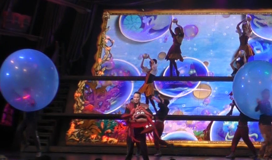 Sebastian from The Little Mermaid energizes the stage with “Under the Sea”