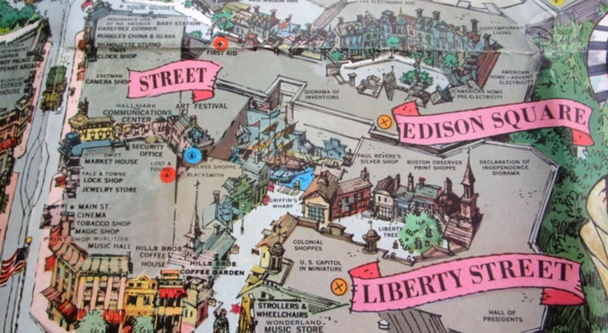 “One Nation Under God ” was the original idea for Walt Disney World’s Hall of Presidents. Walt Disney envisioned it as part of Library Street, a proposed expansion to Disneyland’s Main Street, U.S.A. This new area, shown on 1958 park maps, would have included Edison Square and The Hall of Presidents.