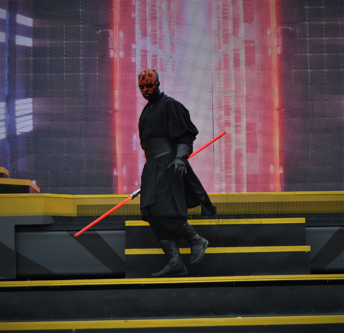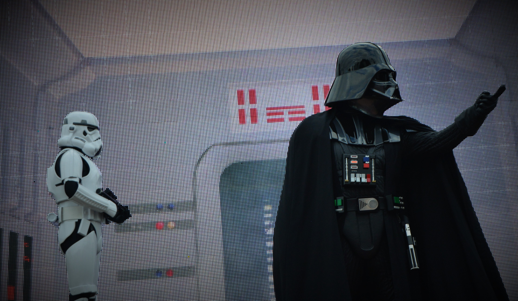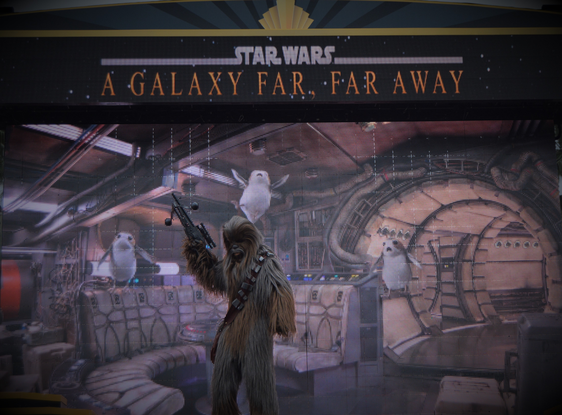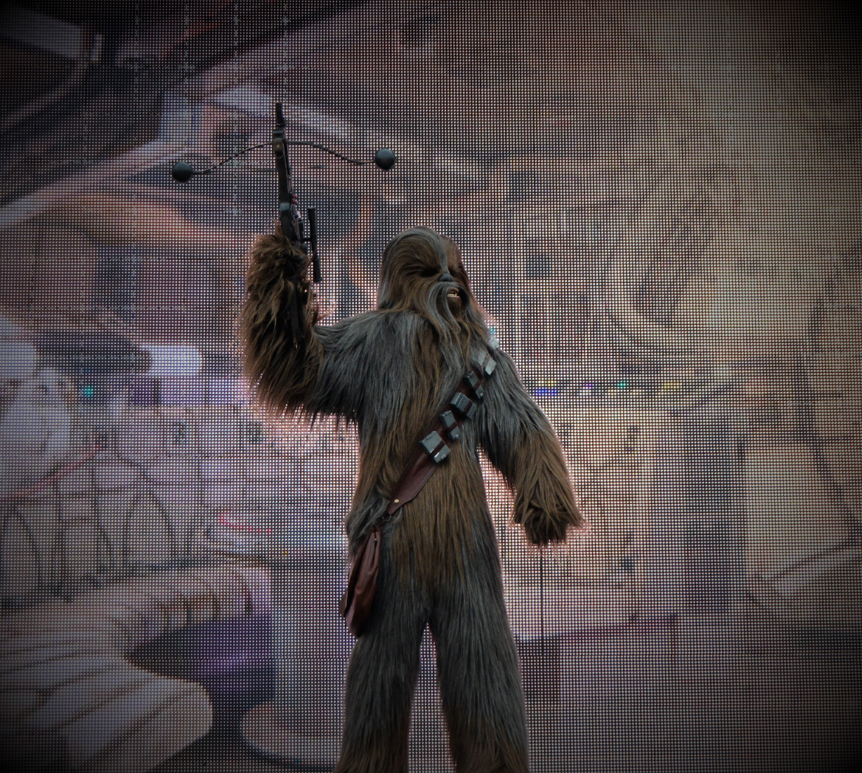 Characters like Darth Vader, Rey, Kylo Ren, Chewbacca, and BB-8 took the stage. Accompanied by powerful music and projected film clips, they recreated iconic scenes from all across the Star Wars timeline.