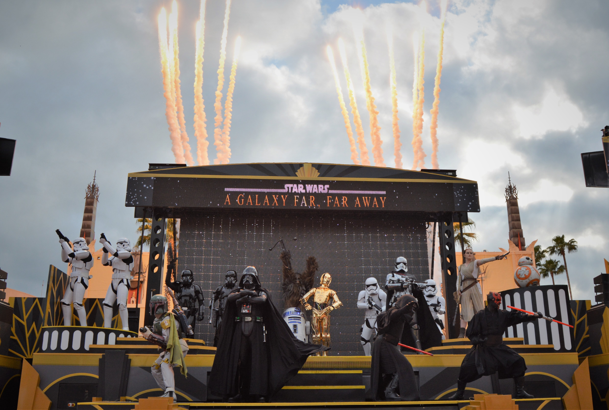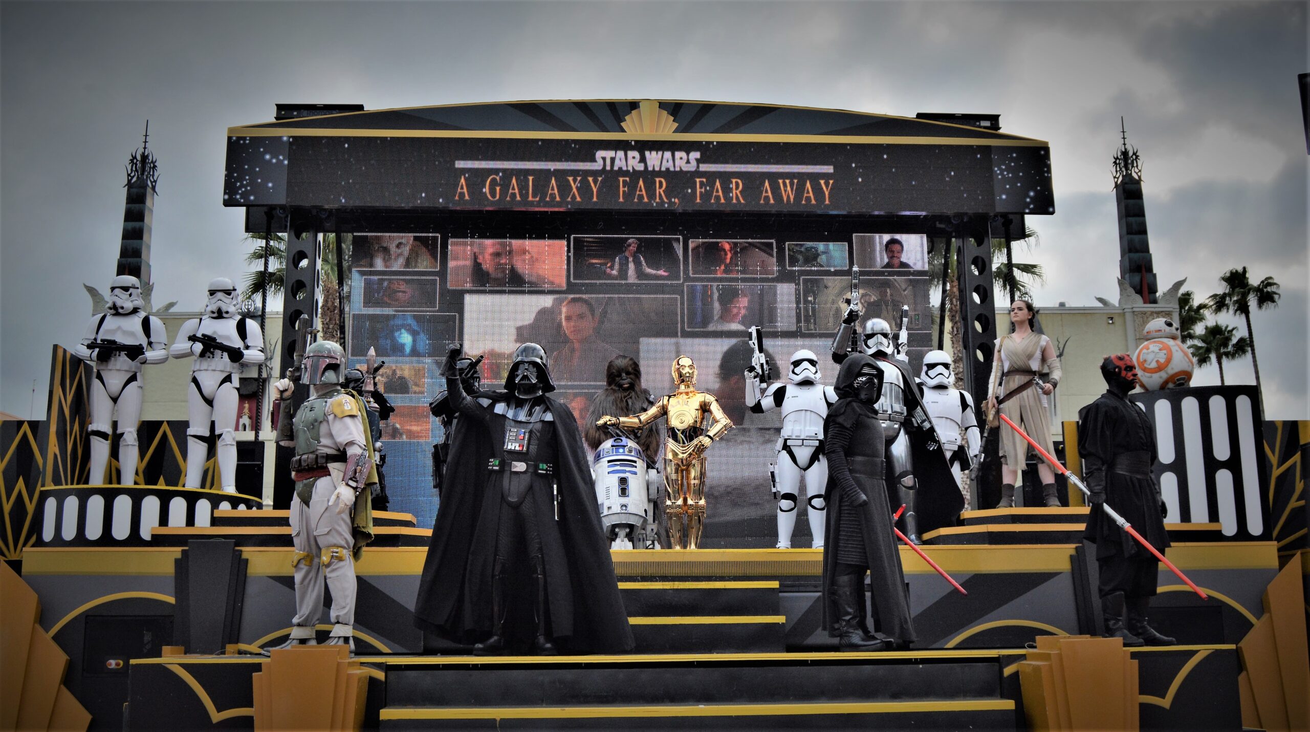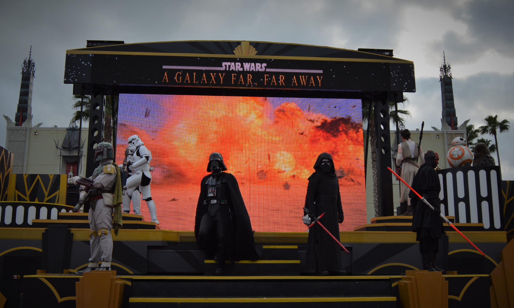 Running several times daily in front of the Chinese Theater, this 15-minute performance celebrated cinematic Star Wars moments with live characters, dramatic visuals, and an unforgettable soundtrack.