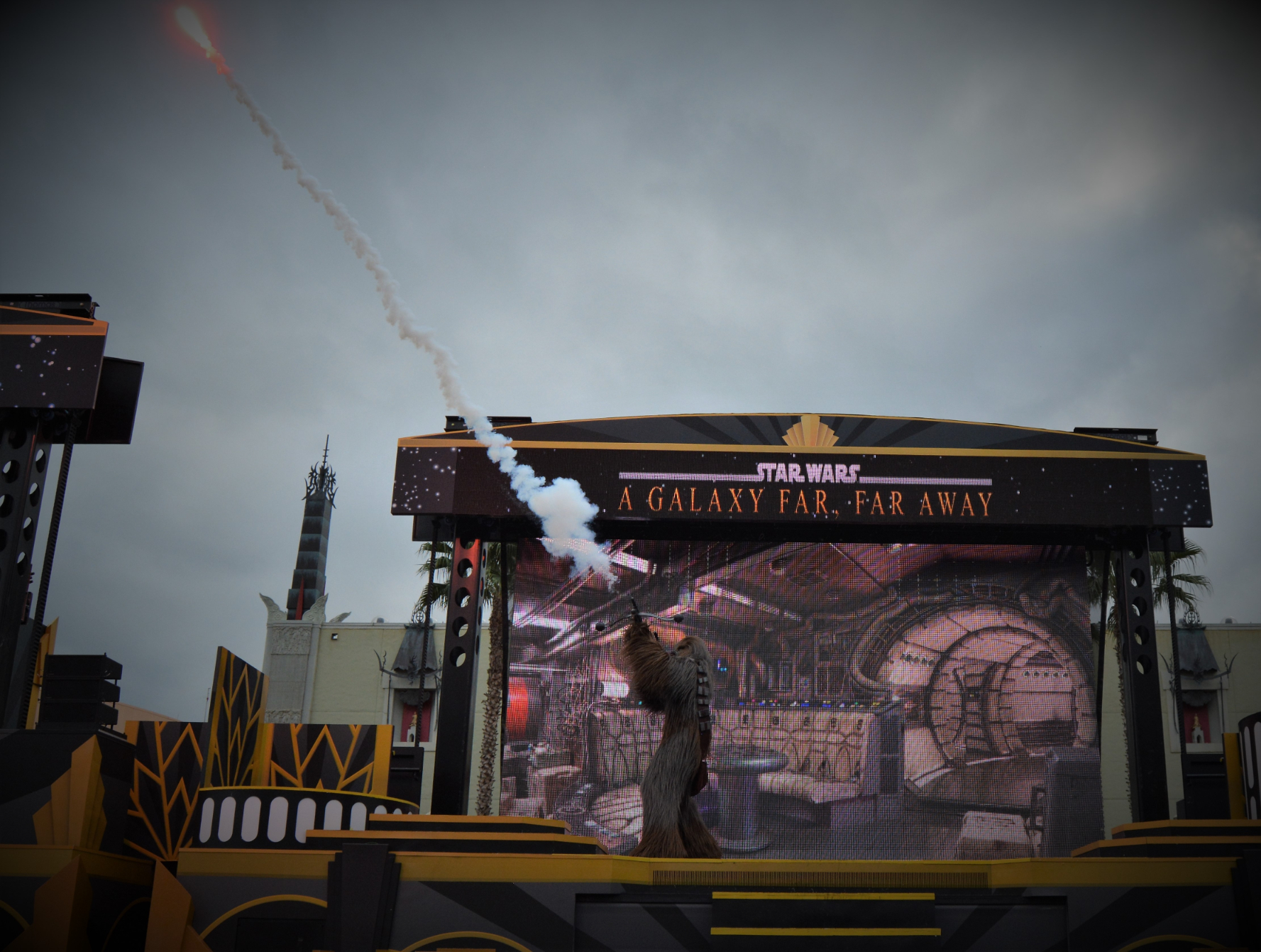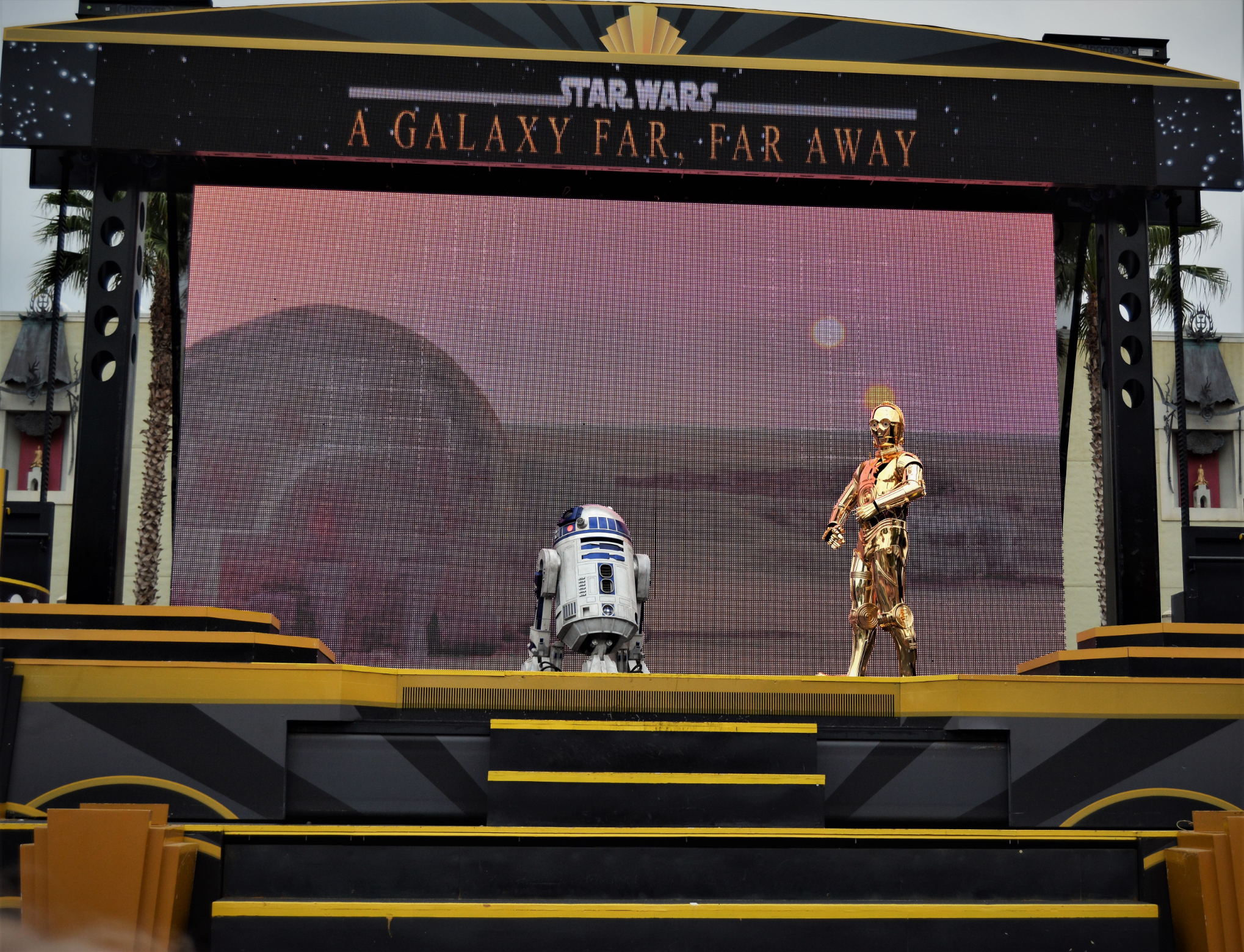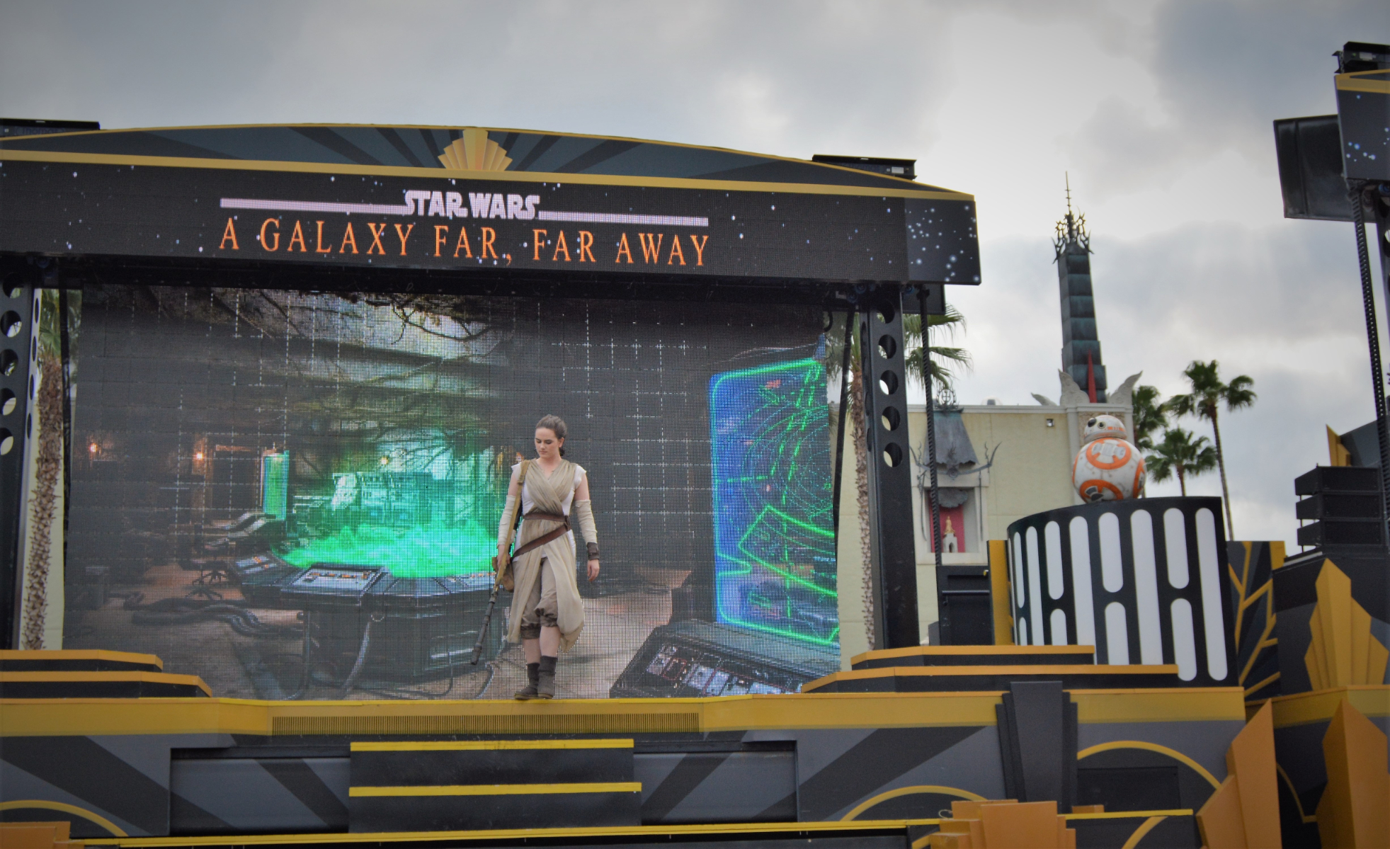 Running several times daily in front of the Chinese Theater, this 15-minute performance celebrated cinematic Star Wars moments with live characters, dramatic visuals, and an unforgettable soundtrack.