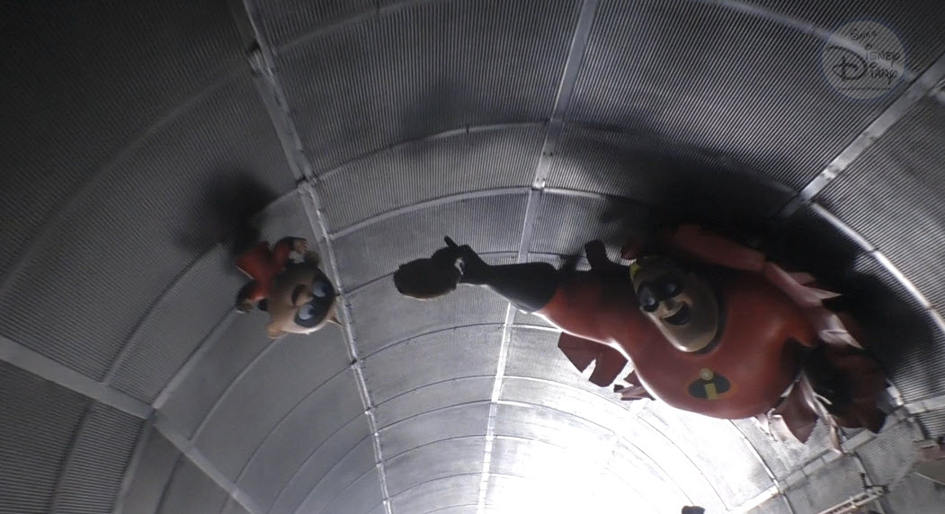 The new version of the ride begins with Dash counting down the launch as reporters interview the Incredibles for the coaster’s opening. Trouble strikes when Jack-Jack escapes from Edna Mode, who’s babysitting while the rest of the family attends the event. A high-speed chase follows as each family member tries to catch the mischievous baby.