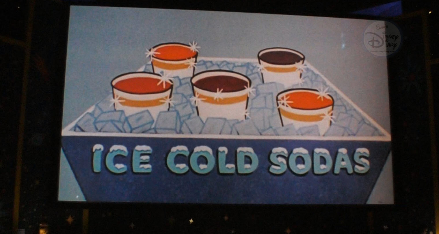 The loop plays continuously on the big screen in the middle of the dining area. This episode of SamsDisneyDiary features the complete 2019 loop, minus a few copyrighted segments that were blocked on YouTube—including: