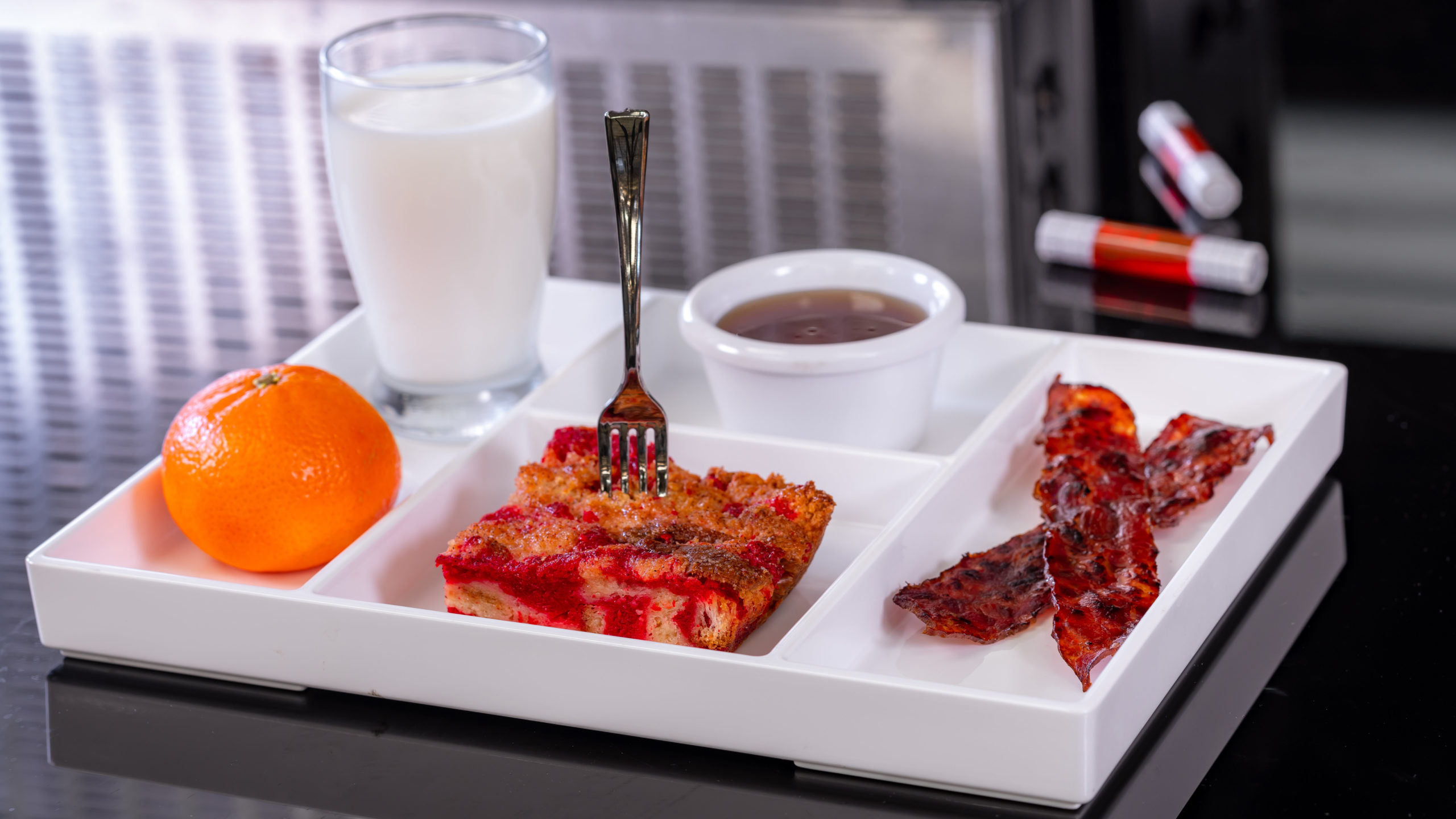 At Pym Test Kitchen in Avengers Campus inside Disney California Adventure Park, even the food and drinks tell a story. Just as Ant-Man and The Wasp used shrinking and growing technology, Pym Test Kitchen applies this science to innovative food. Guests can delight in the Cinna-Pym Mini Toast Ð Warm toasted cinnamon Pym particle bread with turkey bacon and maple syrup (for small beings ages 3 through 9). (David Nguyen/Disneyland Resort)
