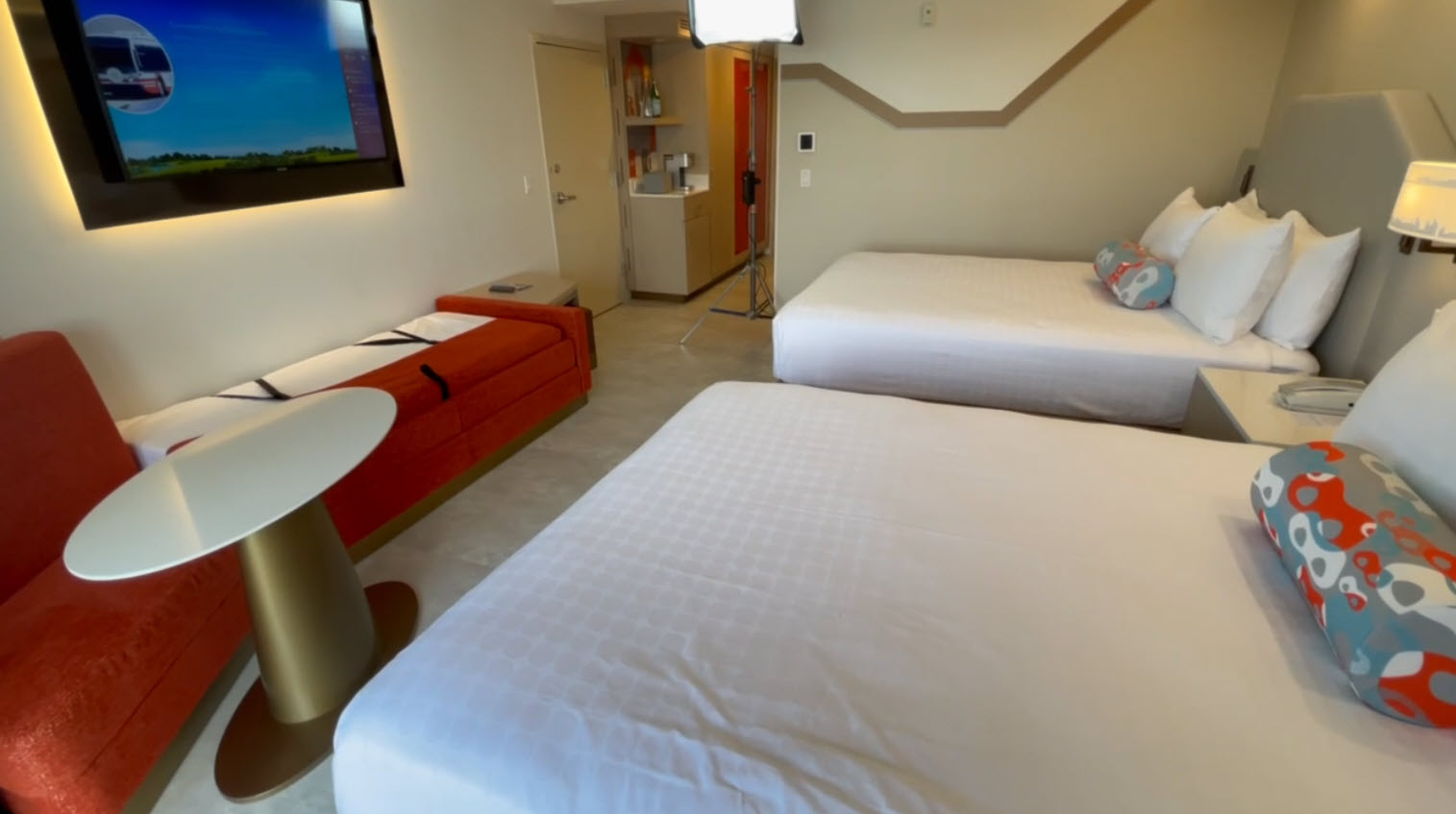 Disney has described the new rooms as a “sleek Monorail motif evoking Tomorrowland”, but make no mistake—this is a Pixar-powered room through and through.
