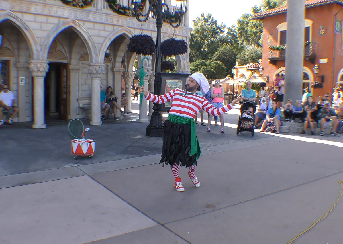 Sergio, the Italian Mime, has been a fan-favorite at EPCOT for years. His performances seamlessly combine mime artistry, juggling, and comedy, creating unforgettable moments for guests of all ages. Watching Sergio perform is a must-do experience for many visitors at EPCOT’s World Showcase.