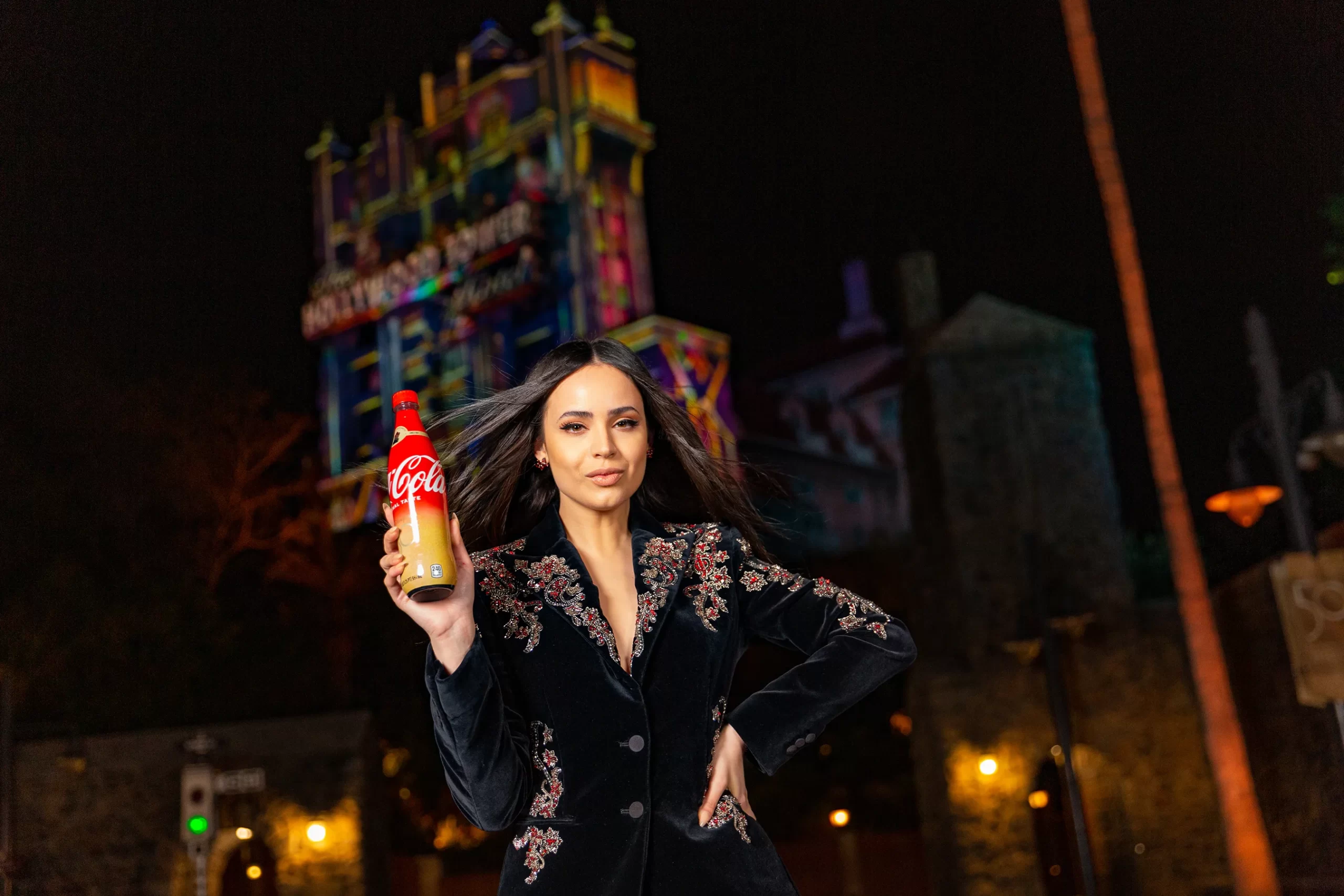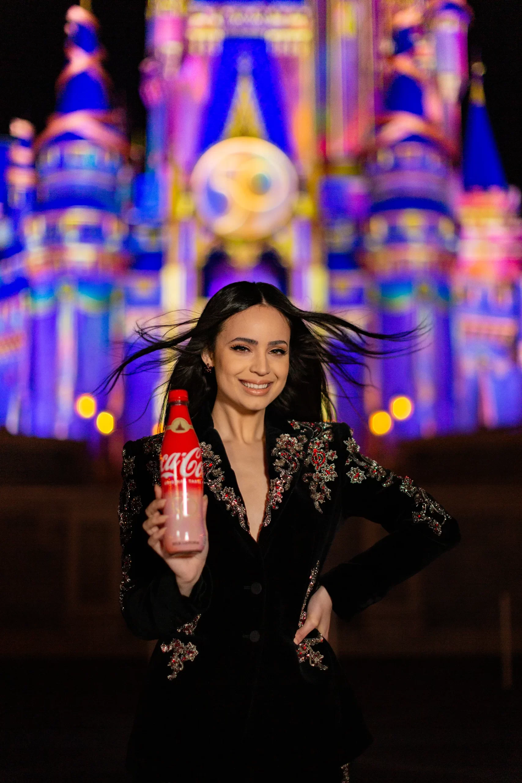 Disney star and recording artist Sofia Carson helped unveil the commemorative Walt Disney World Coca-Cola Bottles during a special appearance at the resort. Carson has long been a fan of Disney and Coca-Cola, making her the perfect spokesperson for this milestone.