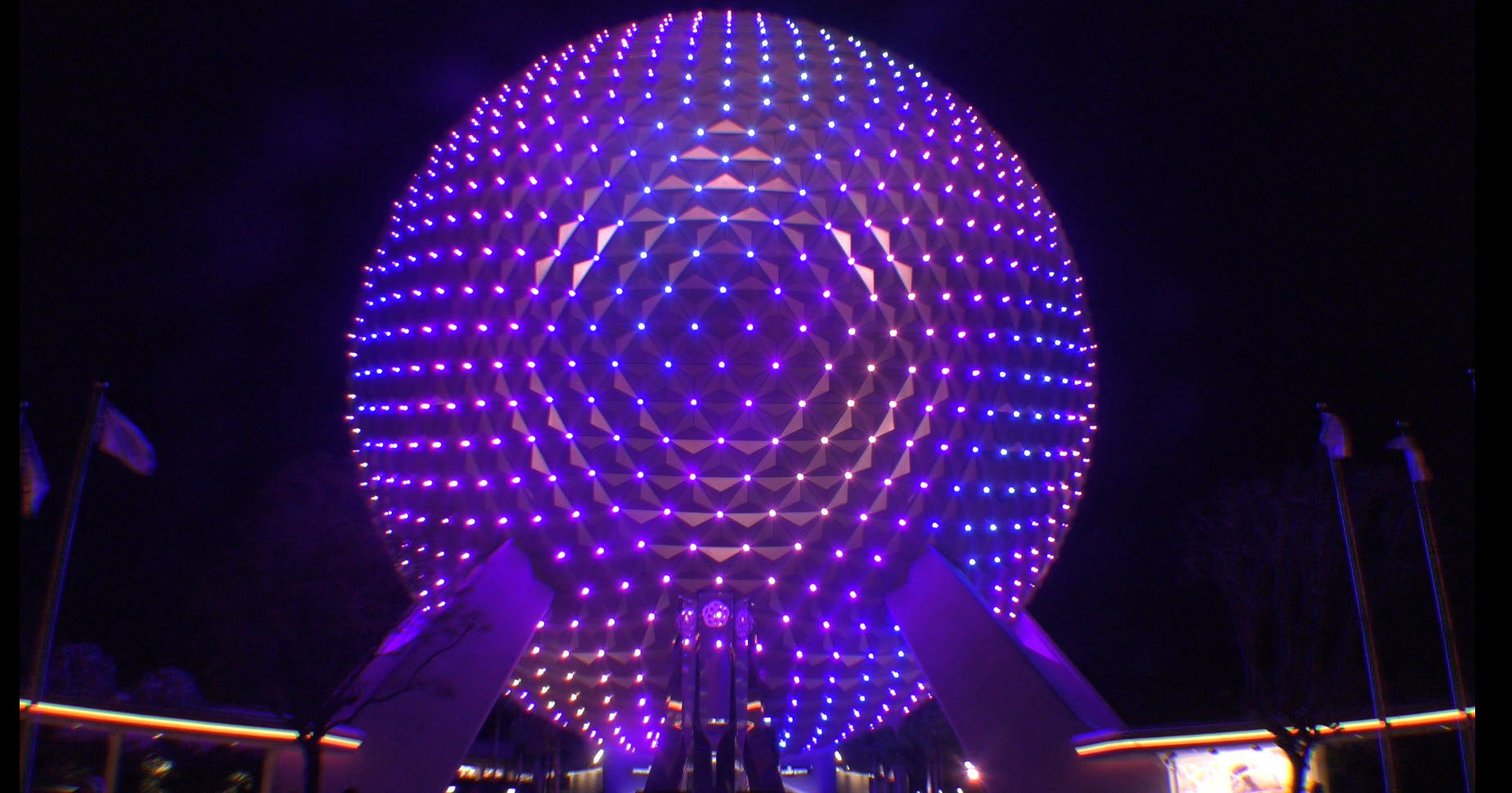 As part of the Walt Disney World 50th, Anniversary Celebration, theme park icons transform into magnificent Beacons of Magic. EPCOT’s Spaceship Earth Lights Upand shines among these icons, mesmerizing guests with its unique EARidescent glow.