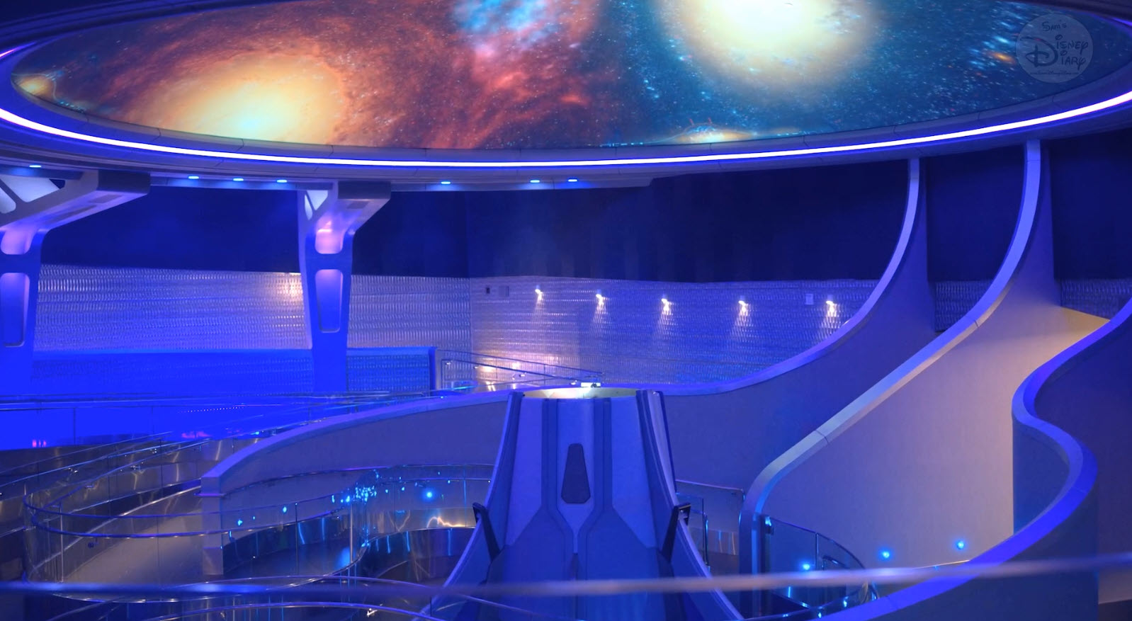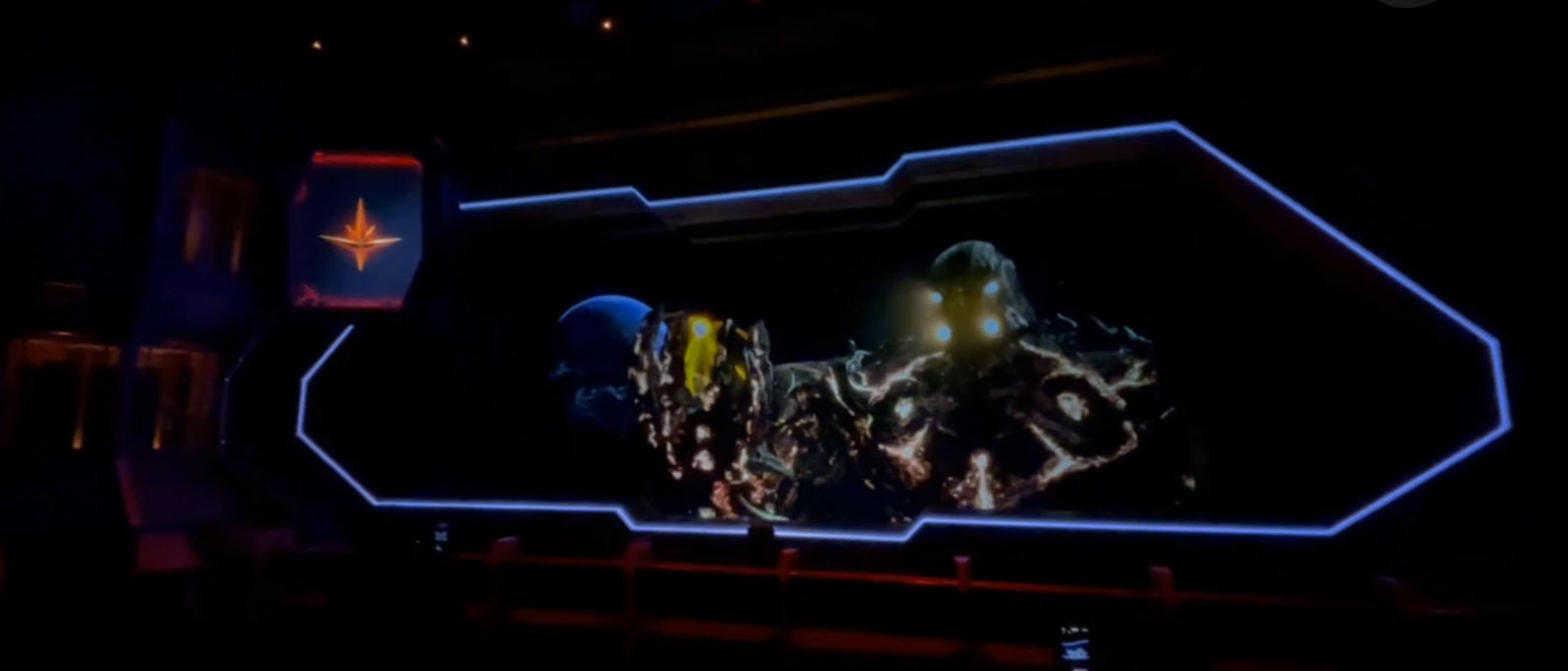 The experience begins in World Discovery at Epcot, as guests enter the Xandar Pavilion. After the 30-minute Galaxarum, visitors meet Worldmind, the Xandarian supercomputer. The Galaxarum loop sets the tone for the adventure ahead.
