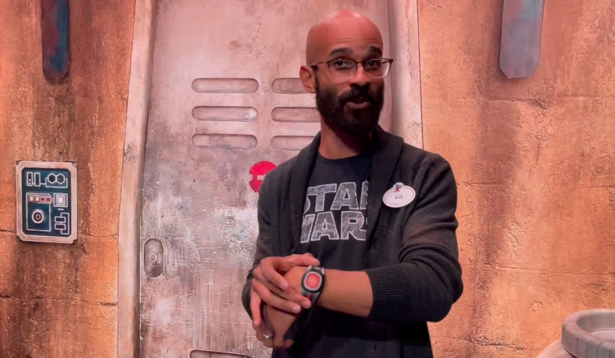 In Galaxy’s Edge at Disney’s Hollywood Studios, guests can join the Batuu Bounty Hunters’ Guild. MagicBand+ guides you using lights and vibrations to locate bounties. The Play Disney Parks app helps you scan your bounty using a thermal viewer. After completing your mission, you return to the guild master for your reward.