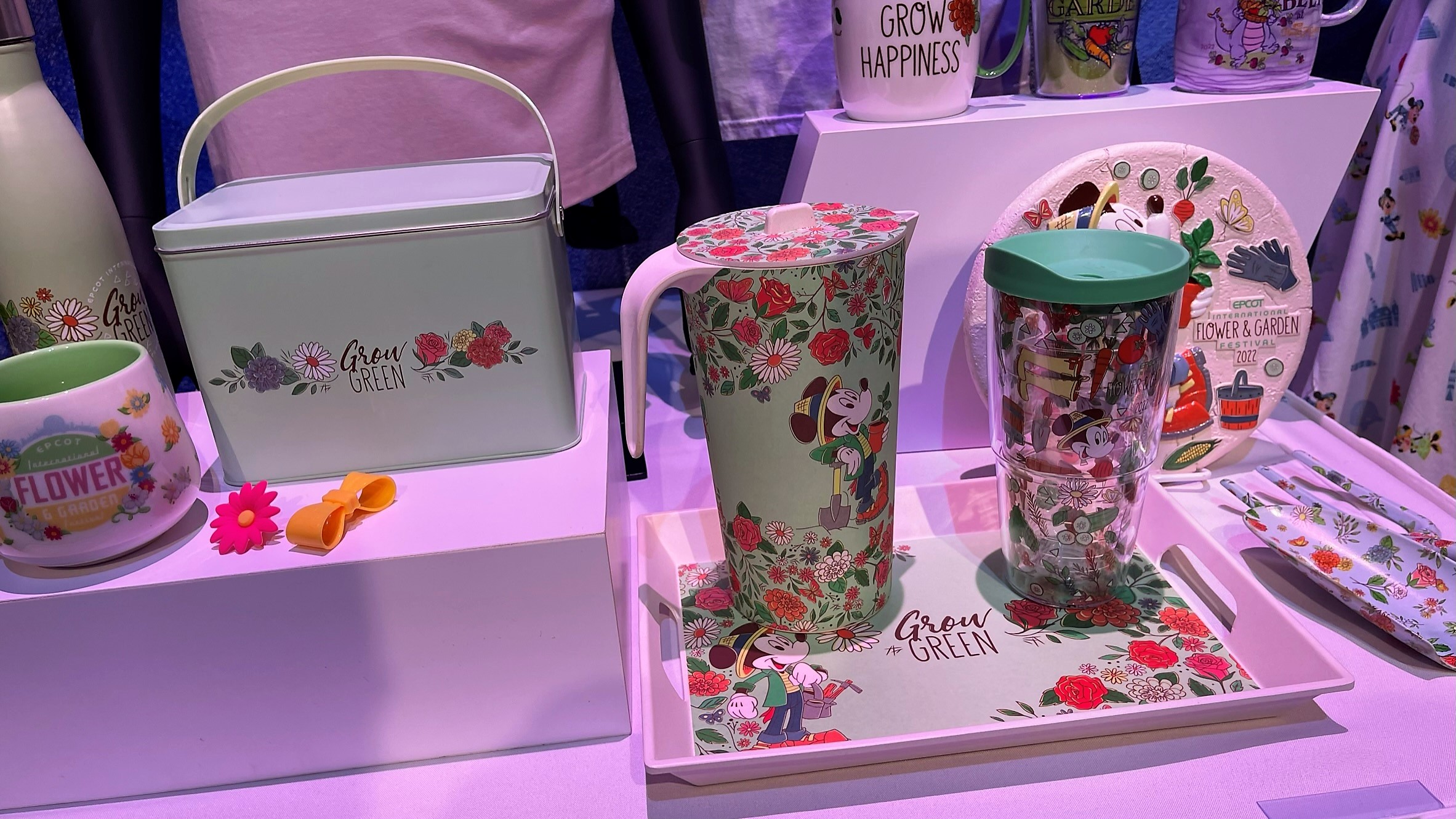 Mickey and Minnie are ready for a garden stroll, dressed in dapper springtime attire. This charming merchandise line is perfect for those who want to bring a little whimsical magic to their festival experience. Featuring pastel tones and floral patterns, the collection includes apparel, drinkware, and other accessories adorned with playful artwork inspired by the Flower & Garden Festival.