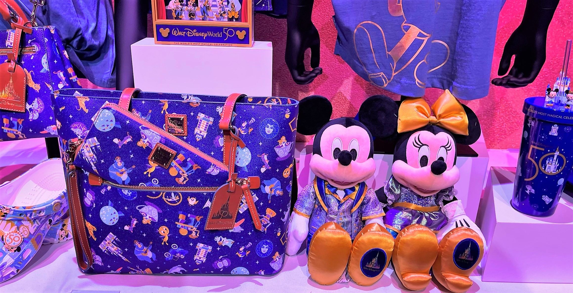 Guests can shop these exclusive collections at several locations throughout Walt Disney World, including World of Disney at Disney Springs. And various shops at Magic Kingdom, EPCOT, Disney’s Hollywood Studios, and Disney’s Animal Kingdom. Be sure to check out the 50th Anniversary Celebration Shop for the full collection of souvenirs.