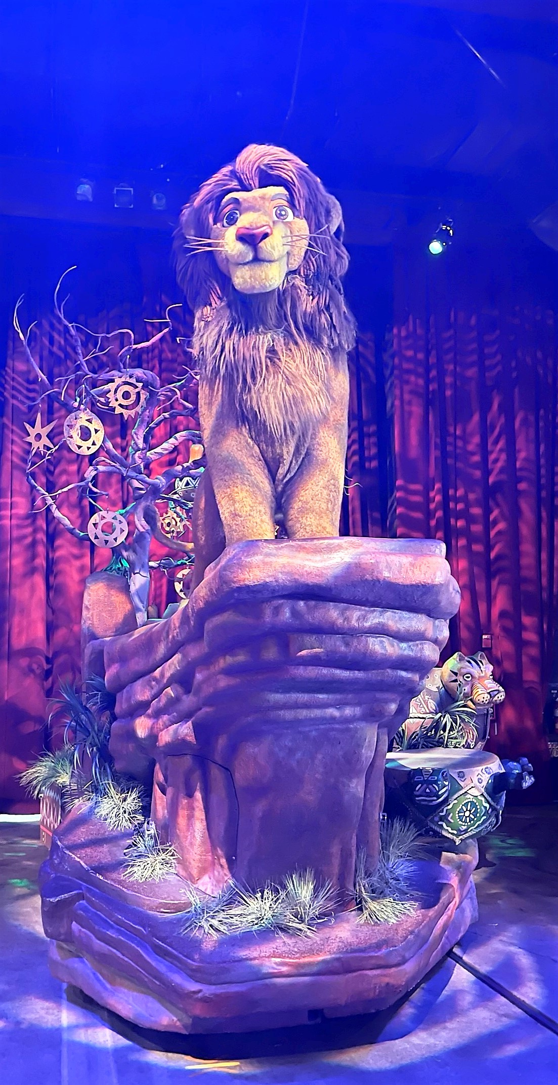 This production is a musical celebration, not a direct retelling of the film. The four main storytellers—Kiume, Nakawa, Kibibi, and Zawadi—guide audiences through the experience, interacting with Simba, Timon, and Pumbaa as they bring the beloved songs to life.
