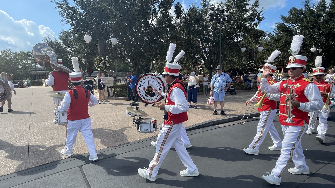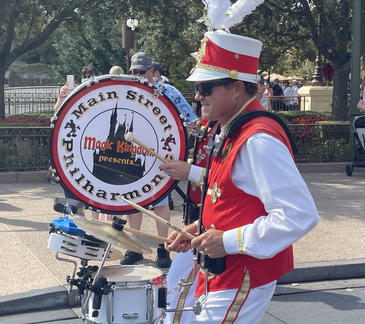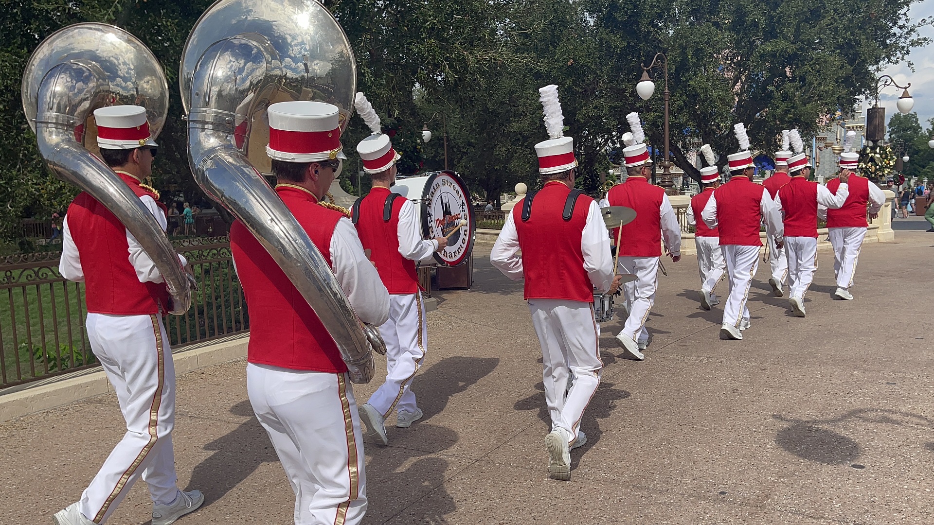 Drum roll, trumpet call! The Main Street Philharmonic is a 12-piece brass and percussion band that brings timeless musical energy to Magic Kingdom. Marching down Main Street, U.S.A., they captivate guests with classic marches, big band hits, and Disney favorites.