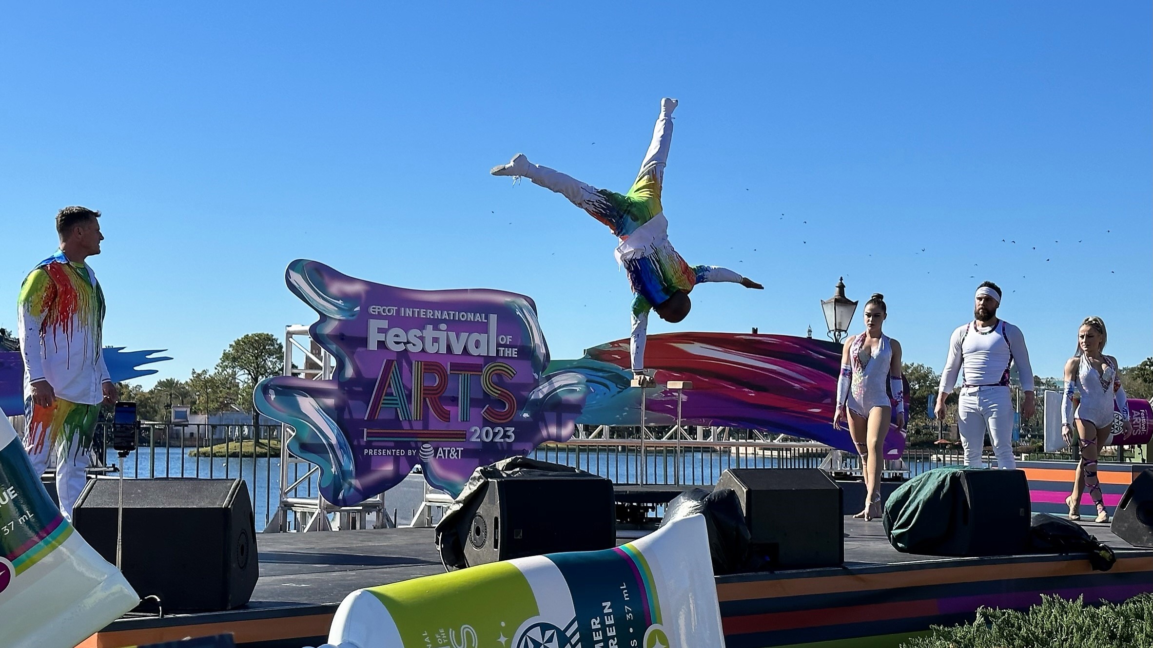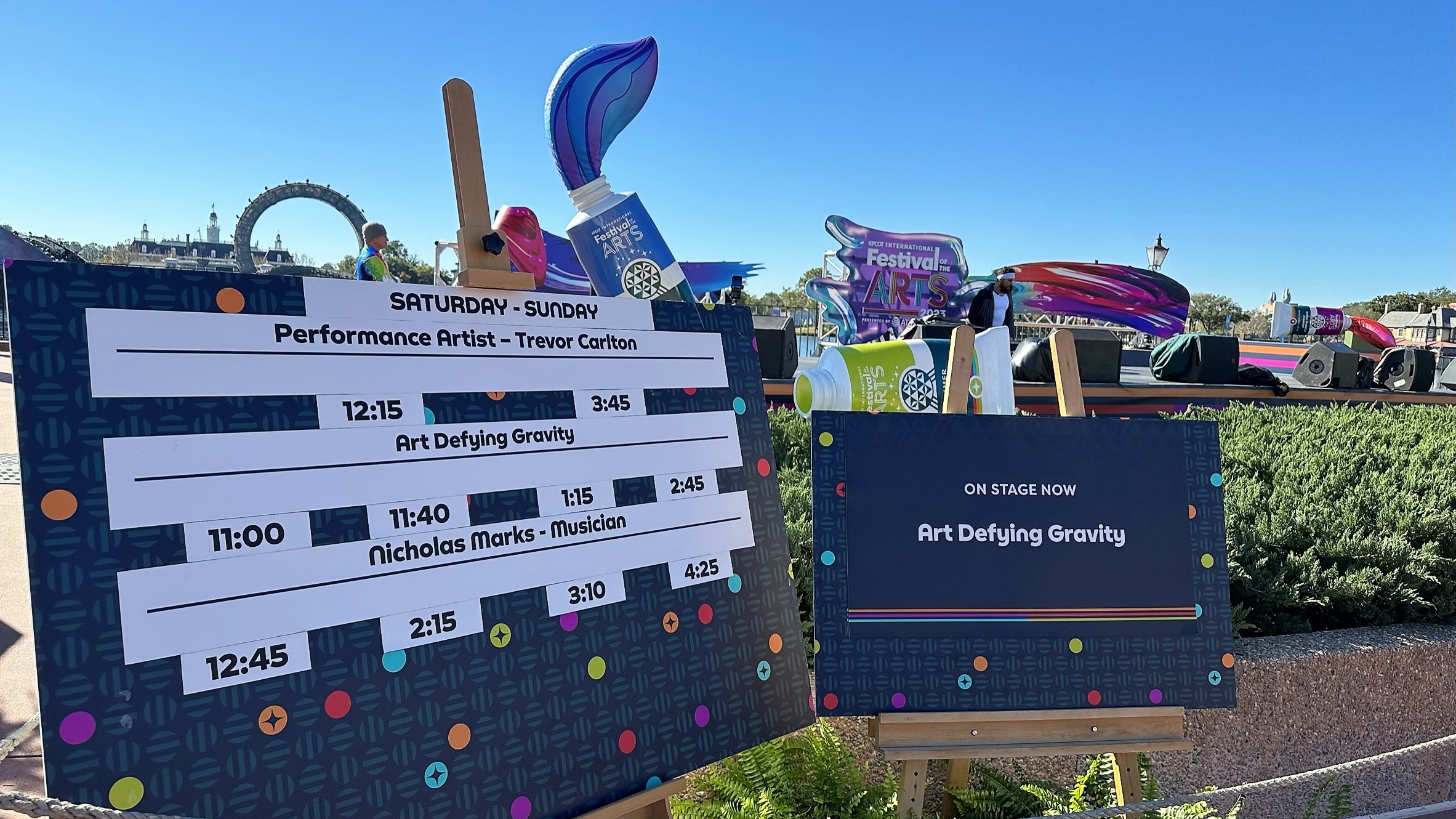Art Defying Gravity takes place at the World Showcase Plaza stage from Saturday through Wednesday during the Festival. While showtimes may vary, guests are encouraged to check the My Disney Experience app on the date of their visit to find the most up-to-date schedule. Typically, there are multiple performances throughout the day, offering ample opportunities to witness this dynamic act.