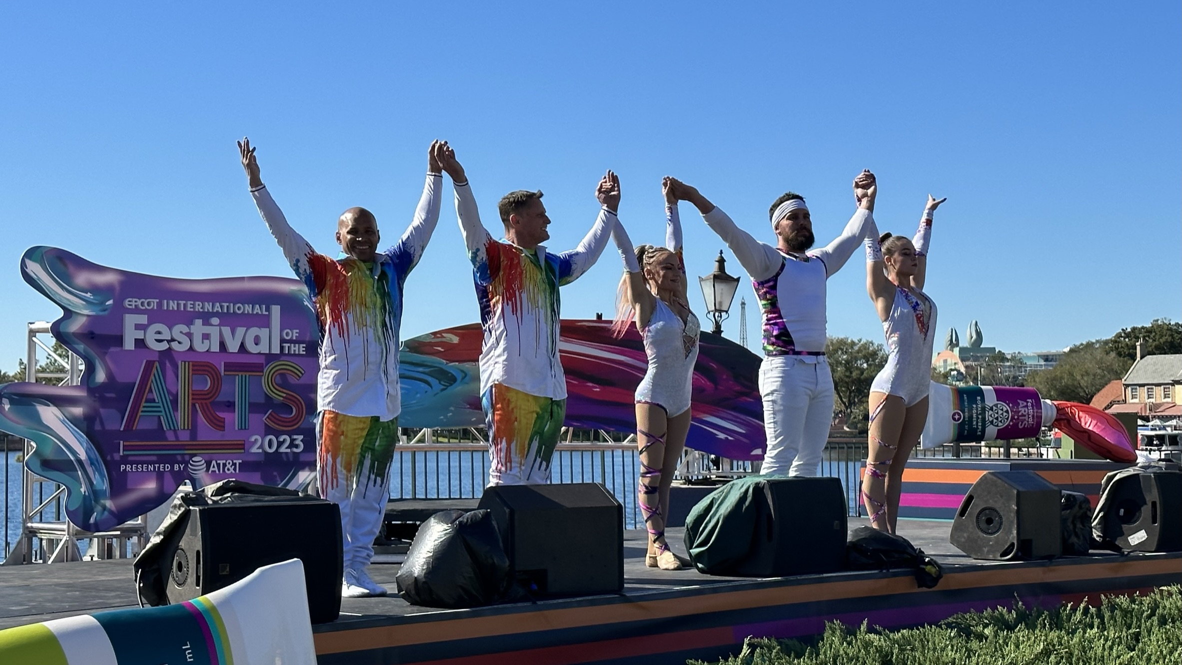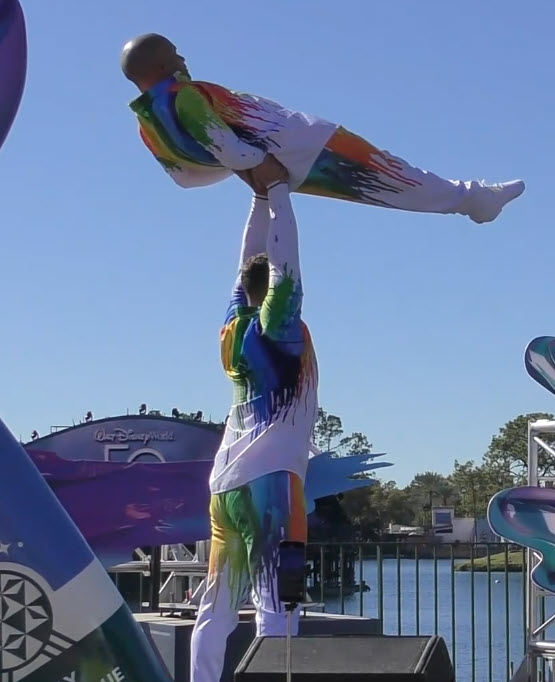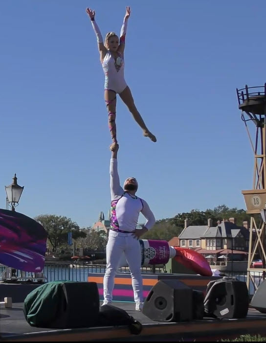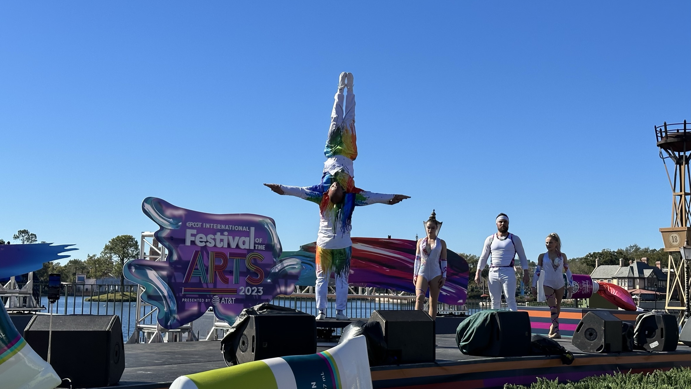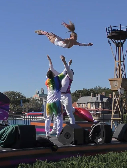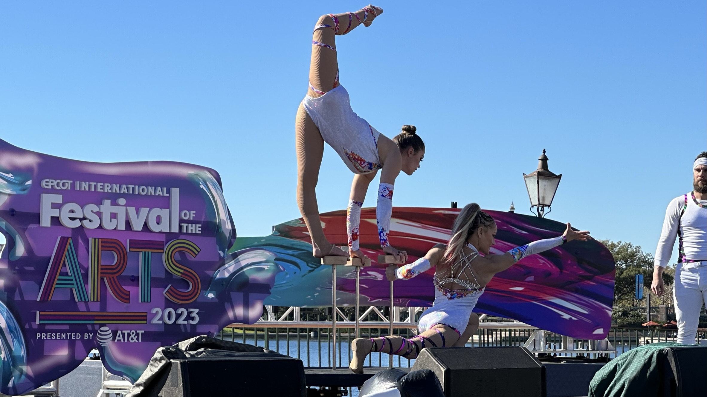 Experience the awe-inspiring Art Defying Gravity performance at the Epcot International Festival of the Arts 2023. This captivating show features thrilling acts of strength and agility, showcasing performers who push the boundaries of physical artistry.