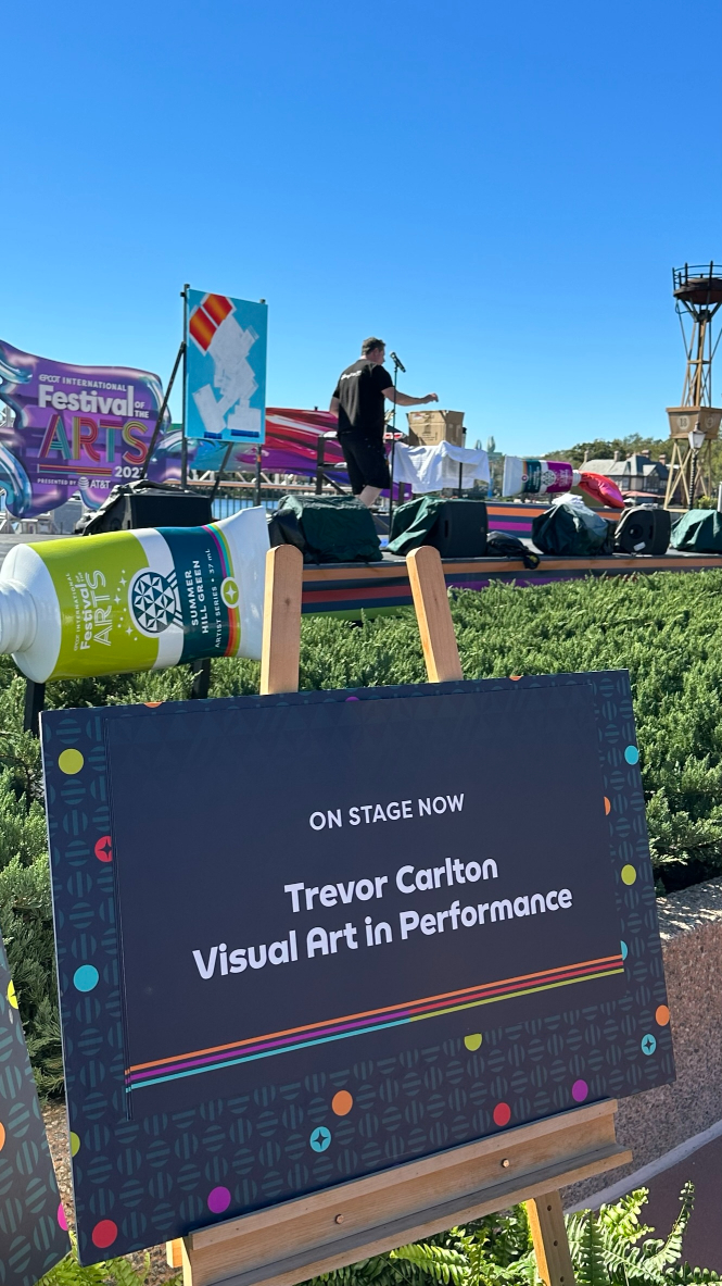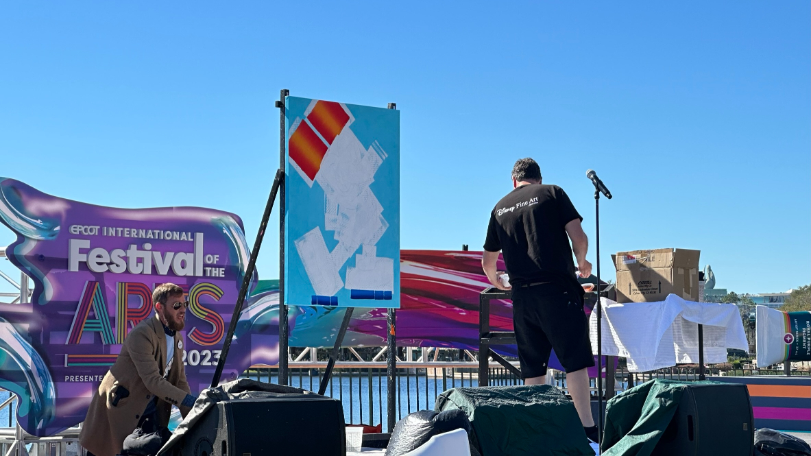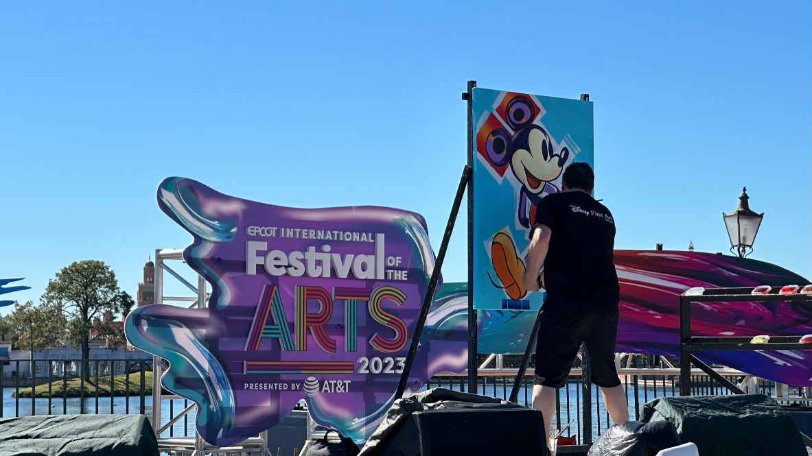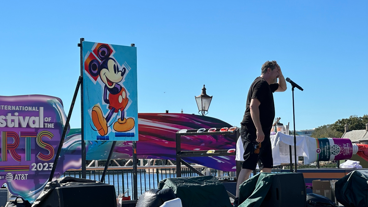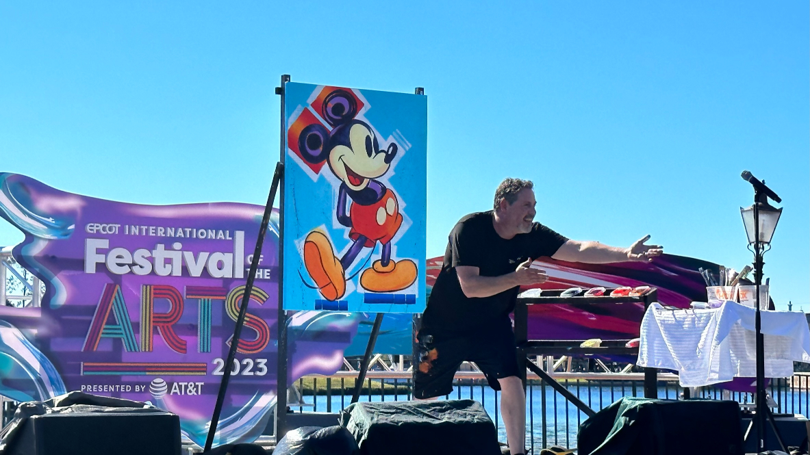 2023 Epcot Festival of Arts. Vistual Art in Performance. Trevor Carlton paints Mickey Mouse