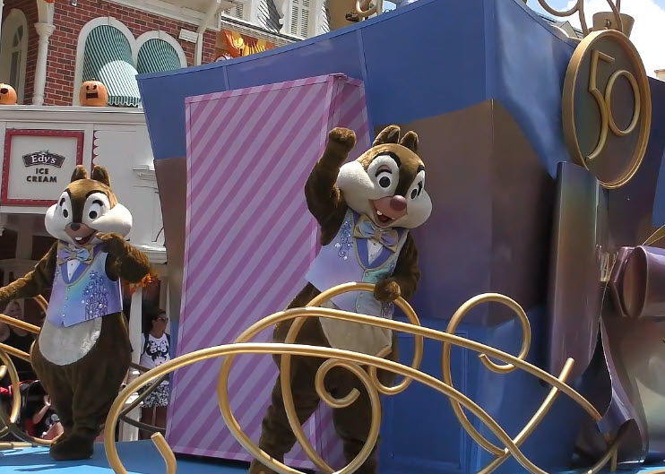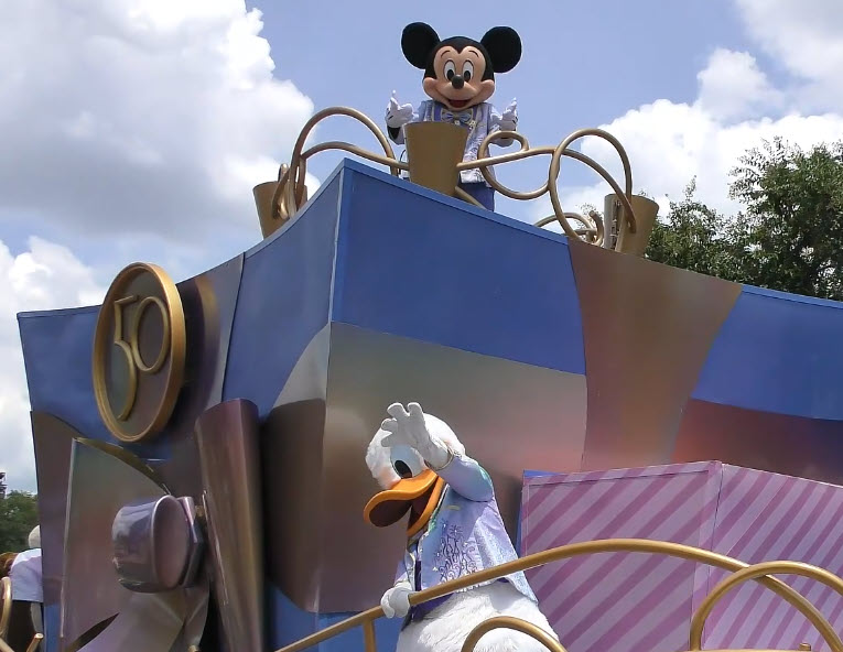 This special edition of the Mickey and Friends Cavalcade features “The Magic is Calling,” the official musical theme of the 50th anniversary. Guests were treated to a final performance of this inspiring song, marking the end of a historic celebration. Mickey, Minnie, Goofy, Pluto, Donald, and Daisy appeared in their shimmering 50th-anniversary costumes, adding extra sparkle to the moment.