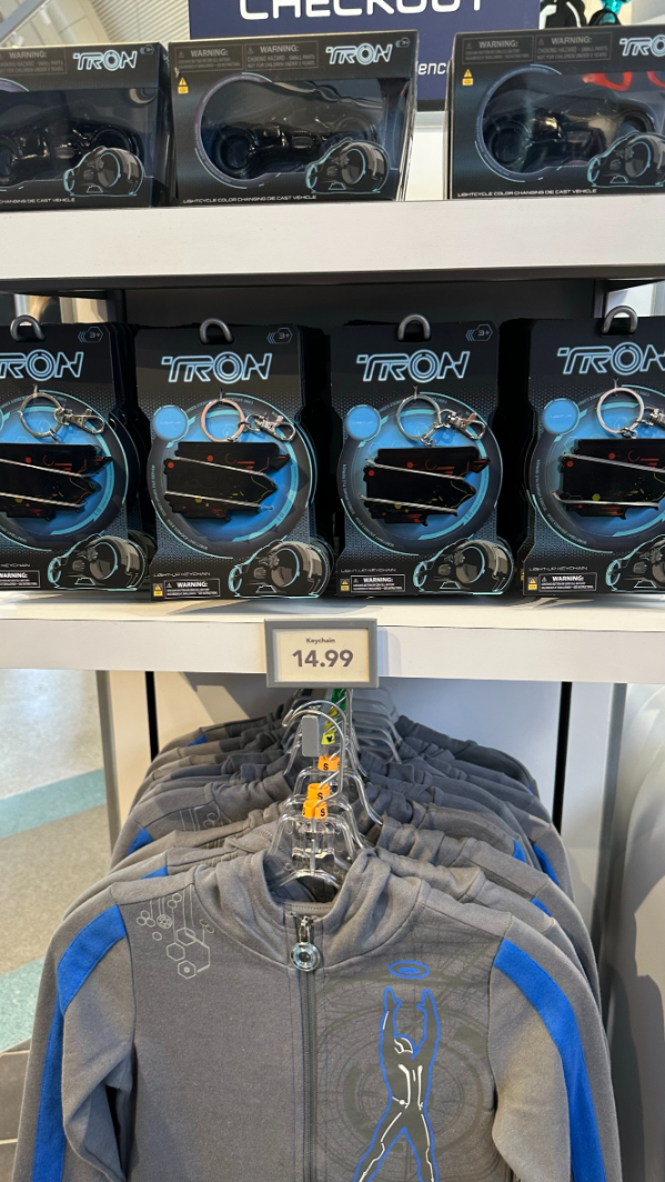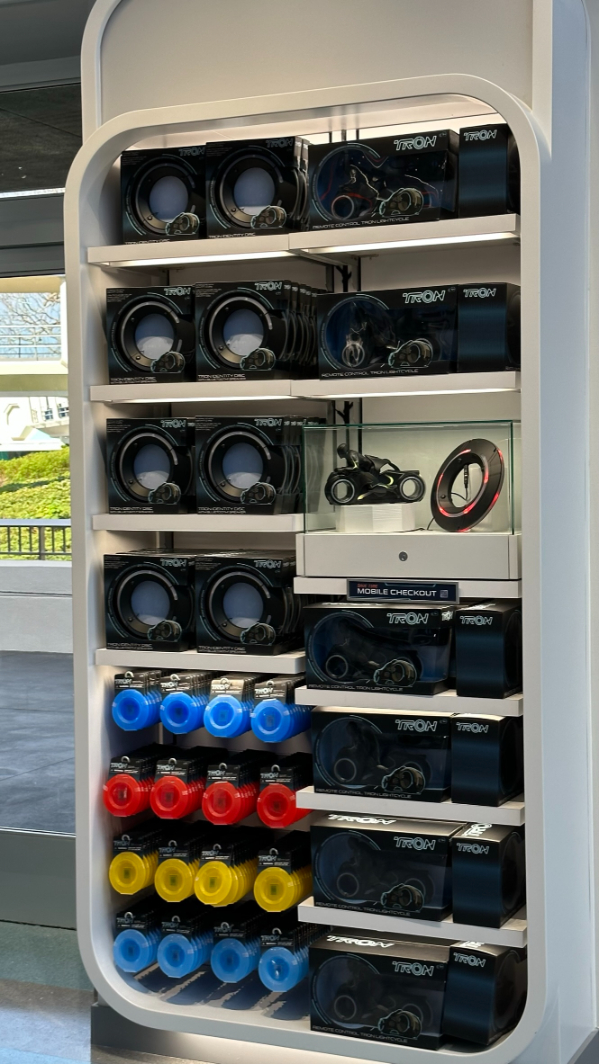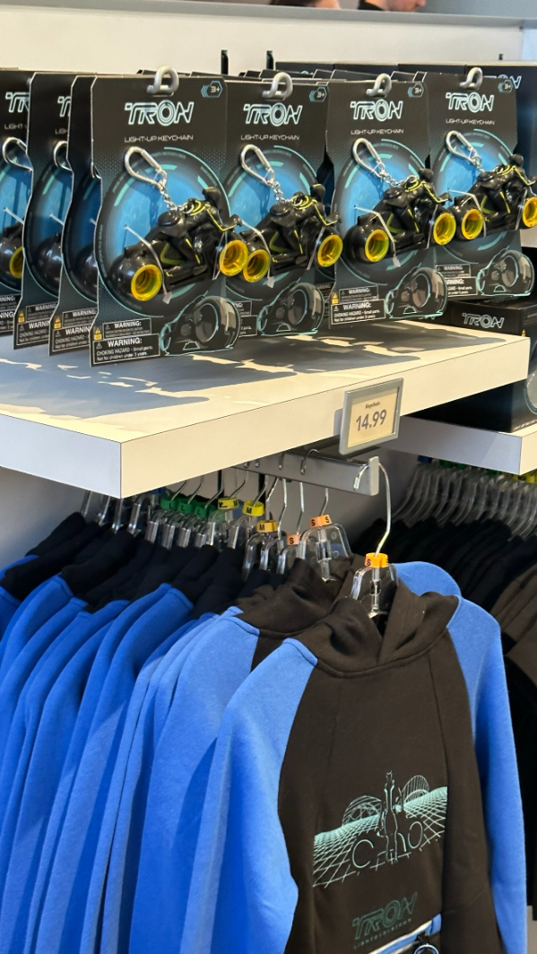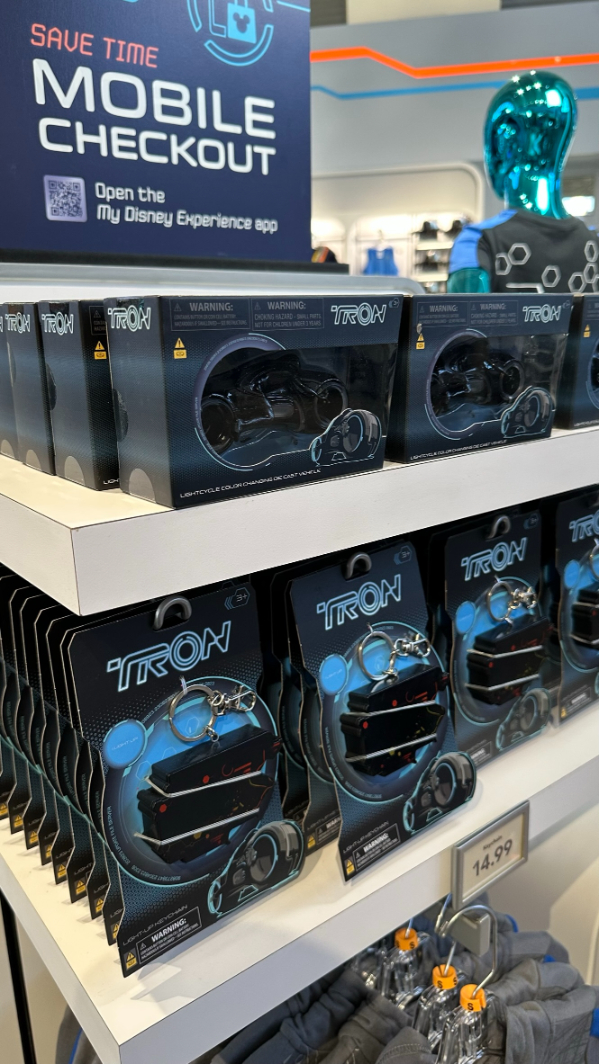 Merchandise will be available at Tomorrowland Launch Depot, and select kiosks will be near the Tron Lightcycle/Run entrance.