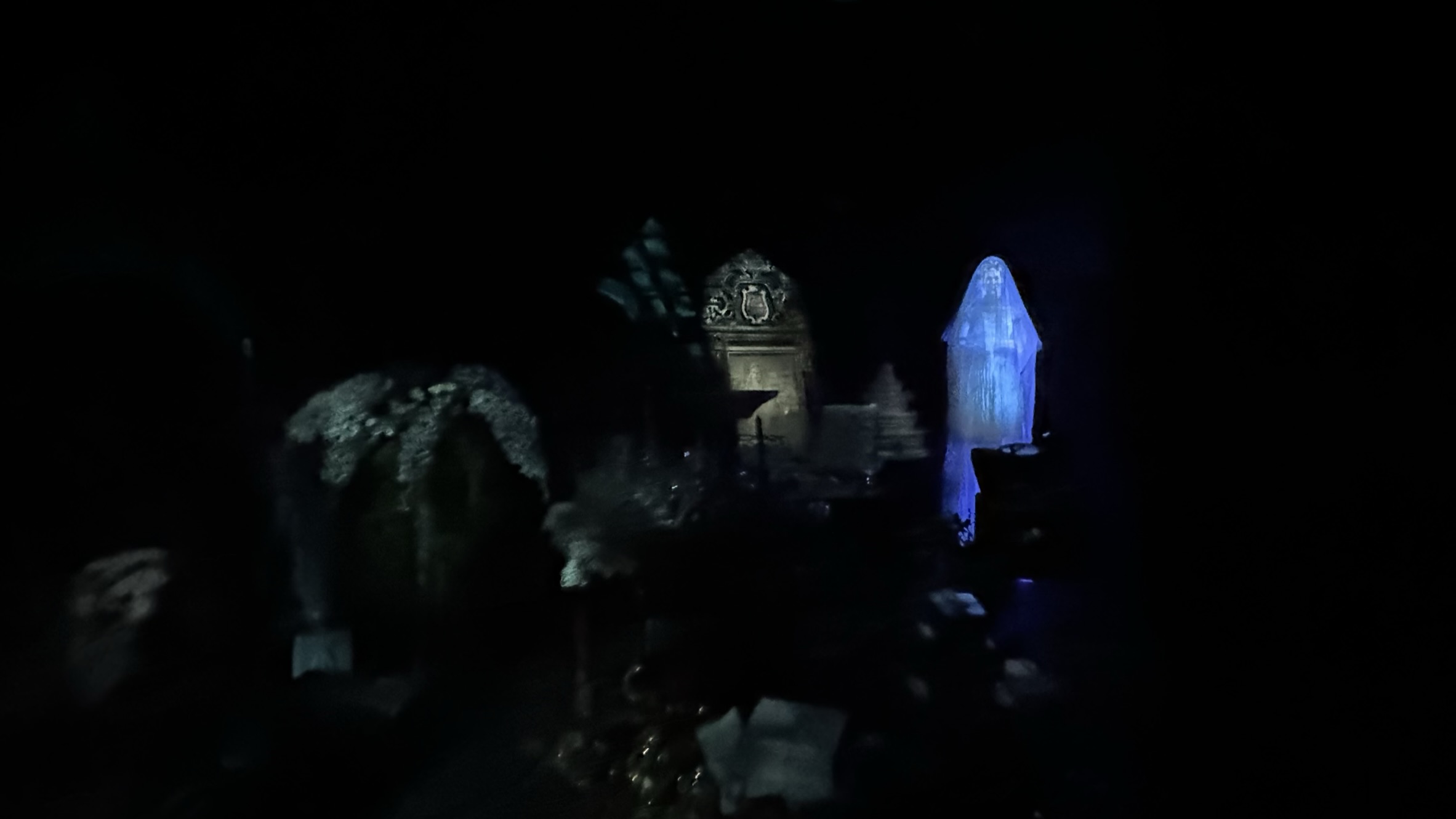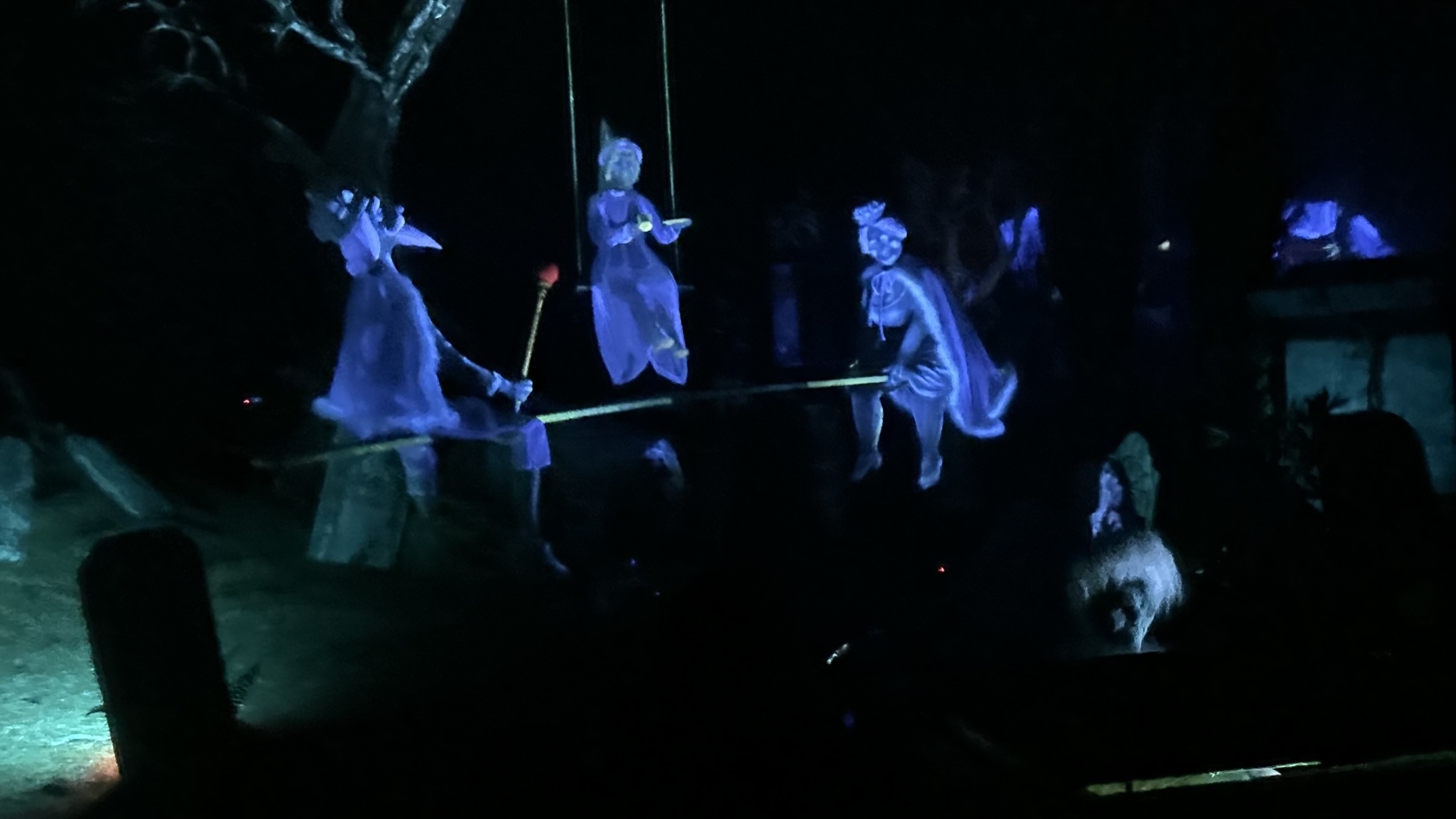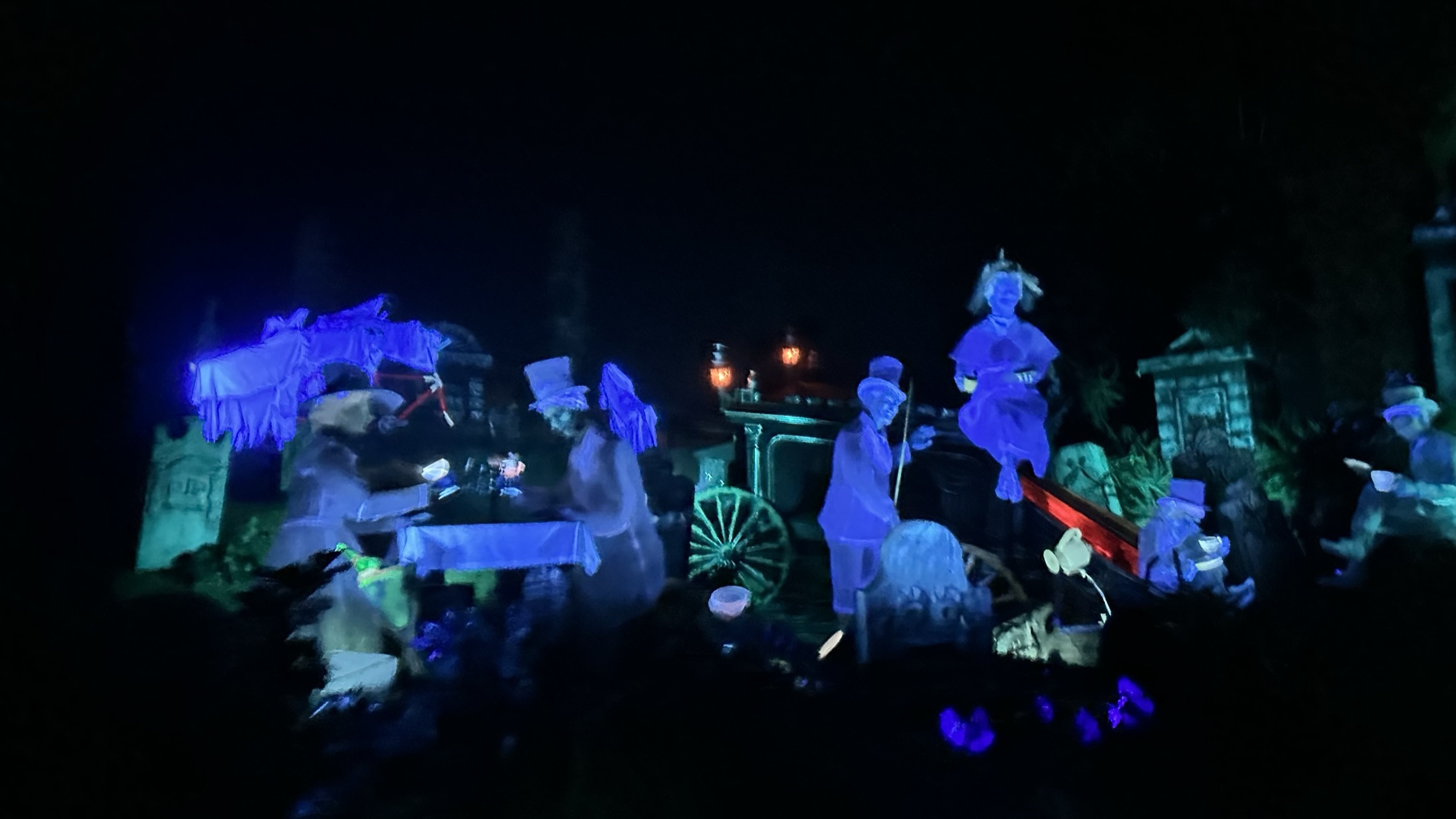 Along the way, you’ll encounter playful spirits and supernatural scenes. Don’t miss the singing ghosts in the graveyard, as they serenade guests with haunting tunes. And beware of lurking hitchhiking ghosts—they might try to follow you home!