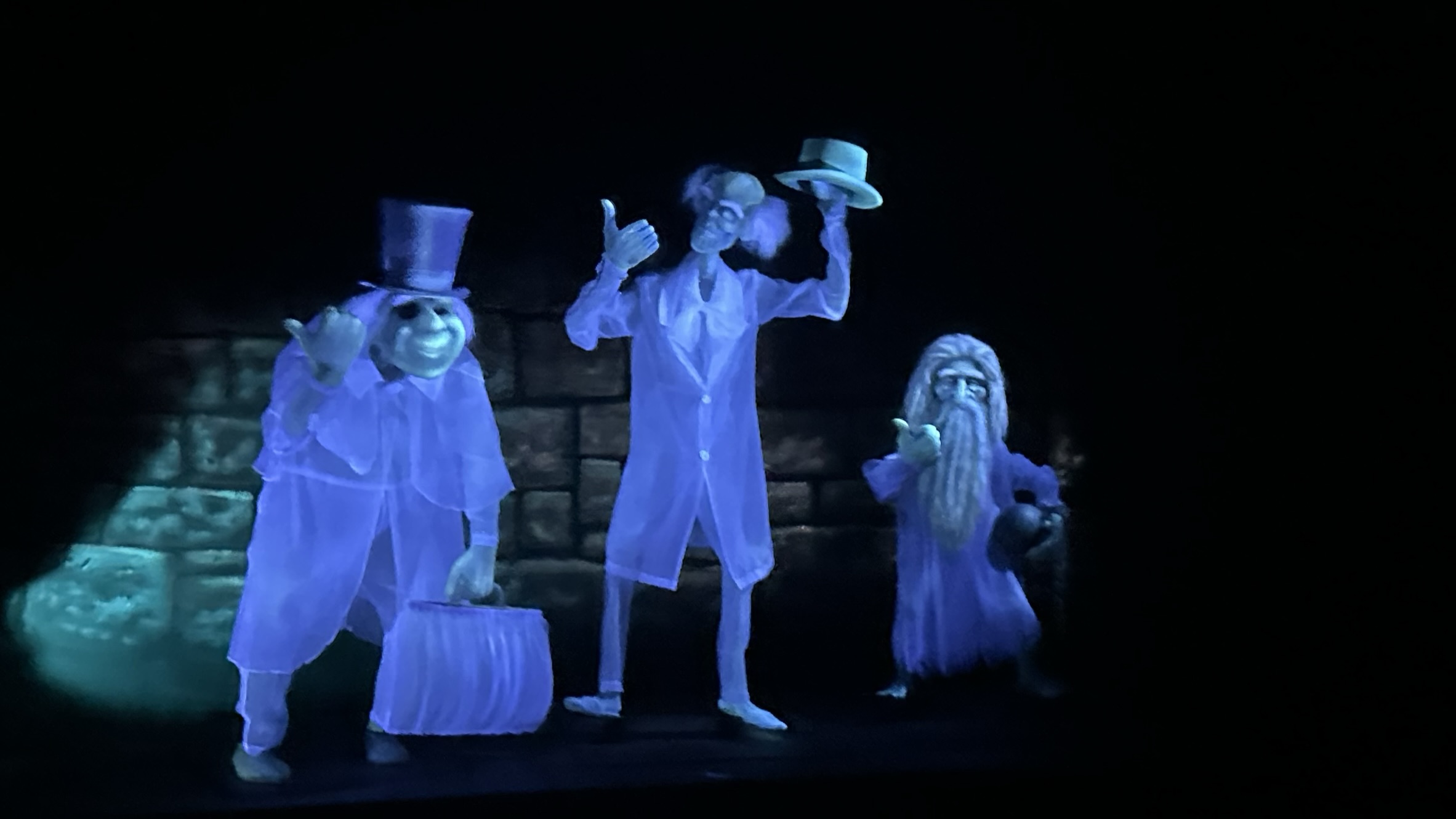 Your ghostly guide, the Ghost Host, leads you through a chilling tour of the mansion. Glide past a rattling casket in the conservatory. Visit Madame Leota’s séance room. Float by the Grand Ballroom, where ghostly figures waltz through an eerie celebration.