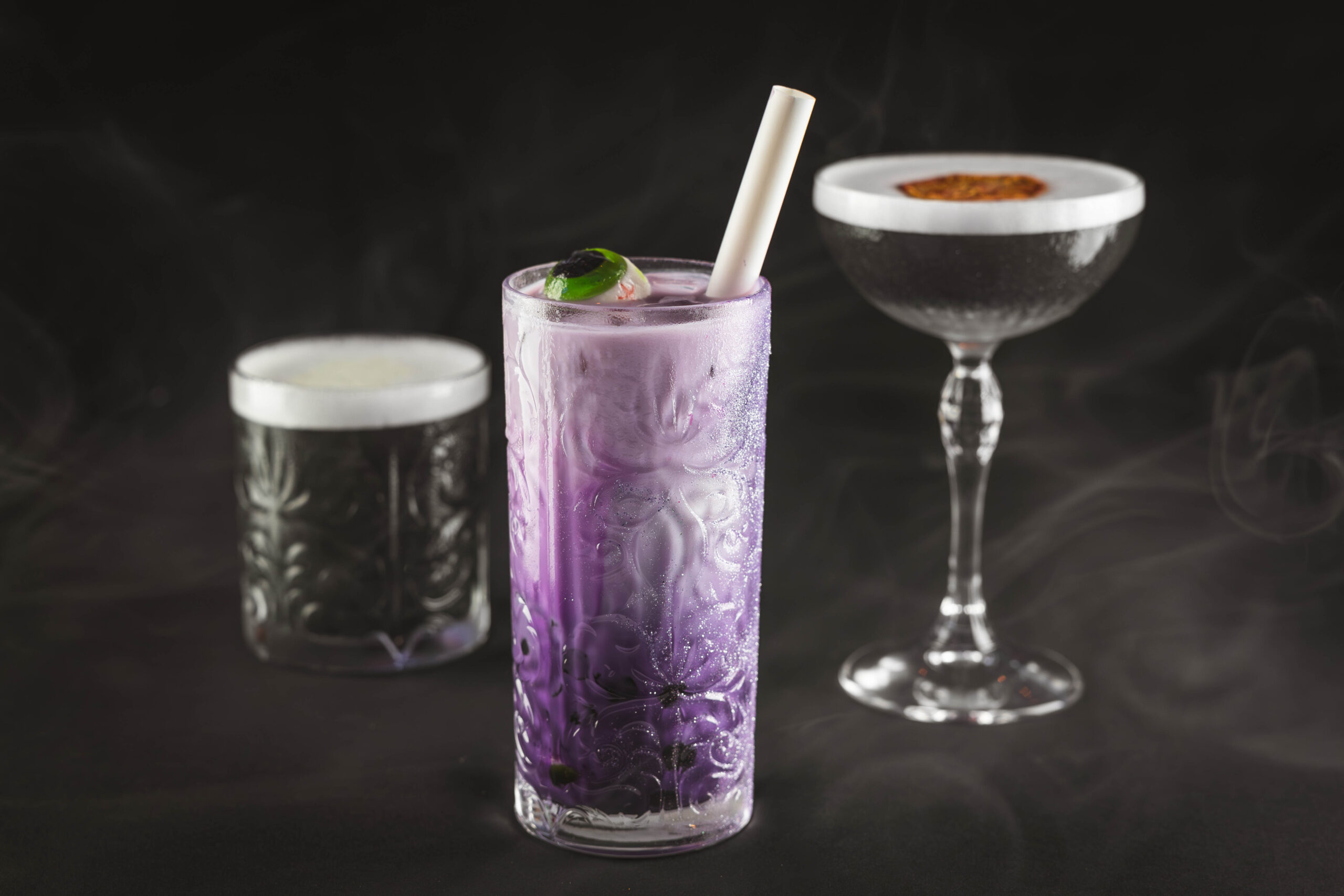 True to its roots, the Haunted MansionParlor pays homage to the 1969 Disneyland classic, blending spooky storytelling with humor in signature Disney style. The lounge’s interior draws inspiration from a first-class drawing room aboard a golden-age ocean liner. This setting includes iconic Haunted Mansion details—like purple wallpaper, wooden finishes, a mantel clock atop an ornate fireplace, and a distinctive purple armchair.