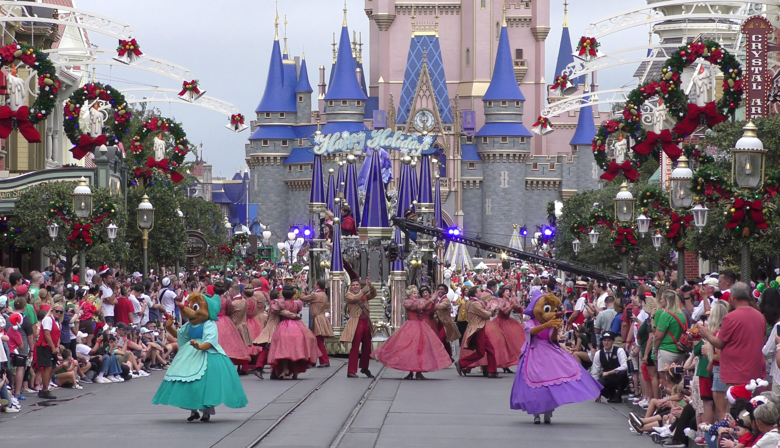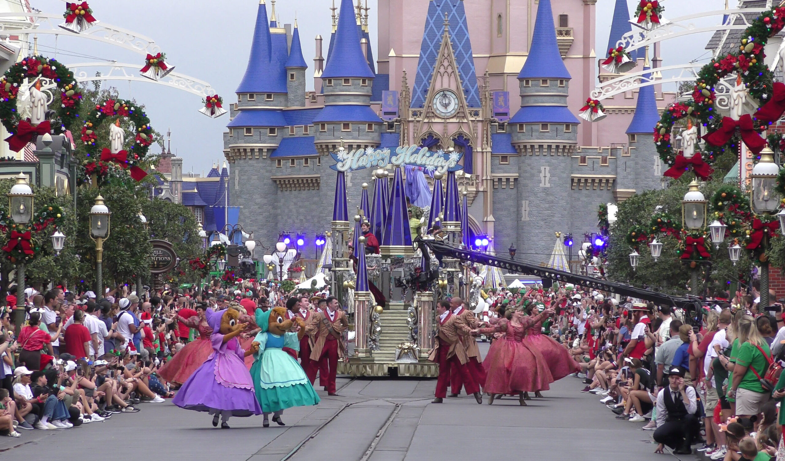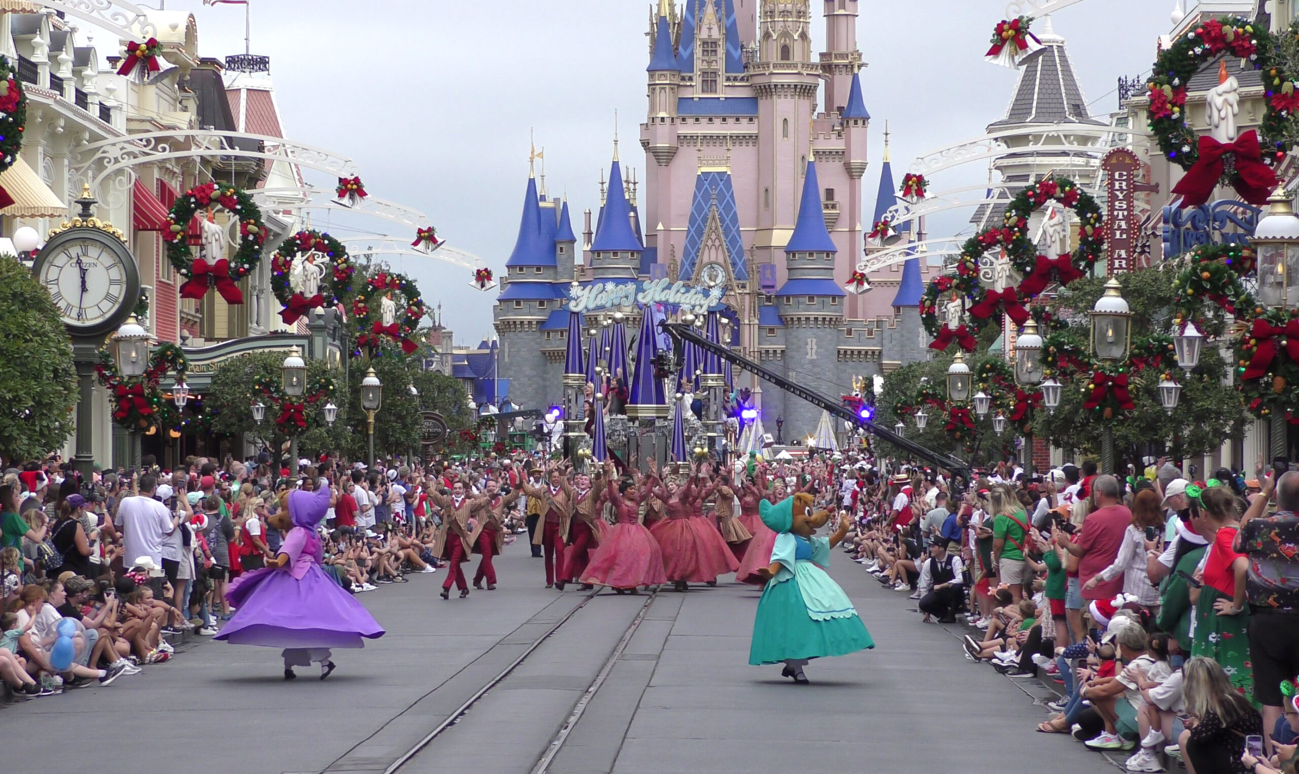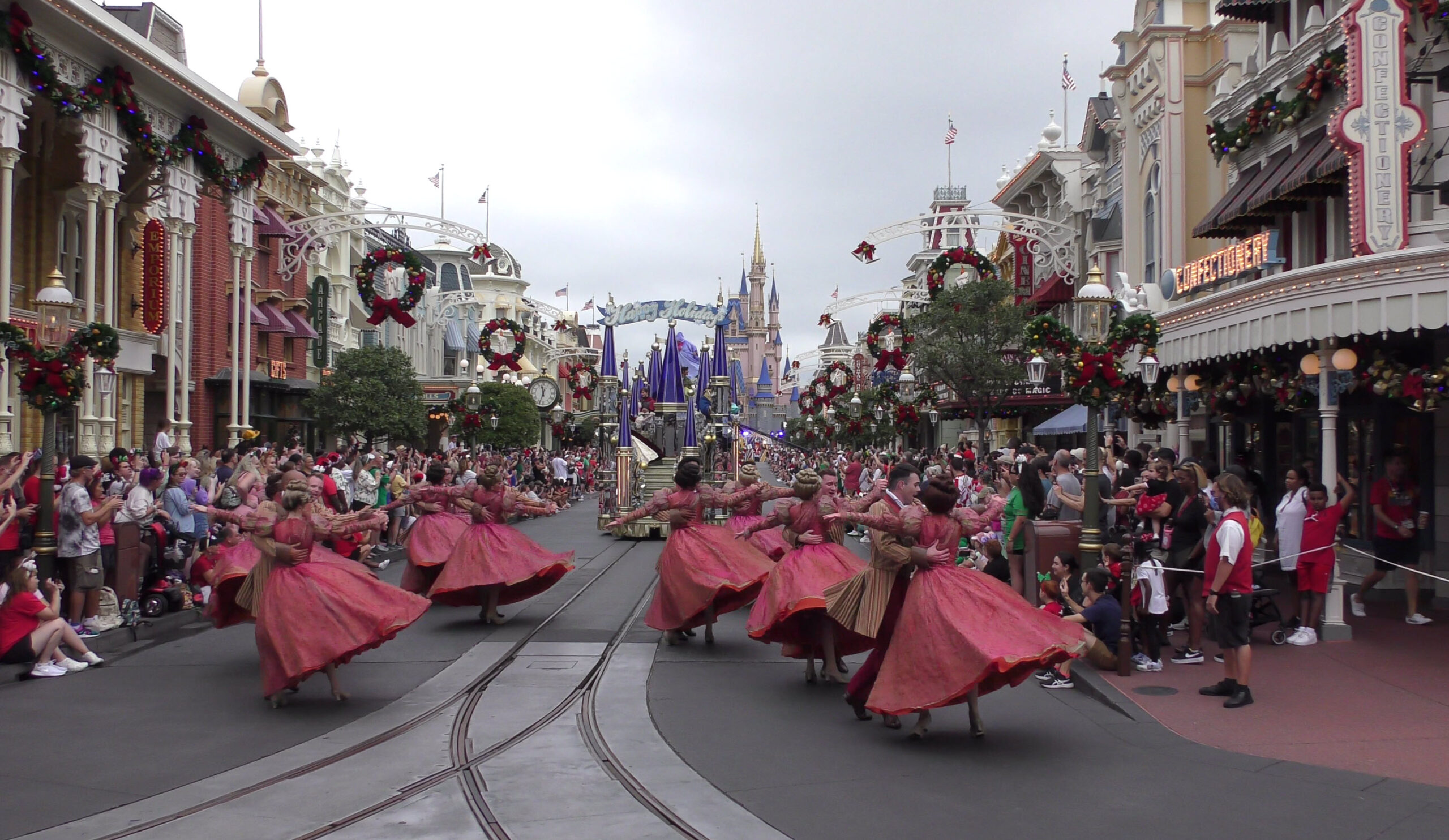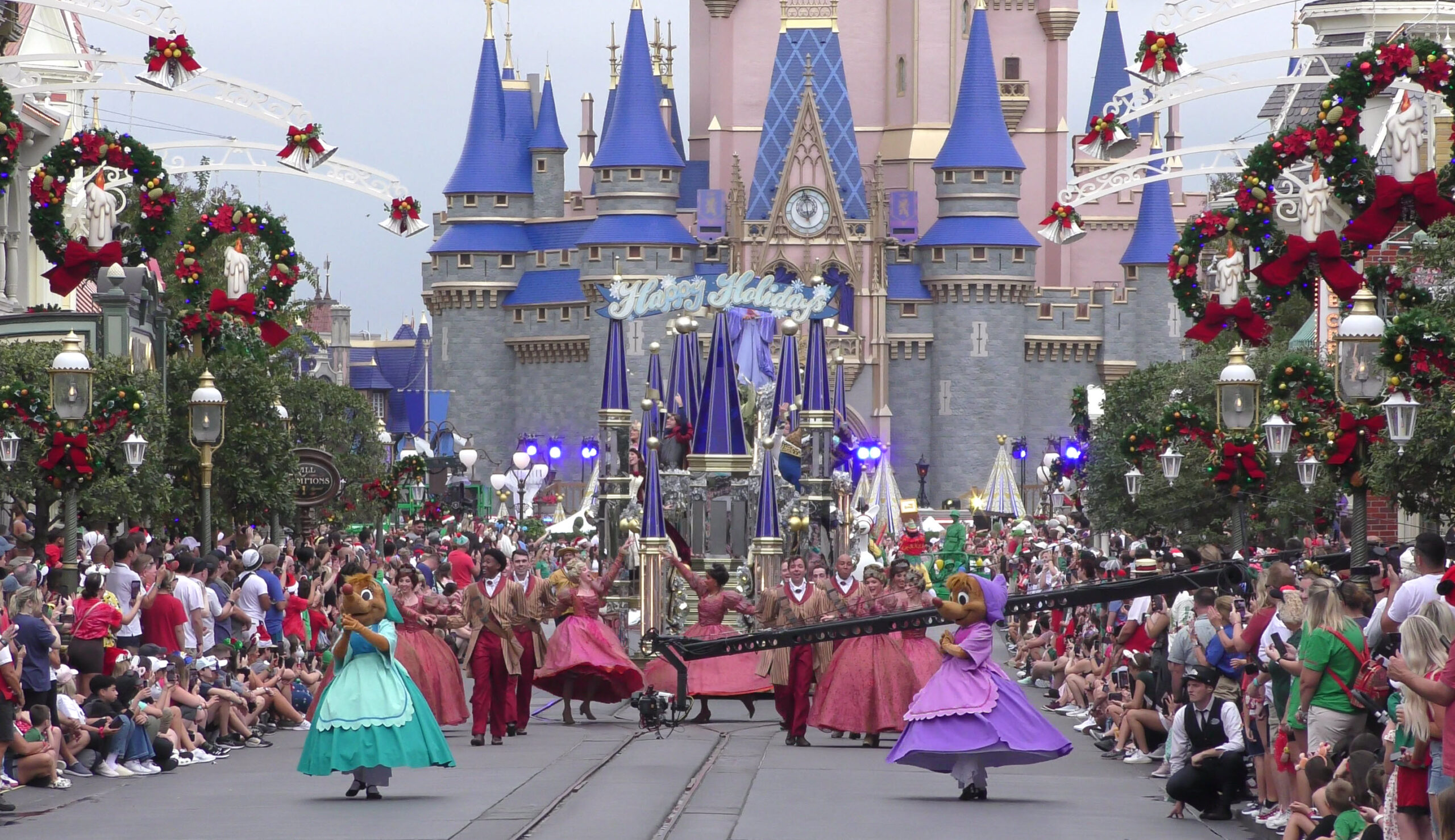 This video captures the entire parade as it was filmed , with a perfect view straight down Main Street U.S.A. to Cinderella Castle. If you look closely, you’ll even spot the production cameras set up near the midway point of the street, just beside the side alley.