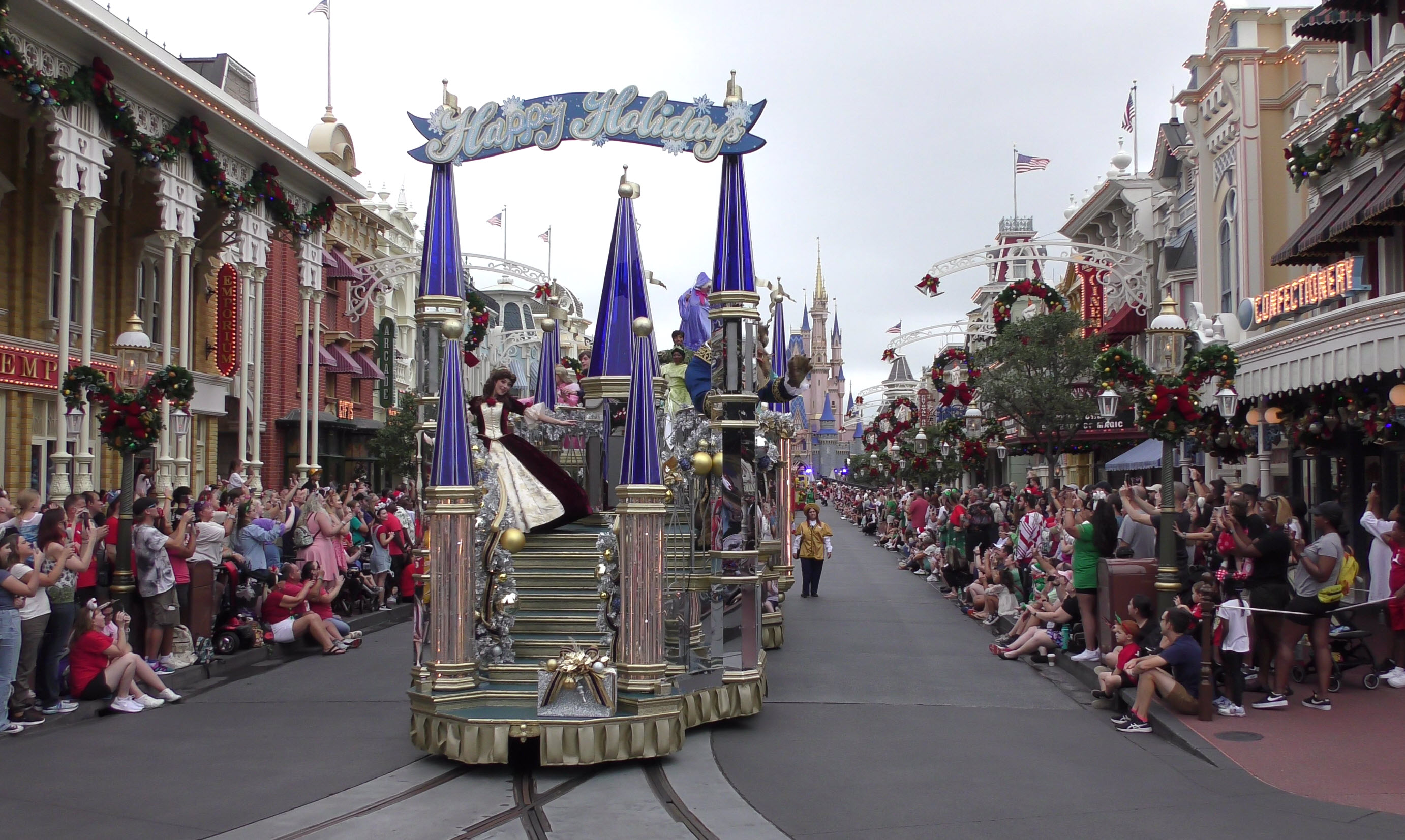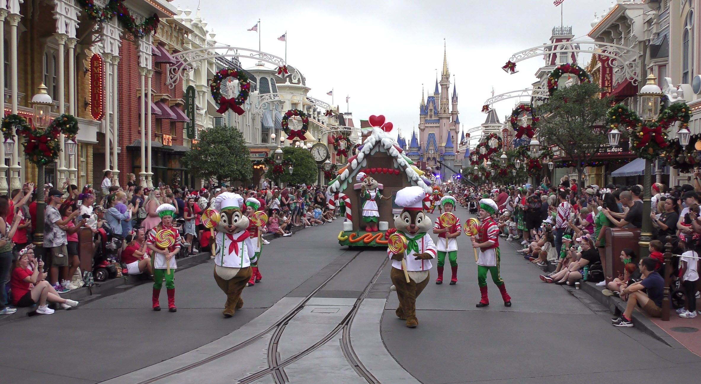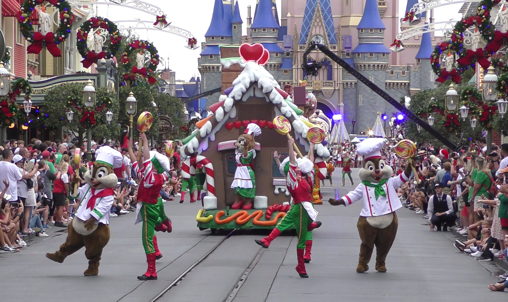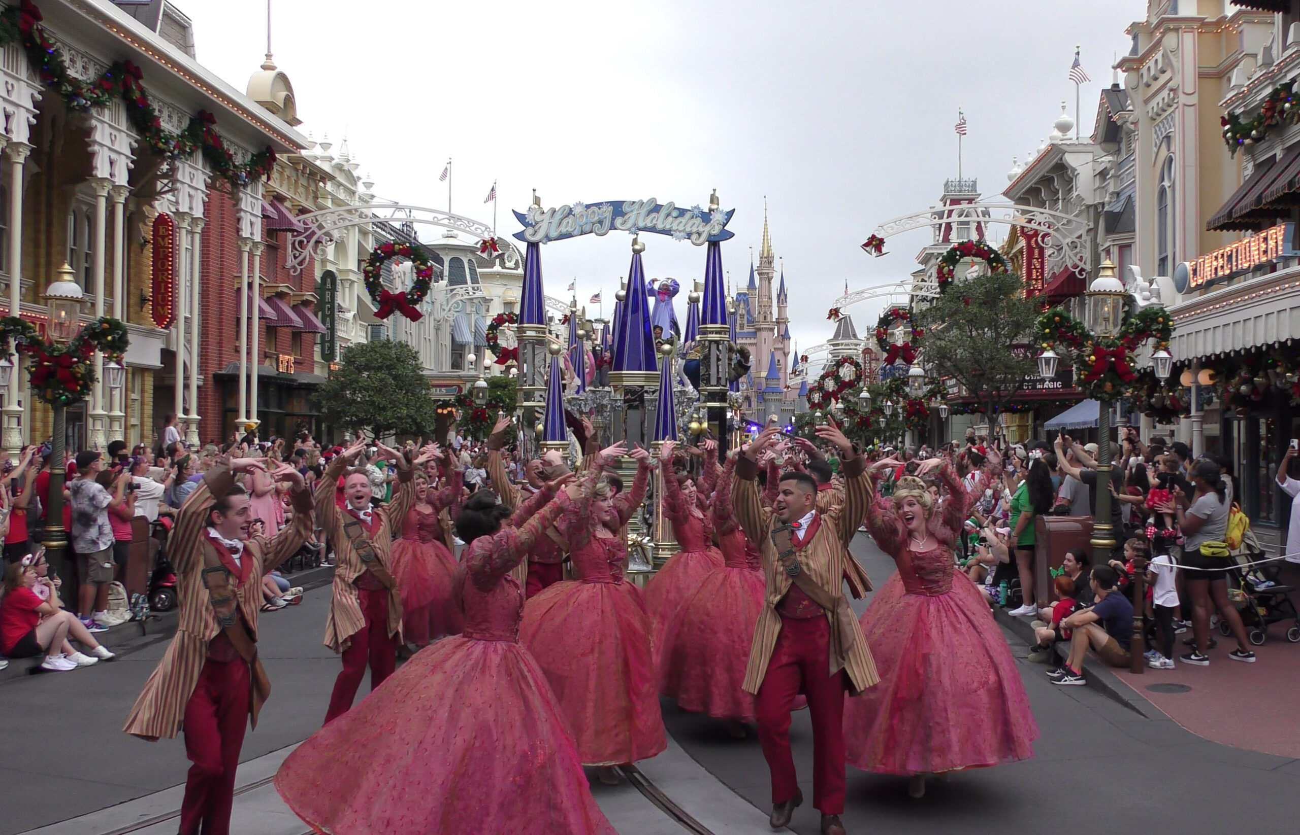 This video captures the entire parade as it was filmed , with a perfect view straight down Main Street U.S.A. to Cinderella Castle. If you look closely, you’ll even spot the production cameras set up near the midway point of the street, just beside the side alley.