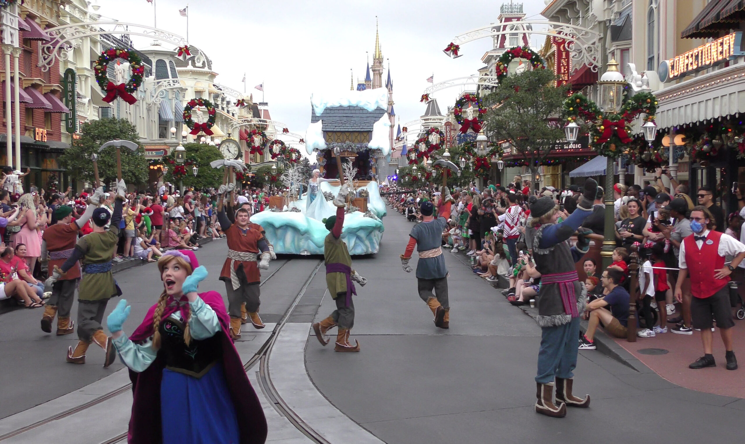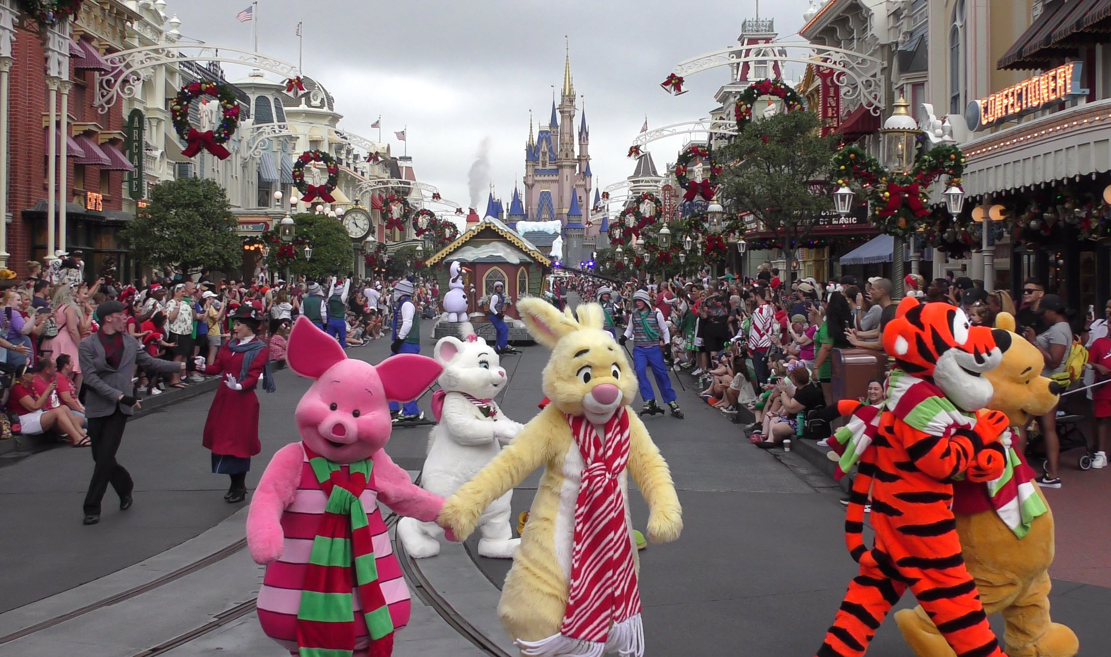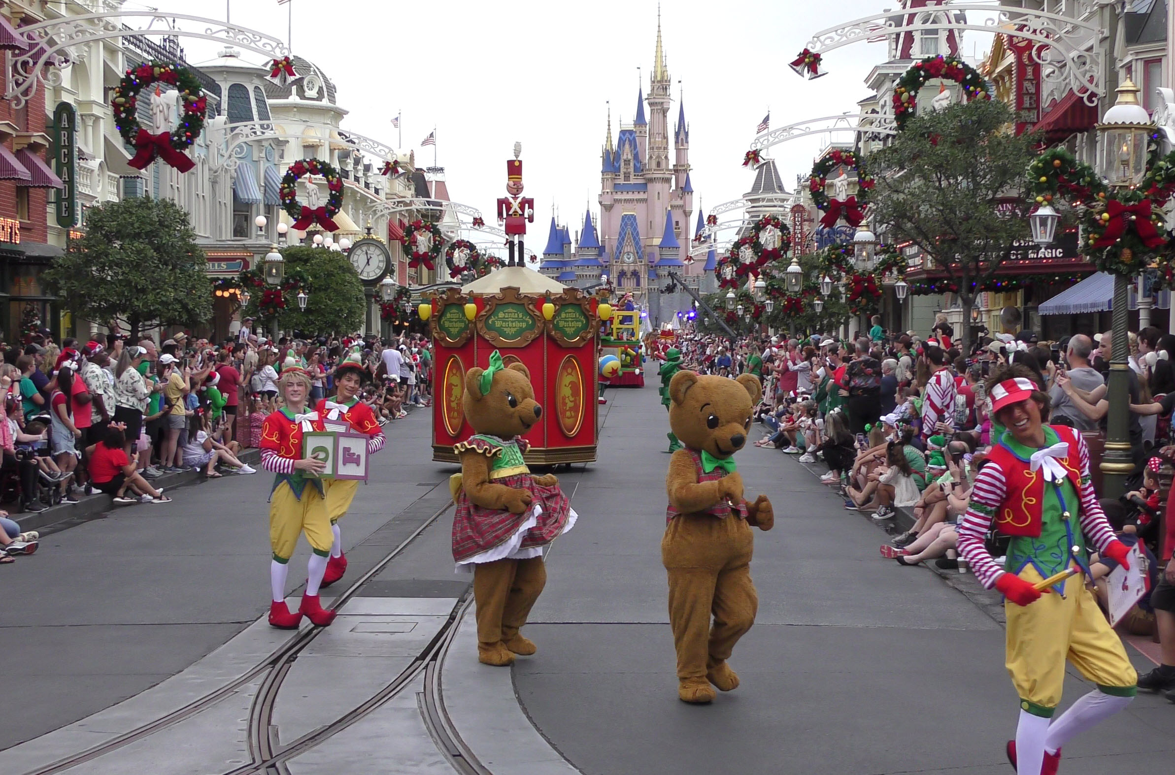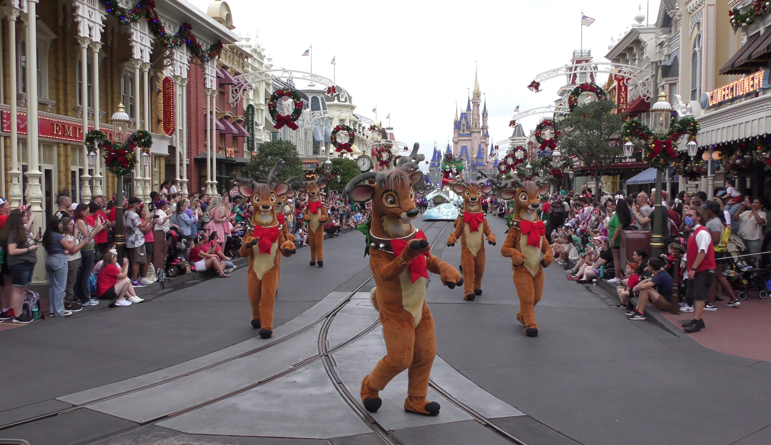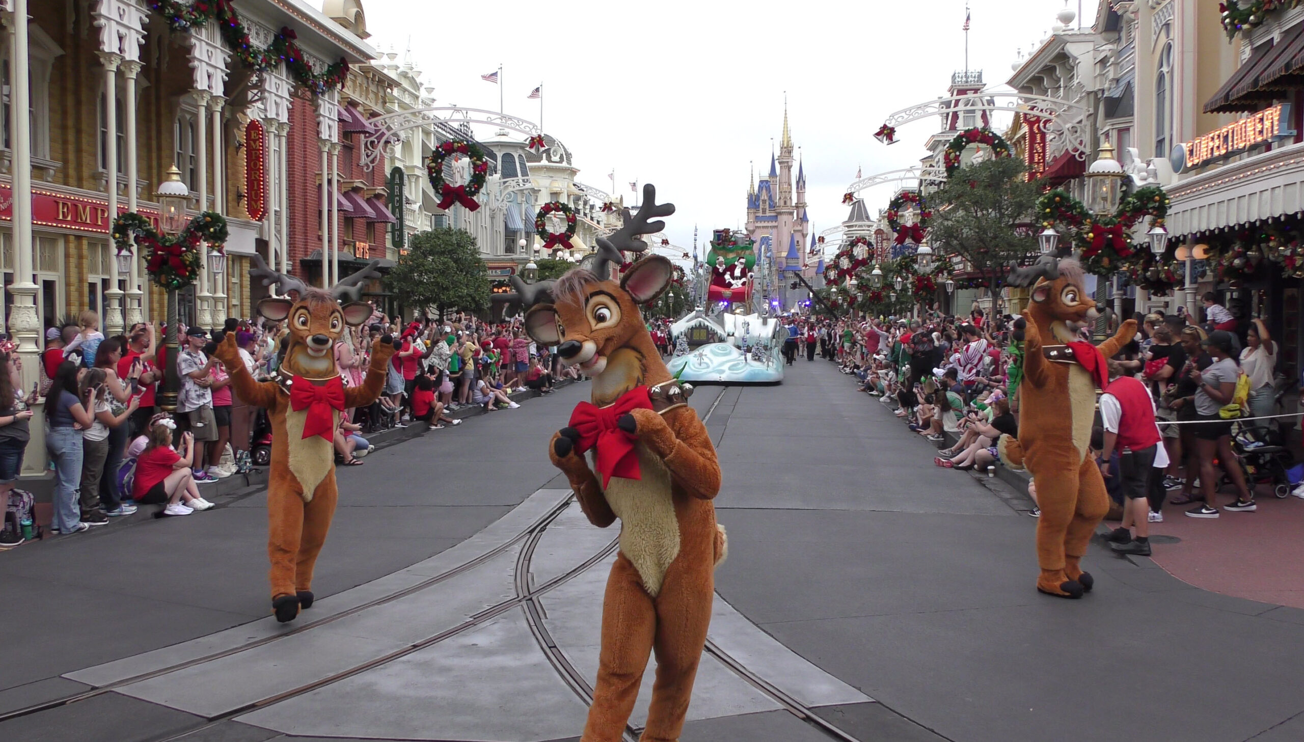 This video captures the entire parade as it was filmed , with a perfect view straight down Main Street U.S.A. to Cinderella Castle. If you look closely, you’ll even spot the production cameras set up near the midway point of the street, just beside the side alley.
