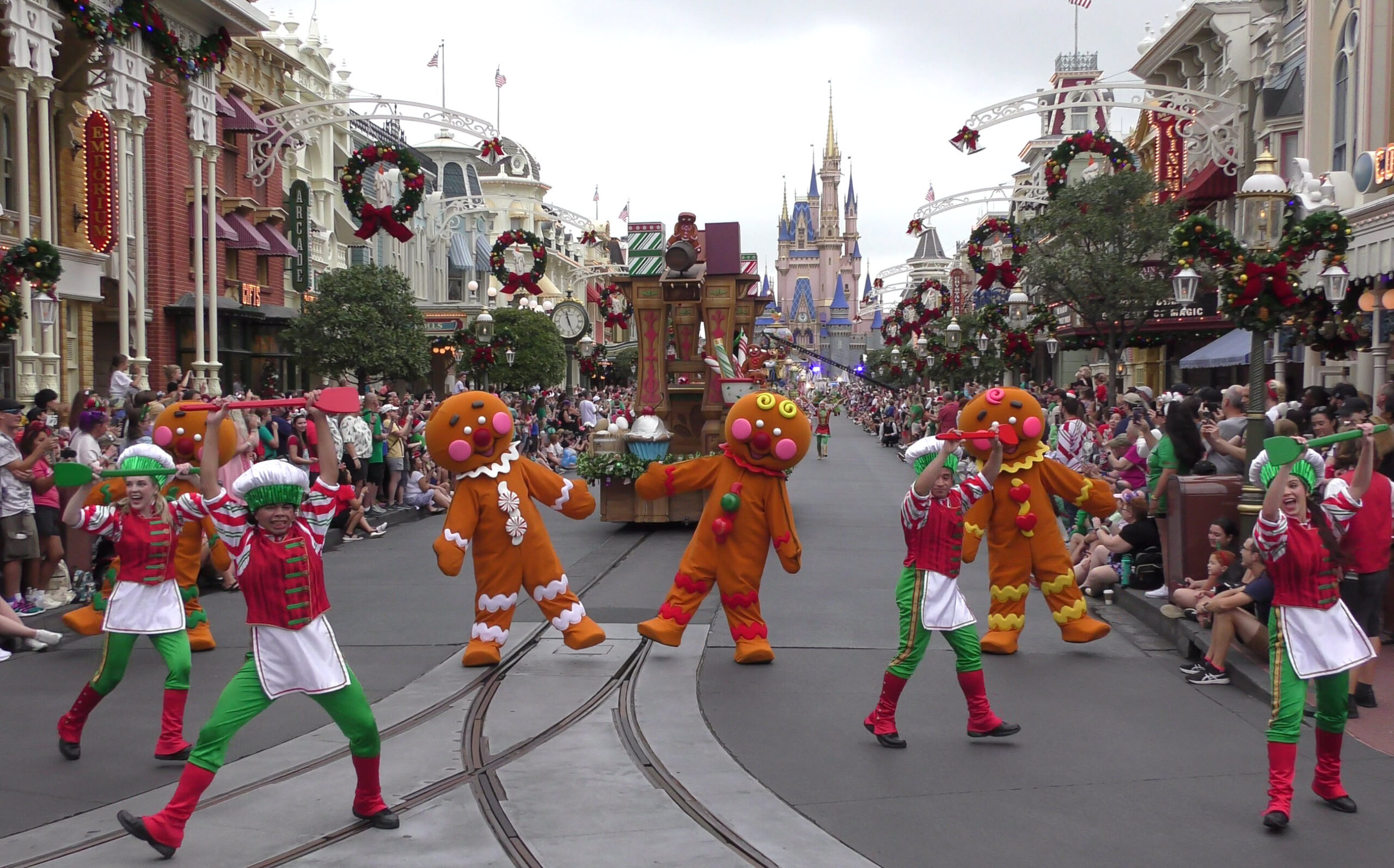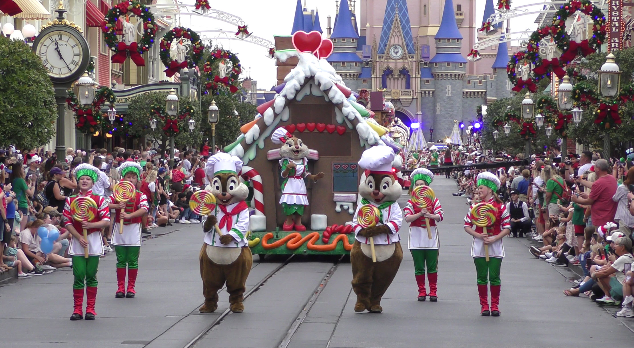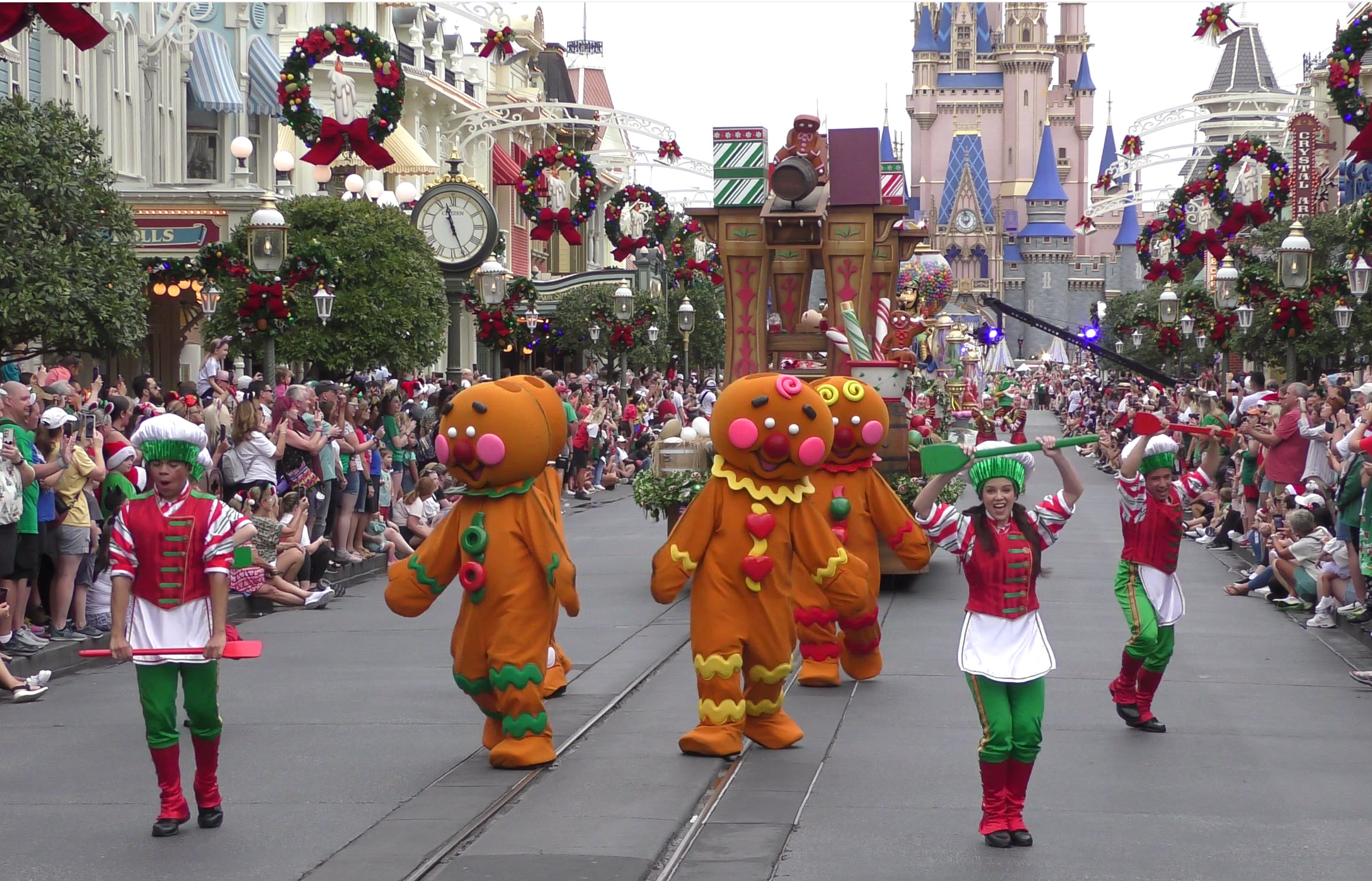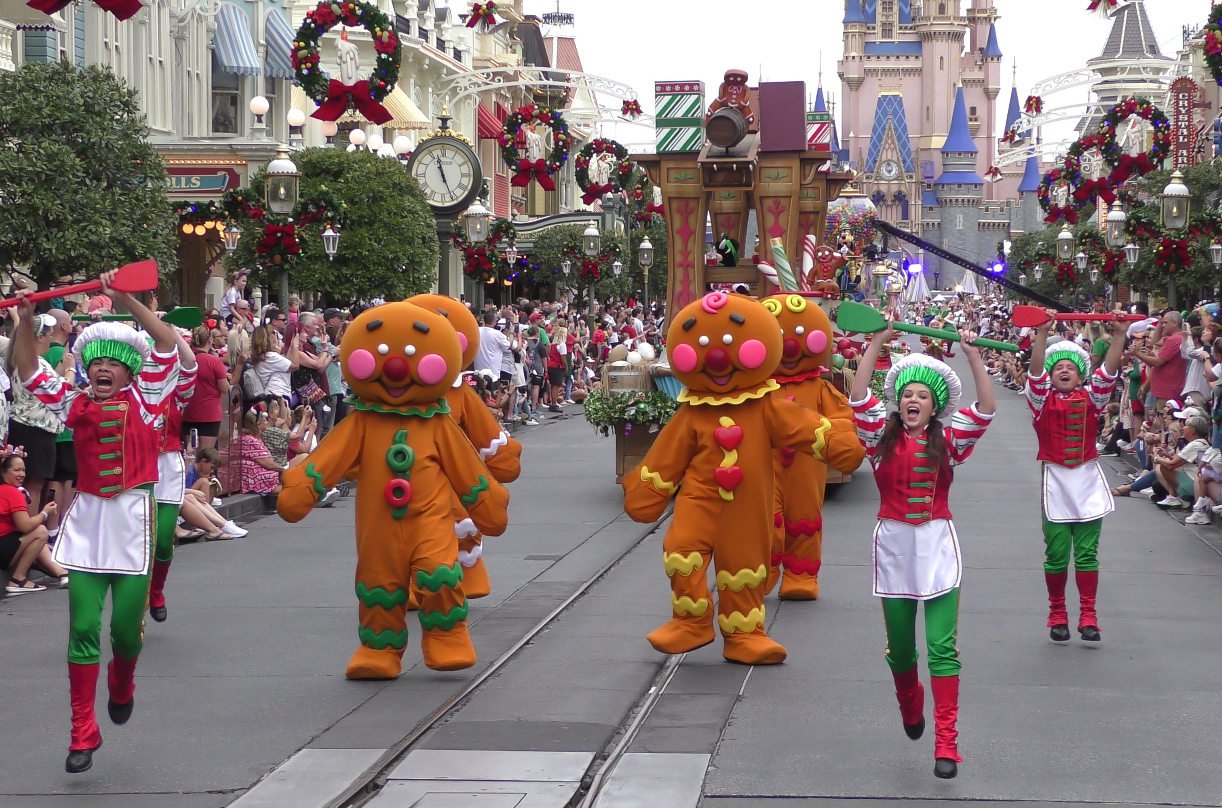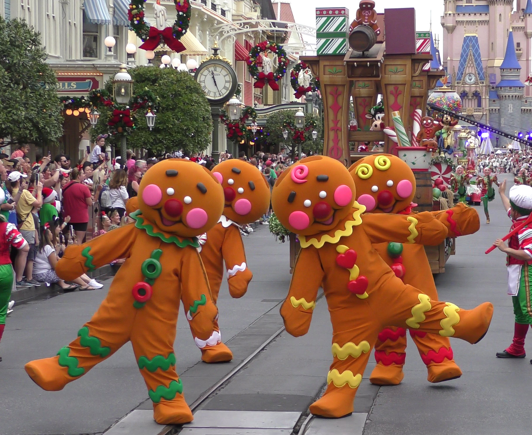 Experience the Magic: 2023 Walt Disney World Christmas Day Parade. Full Parade Taping – Gingerbread and Clarabelle Cow unit.