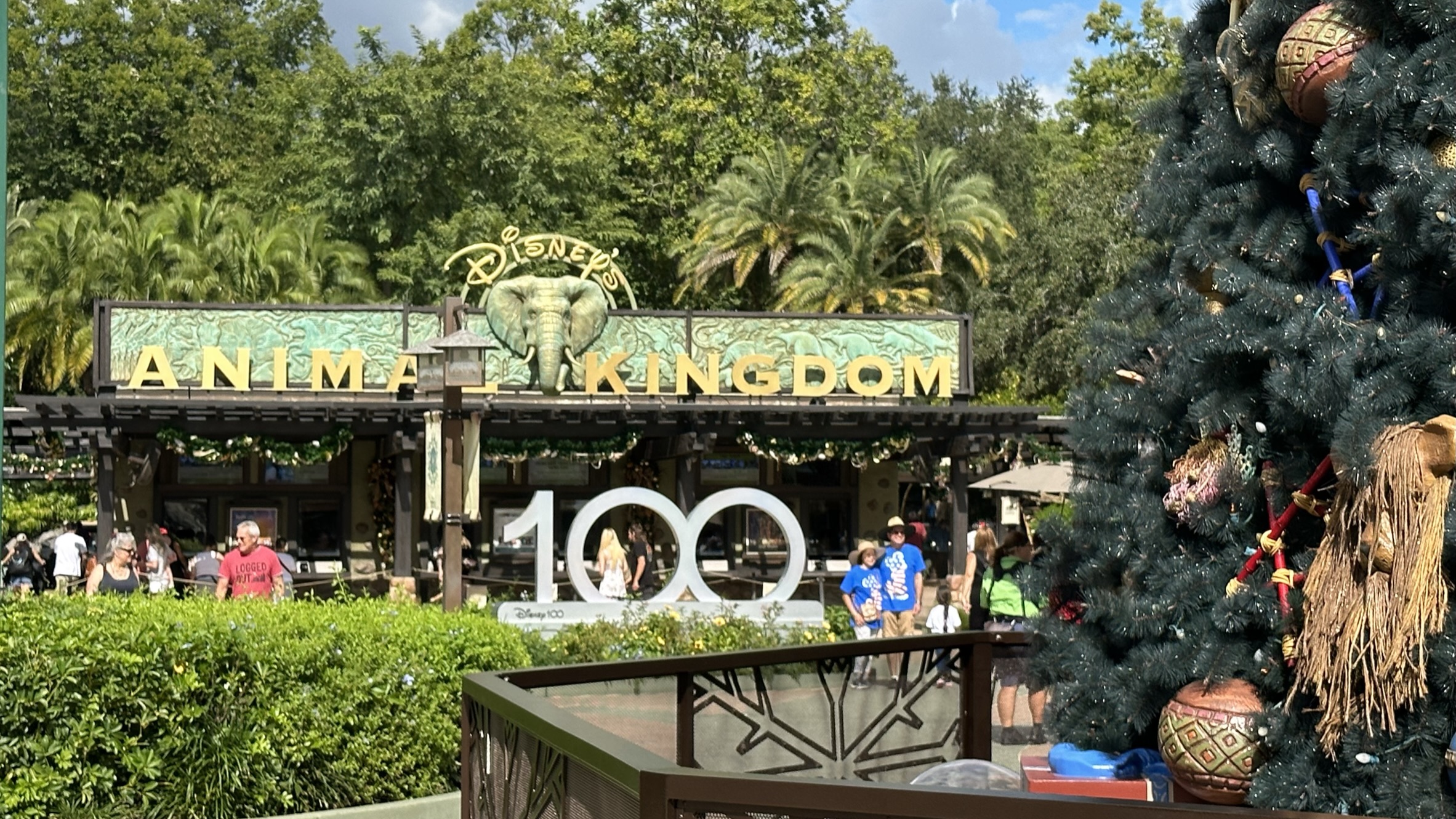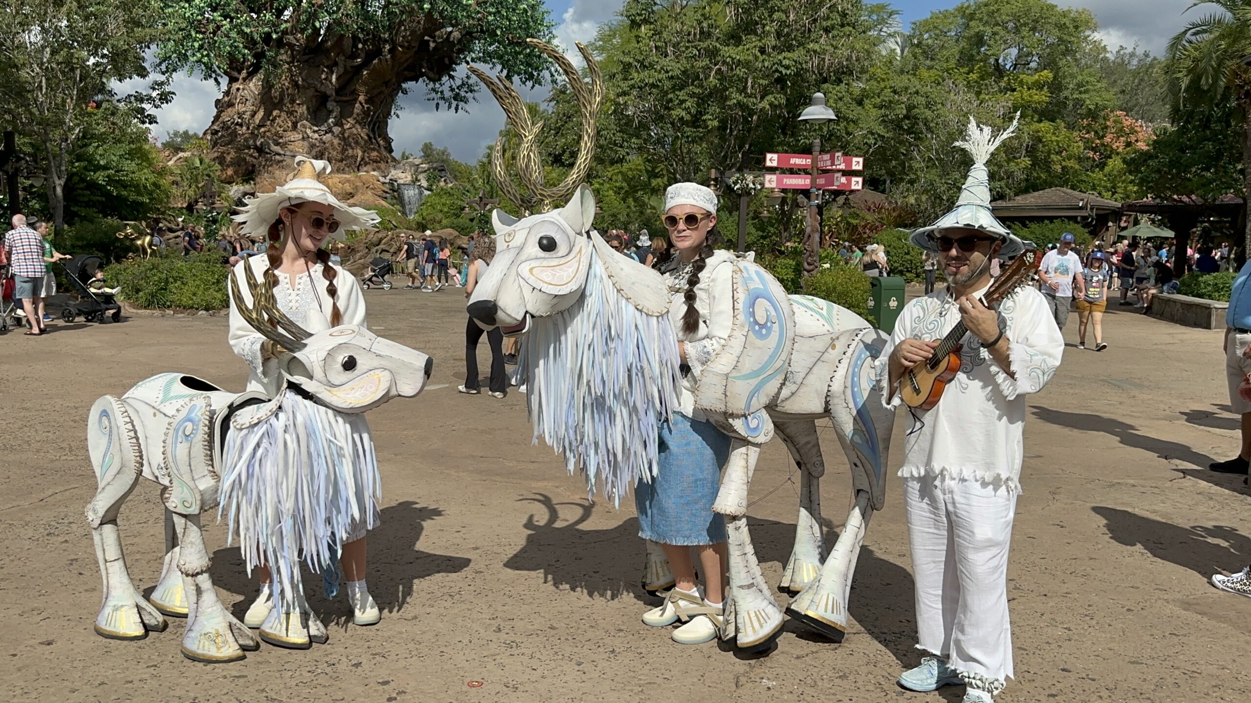 Discovery Island shines with white decorations, glowing animal lanterns, and natural accents. Every element creates a cozy and cheerful setting that complements Animal Kingdom’s lush surroundings.
