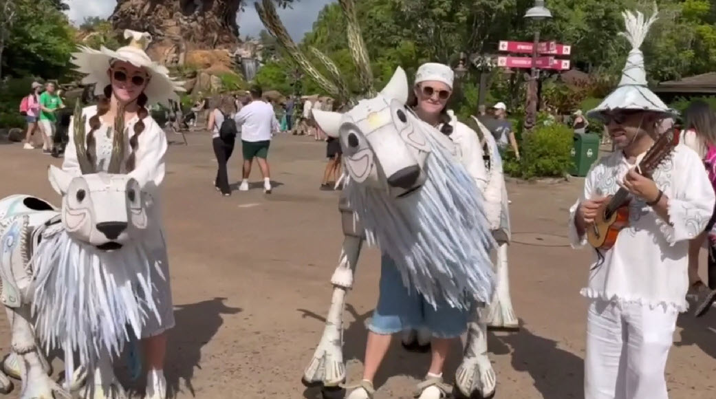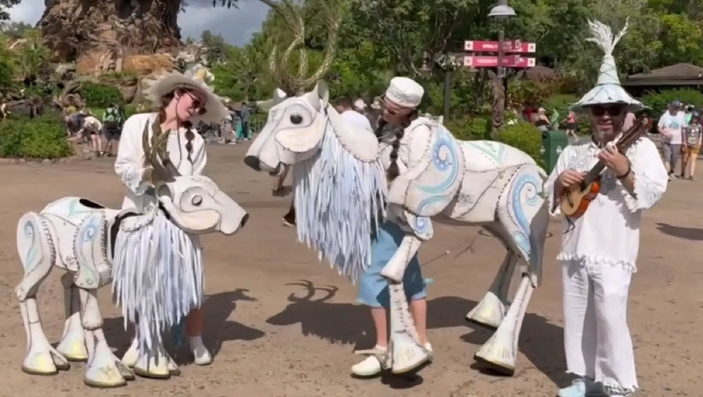 The Merry Menagerie features life-size puppets of reindeer, foxes, penguins, polar bears, and more. Handcrafted from natural materials, these creations bring stories to life in a way only Disney can.