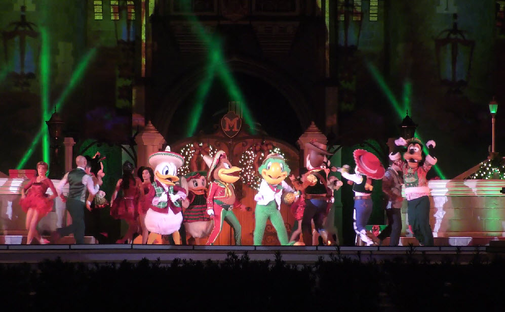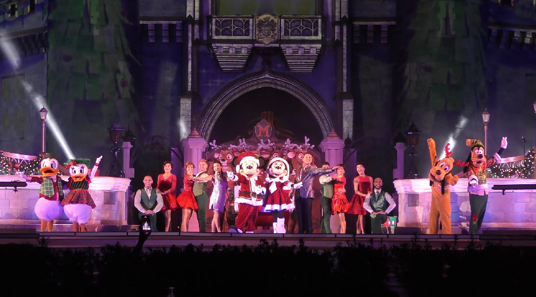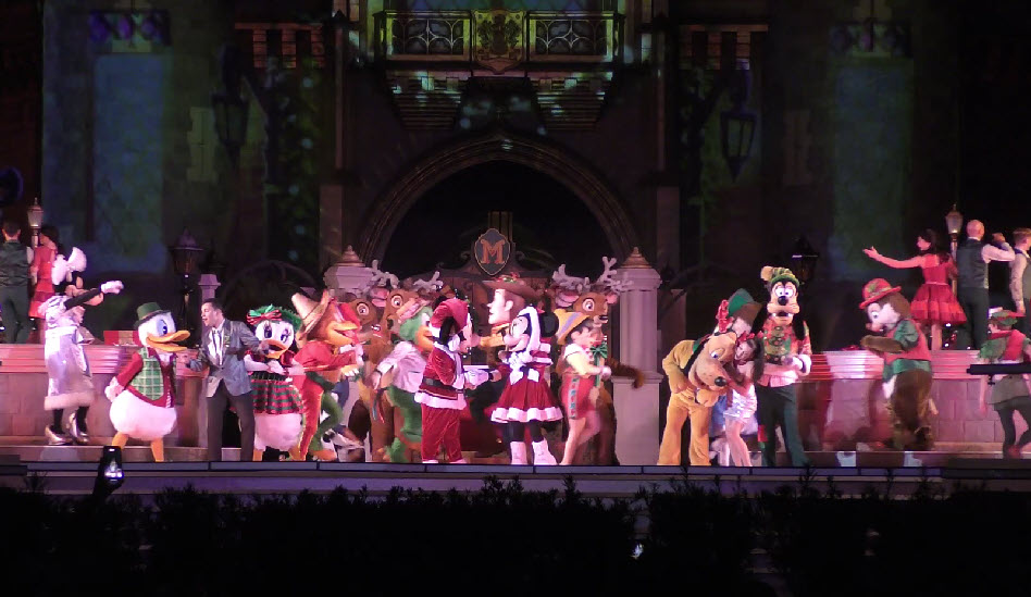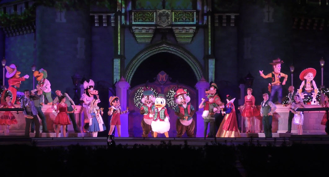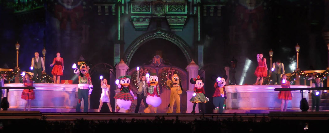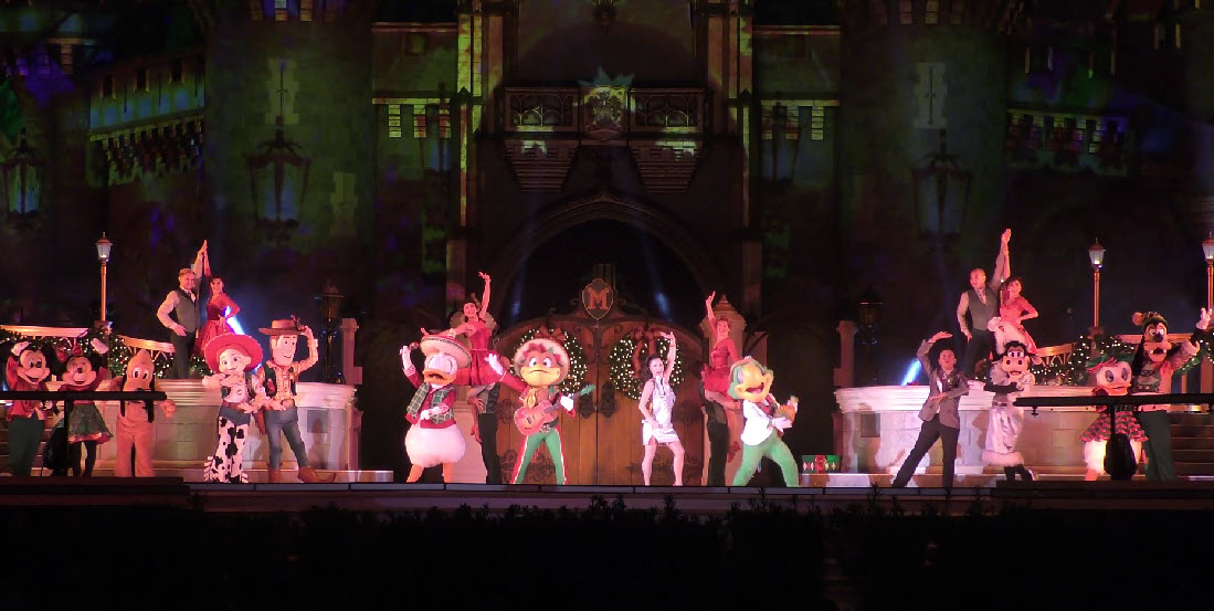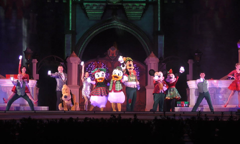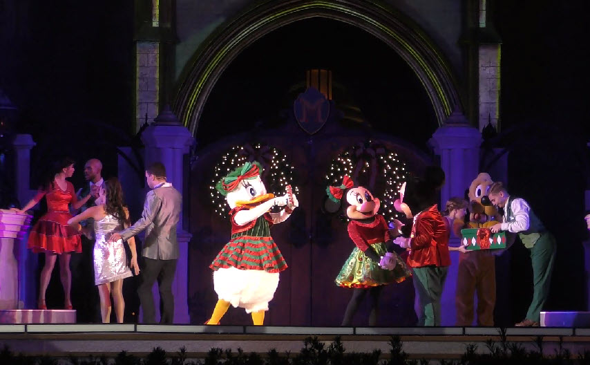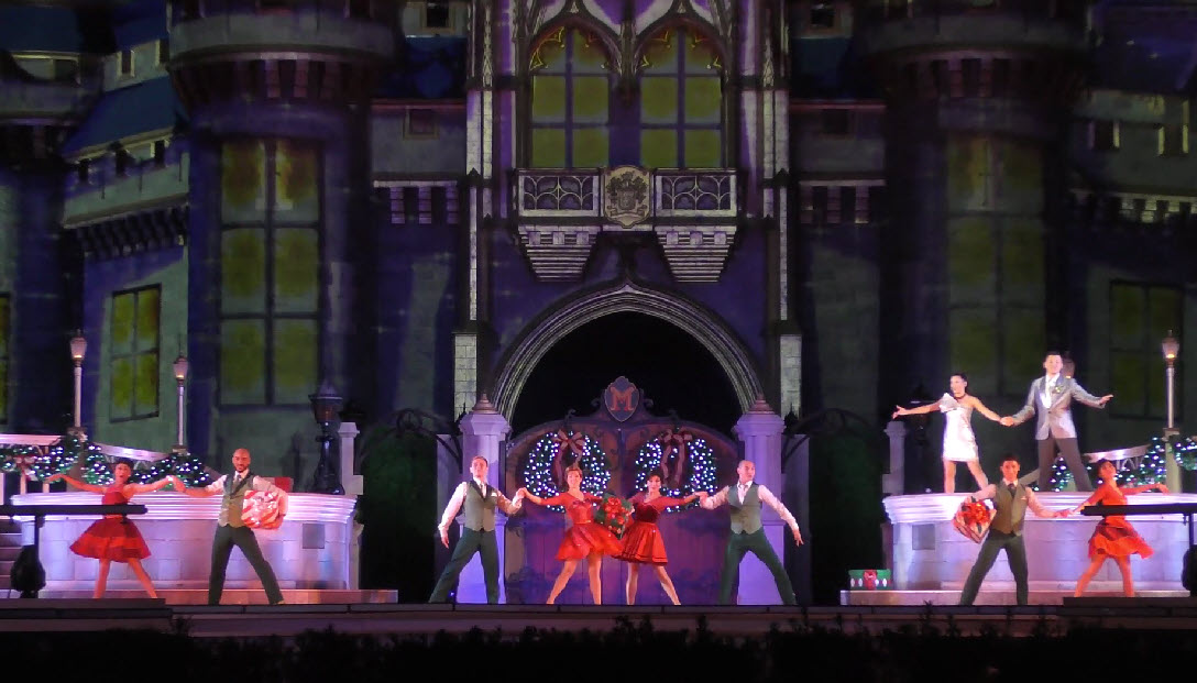 During this joyful performance, talented dancers and singers join beloved Disney Characters like Minnie, Donald, Goofy, and others. The cast performs a cheerful medley of holiday classics and original songs, creating a lively atmosphere full of merriment. The backdrop of Cinderella Castle, beautifully adorned in holiday lights, adds extra wonder to the celebration.